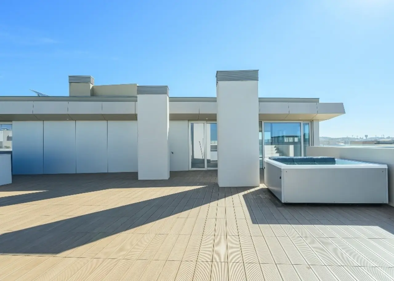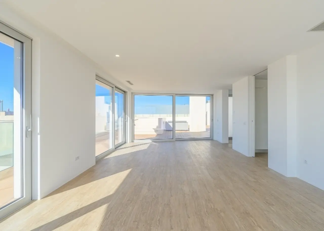 New three-bedroom apartment for sale, next to the beach in Vila do Conde. In addition to the quality materials and finishes, it stands out for the immense light that the generous glazed openings allow into the various rooms. On the top floor, this penthouse benefits from a magnificent 317.40m² terrace with a swimming pool, jacuzzi and sea views. Ideal for those who value quality of life, comfort and proximity to all kinds of shops and the Póvoa de Varzim marina. 30 minutes from the city of Porto. CHARACTERISTICS:Area: 155 m2 | 1 669 sq ft Bedrooms: 3 Bathrooms: 4 Garage: 1 Energy efficiency: A FEATURES: Direct elevator to the apartment; 317.40 m2 terrace with ceramic flooring; Swimming pool and jacuzzi with salt water; 4 solar panels; Underfloor heating and ducted air conditioning; Kitchen with Siemens appliances; Laundry room with washing machine and heat pump; Storage room with 10.80 m2; One parking space 16.20 m2.