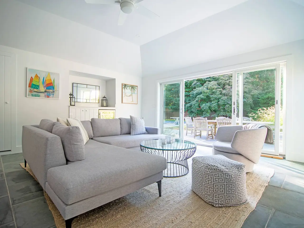 This residence is located in prime East Hampton Village south of the highway location, main street, business district, restaurants, Jitney and short distance to ocean beach. Available for summer rental, this newly renovated home has spacious lawns and perennial gardens. features include central air conditioning, a new chef's kitchen with a gas stove and all top-of-the-line appliances. There are four bedrooms, two baths and a living room with new furnishings throughout. Sonos music and internet-ready cable, there is a spacious renovated pool house with a slate patio, outdoor dining area surrounding the heated pool and lush landscape. Bikes and beach chairs are available.