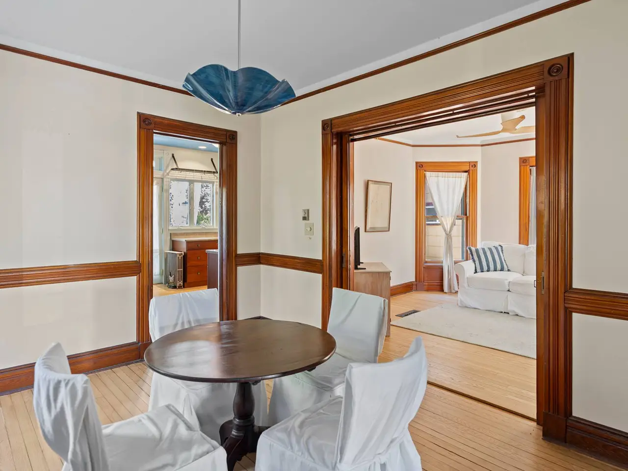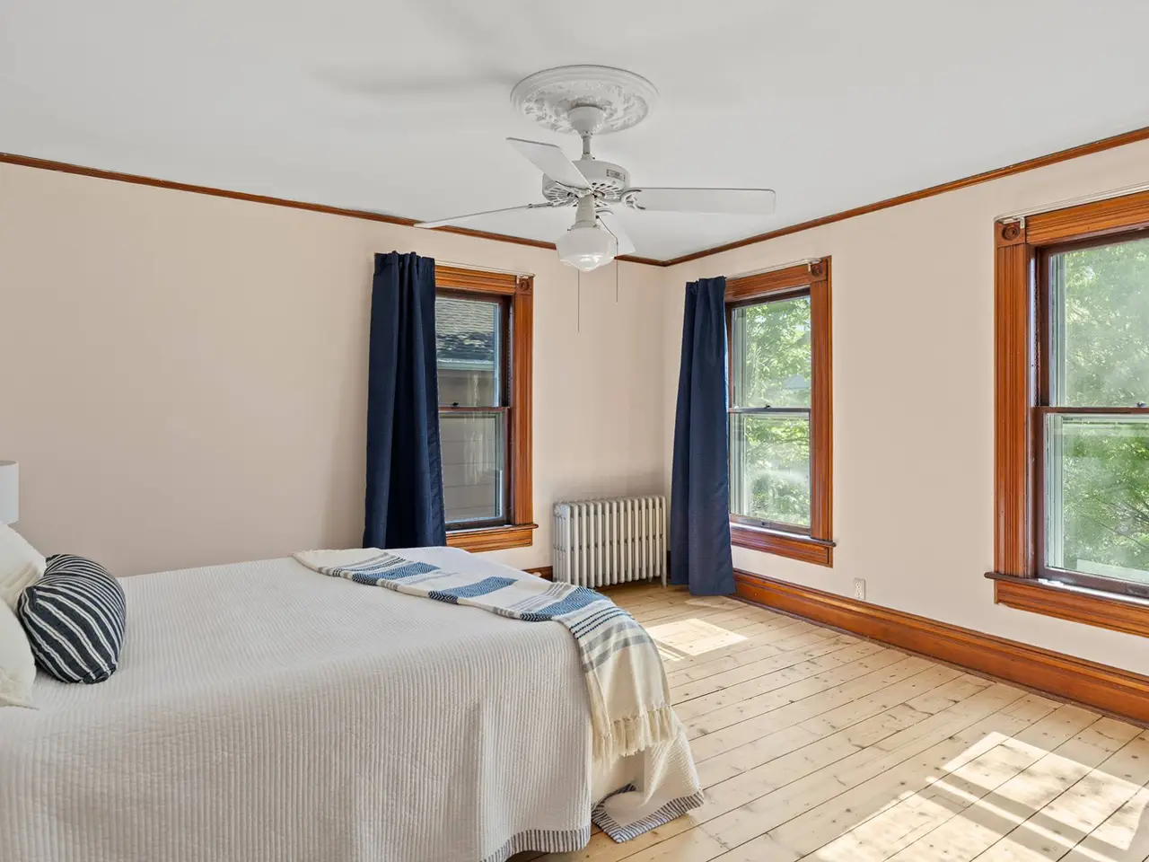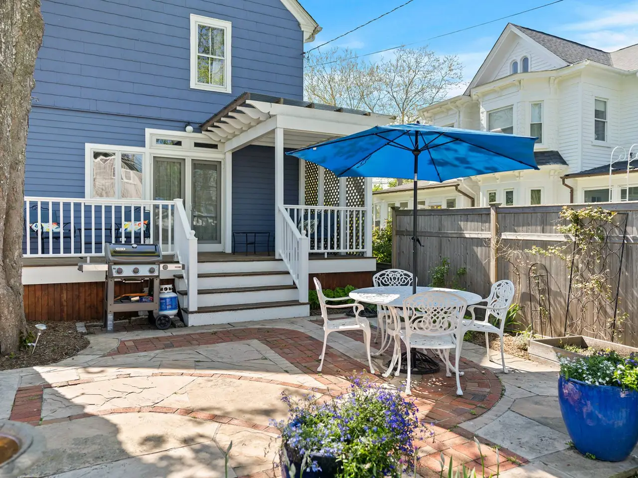 Set in the heart of the historic district, this c.1890 Greenport Village gem boasts 3 bedrooms, 2.5 baths plus a detached studio apartment. It merges many distinctive original details with thoughtful modern updates. A beautifully planted enclosed rear garden with deck and patio, perfect for relaxing and entertaining, leads to a renovated barn which features a 2-car garage and the spacious studio apartment. The main residence's generous ground floor living spaces include a front parlor and living room with original pocket doors, dining room, powder room, and a large renovated kitchen centered on a 48' Capital gas range. Upstairs there are three bedrooms and two full bathrooms, including one en suite. Refinished original wood floors add warmth and character throughout. The restaurants, shops and waterfront of the maritime village are just a few blocks away from this refined and peaceful retreat. ID#922412