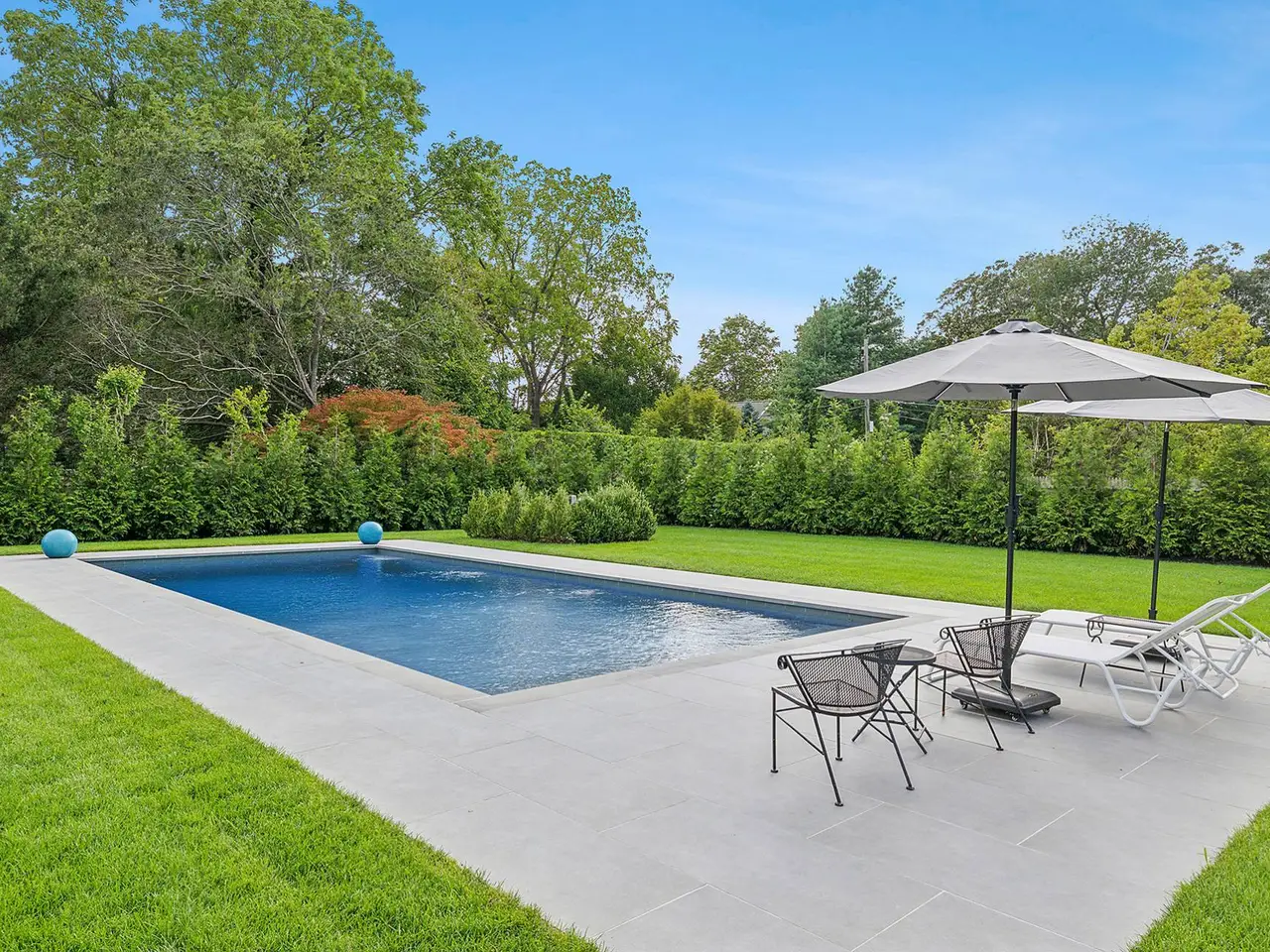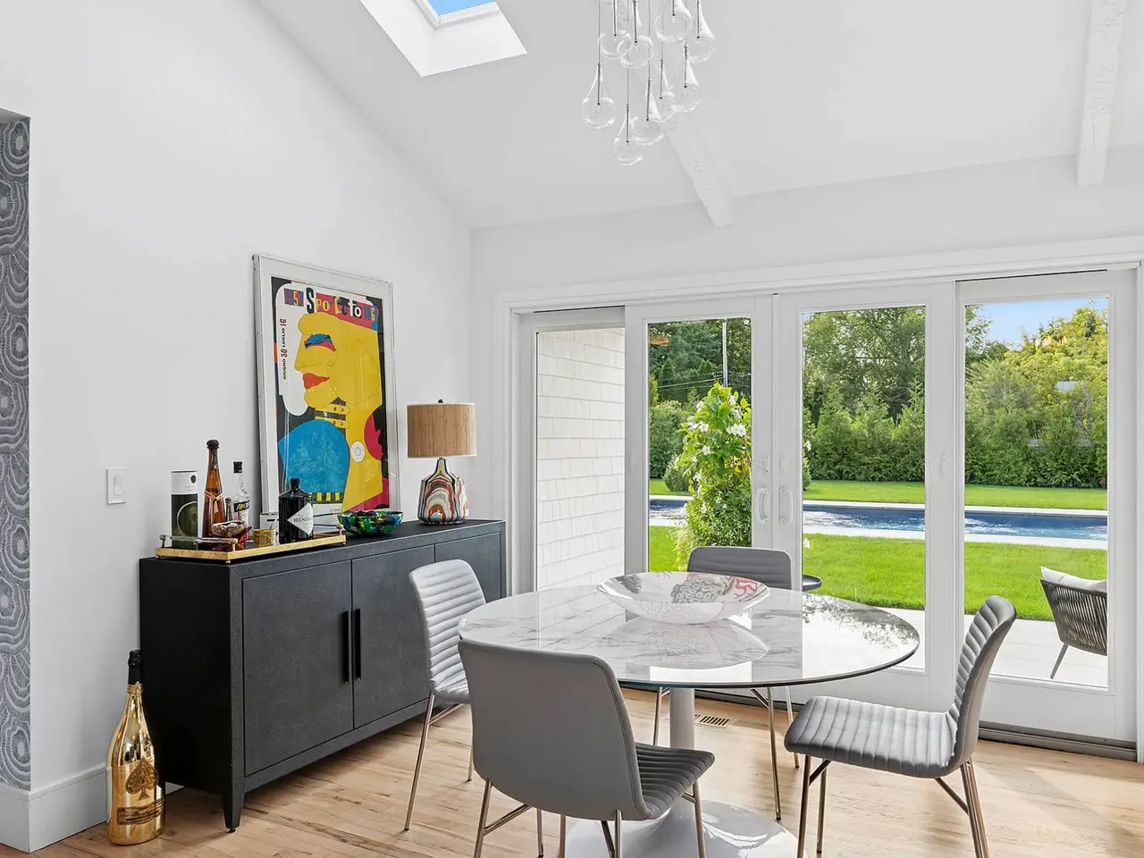 Experience effortless luxury, stylized by Greg McKenzie Design, in this single-level, modern cottage, renovated in 2025 with premium finishes and state-of-the-art amenities. Perfectly designed for relaxation and entertaining, the home boasts a chef's dream kitchen with Wolf and Sub-Zero appliances, flowing into sun-drenched living areas flooded with natural light from skylights and expansive glass sliders. Entertainment-ready living includes a Sonos sound system throughout and seamless access to expansive outdoor spaces. Lounge in the heated 18x40 saltwater gunite pool, dine al fresco, or unwind on the sleek oversized ceramic patios. Privacy hedges and green giant trees ensure a serene retreat. The home offers four spacious bedrooms: a luxurious primary wing, an ensuite guest bedroom, and two additional guest rooms, complemented by three full bathrooms and an outdoor shower. Flat-panel TVs and modern finishes combine technology with serene design for comfort and style. Located just two blocks from the village center, this Hamptons escape blends convenience, style, and ultimate comfort, making it the perfect destination for a luxurious getaway.