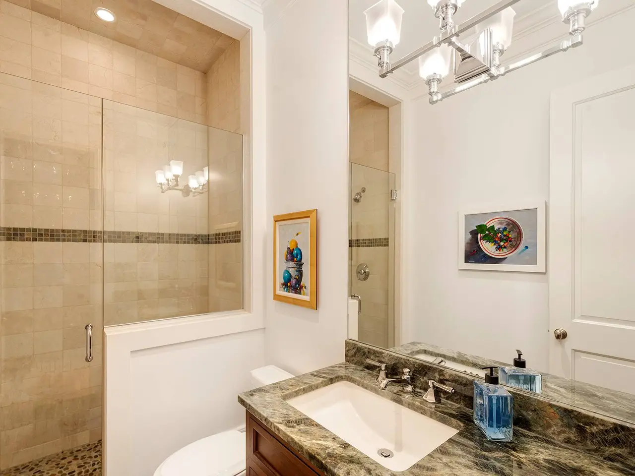 This 6,200 SF, immaculate traditional has it all and is near it all! South of the highway and minutes to word class beaches. Grandiose foyer, gourmet kitchen, grand living room and spacious dining room. The 1st floor master suite is complete with large closets, en-suite bathroom and gas fireplace and sliders to the backyard. Upstairs are four large en-suite bedrooms, two of which lead to the charming balcony. Head to the lower level to find a gym, media room, and full music studio. The gorgeous grounds are complete with a large heated gunite pool and pool house. Don't miss the opportunity to spend a summer in this magnificent house!