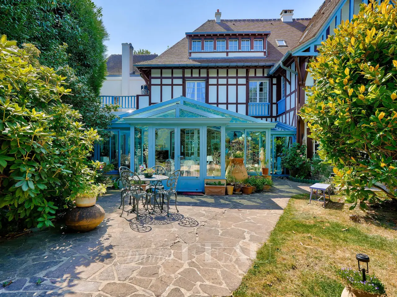 This late 19th century property is in a leafy environment a stone’s throw from Saint-Cloud Park and the forest, and a 3-minute walk from the bus lanes accessing the station. It includes a living/reception room, a dining room, a conservatory, a kitchen with a pantry, and a study. Upstairs are a master suite with a bathroom and a dressing room accessing a near 28 sqm terrace, and two bedrooms sharing a bathroom. The top floor comprises two further bedrooms, a shower room, a study with fitted storage space, and a fitness room. On a partial basement with a boiler room, a storage room and a wine cellar. A double garage and a chicken coop are at the bottom of the garden.