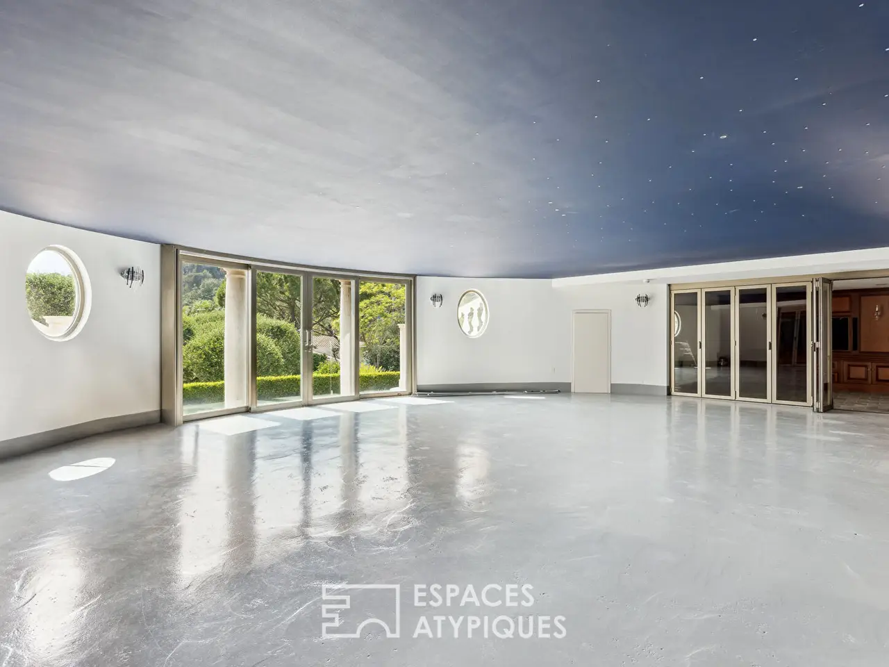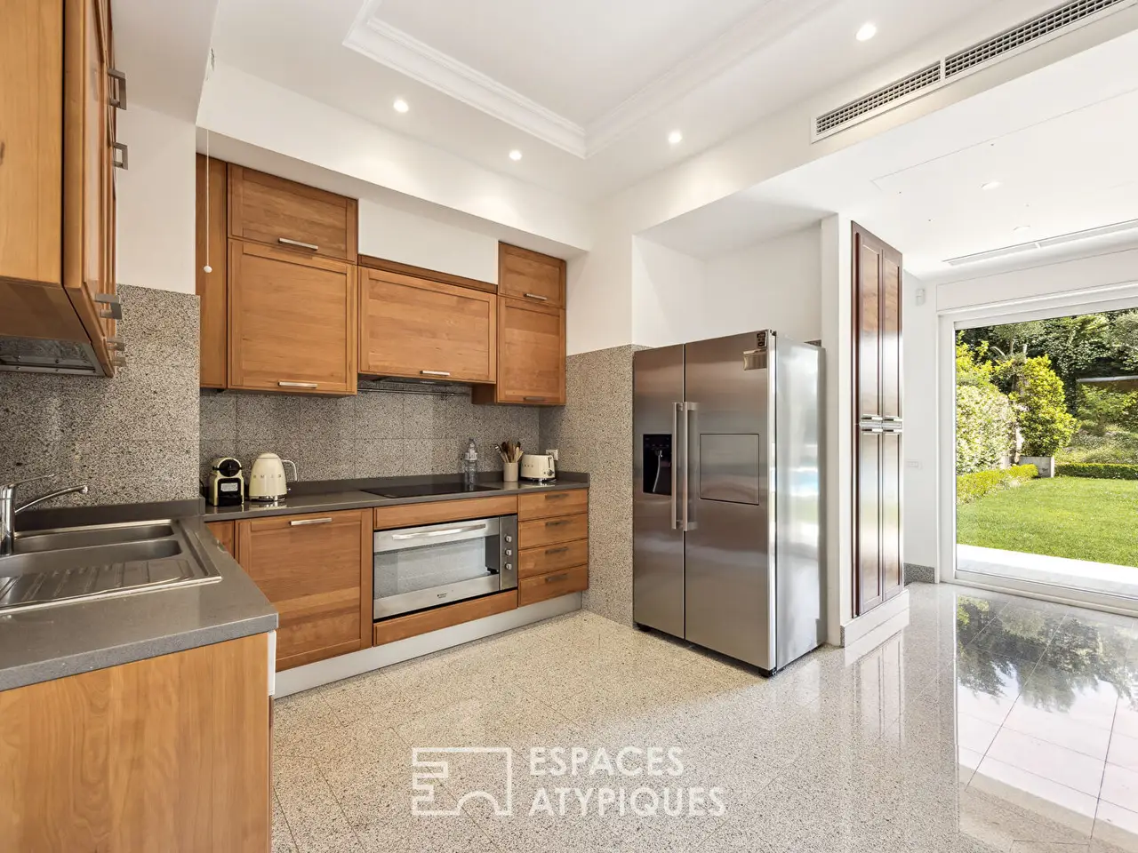 Perched in an idyllic setting, this sumptuous property with Palladian architecture exudes all the charm of a Mediterranean lifestyle. It is set in the heart of a landscaped park of approximately 2,300 sqm, a true haven of serenity where nature expresses itself in complete freedom. Bathed in light, this luxury villa offers 402 sqm of elegant interiors, designed to combine refinement, comfort, and generous volumes. From the ground floor, the 80 sqm living spaces open harmoniously onto the exterior. A large, bright living room, a cozy dining room with a fireplace, and a fully equipped kitchen naturally extend to a large terrace offering unobstructed sea views. Upstairs, five spacious bedrooms, some with direct access to the panoramic terrace, are served by four elegantly appointed bathrooms, combining modern comfort and quality materials. The lower level houses a vast 203sqm garage that can accommodate 6 to 8 vehicles, as well as a separate studio, ideal for guests or staff, and an office. This space can also be transformed into a reception room to host private events in an exclusive setting. High-end amenities enhance this residence: an elevator serving all levels, reversible air conditioning, a sophisticated alarm system, video surveillance, and a heated swimming pool inviting you to relax all year round. ENERGY CLASS: B / CLIMATE CLASS: A Estimated average annual energy expenditure for standard use, based on prices for the years 2021, 2022, 2023, is between EUR1,840 and EUR2,550. Information on the risks to which this property is exposed is available on the Georisques website: www.georisques.gouv.fr REF. 11971 Additional information * 7 rooms * 5 bedrooms * 5 bathrooms * 2 floors in the building * Outdoor space : 2311 SQM * Parking : 8 parking spaces Energy Performance Certificate Primary energy consumption b : 70 kWh/m2.year High performance housing