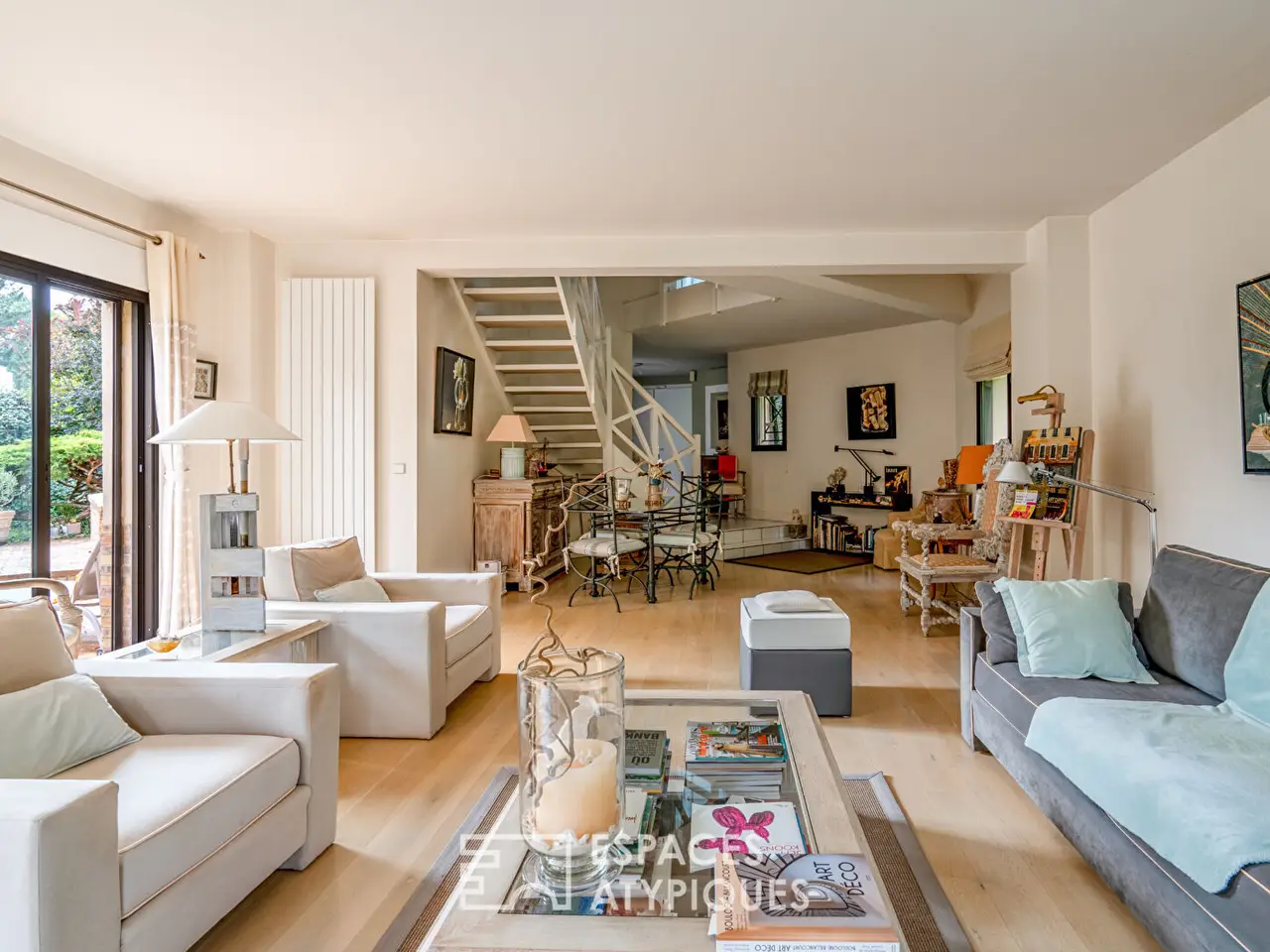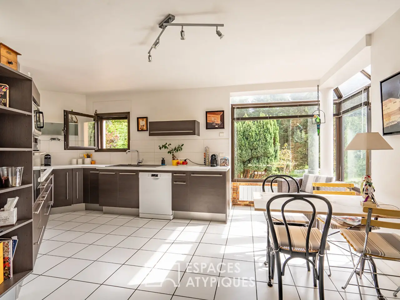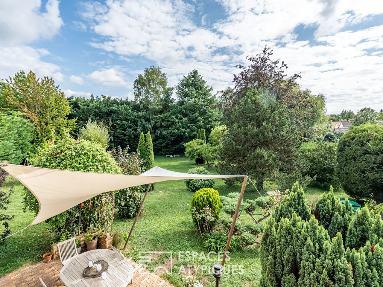 This superb architect-designed house, with a floor area of ??196 m2 and a living space of 170.5 m2, tastefully designed and built to a high standard, is located on the heights of Villennes-sur-Seine, nestled in a large, enclosed, landscaped garden with no overlooked views.The entrance leads to the bright kitchen overlooking its beautiful green spaces, or, after a flight of stairs, to the dining room and its superb 57 m2 living room with its beautiful Boley fireplace, surrounded by greenery and opening onto the pleasant south-facing terrace.The wooden staircase leads to the sleeping area, which consists of a master suite with a dressing room and private bathroom, a second bedroom with its own shower room, and two lovely bedrooms sharing a shower room.The approximately 25 m2 double garage offers the possibility of converting it into a bedroom with its own bathroom or a studio, as the water inlets and outlets were already installed during its construction. A beautiful layout is possible in this third module of this beautiful building.This family home, with its high-quality construction, much needed in this town with its particularly clayey soil, offers beautiful features, sheltered from view, in a superb 2,532 m2 garden adorned with numerous tree species (cedar, willow, magnolia, sweet gum, etc.). It will be able to evolve further according to the wishes of the family who will have chosen to settle there to take full advantage of this peaceful and privileged environment, with a plot of land suitable for a swimming pool, taking into account local planning regulations.The daycare, nursery, and elementary schools are a 5-minute drive away. Middle and high schools: Verneuil, Poissy, Saint-Germain-en-Laye, and the Saint-Germain-en-Laye International High School with school shuttles.Sports hall, stadium, horse riding, tennis, and golf course are a 5-minute drive away.The property is a 20-minute walk or 10-minute bus ride from the city center and Villennes-sur-Seine train station (line J). 25 minutes from Paris Saint-Lazare.Bus (line 26) to Poissy and Saint-Germain-en-Laye.RER: Poissy line AClose access from the A13 and A14 motorways. Paris is 19 km away via the A14.Direct bus to La Defense is a 5-minute drive away.The RER EOLE will open in 2026 and will serve Paris Saint-Lazare, La Defense, and Paris Porte Maillot in 20 minutes from Villennes train station.ENERGY CLASS: E / CLIMATE CLASS: B. Estimated average annual energy expenditure for standard use, based on 2021 energy prices: between €3,100 and €4,240REF. 11250Additional information* 6 rooms* 4 bedrooms* 1 bathroom* 2 shower rooms* Outdoor space : 2532 SQM* Property tax : 3 287 €Energy Performance CertificatePrimary energy consumptione : 273 kWh/m2.yearHigh performance housing*A*B*C*D*273kWh/m2.year9*kg CO2/m2.yearE*F*GExtremely poor housing performance* Of which greenhouse gas emissionsb : 9 kg CO2/m2.yearLow CO2 emissions*A*9kg CO2/m2.yearB*C*D*E*F*GVery high CO2 emissionsEstimated average amount of annual energy expenditure for standard use, established from energy prices for the year 2021 : between 3100 € and 4240 €Agency feesThe fees include VAT and are payable by the vendorMediatorMediation Franchise-Consommateurswww.mediation-franchise.com29 Boulevard de Courcelles 75008 ParisInformation on the risks to which this property is exposed is available on the Geohazards website : www.