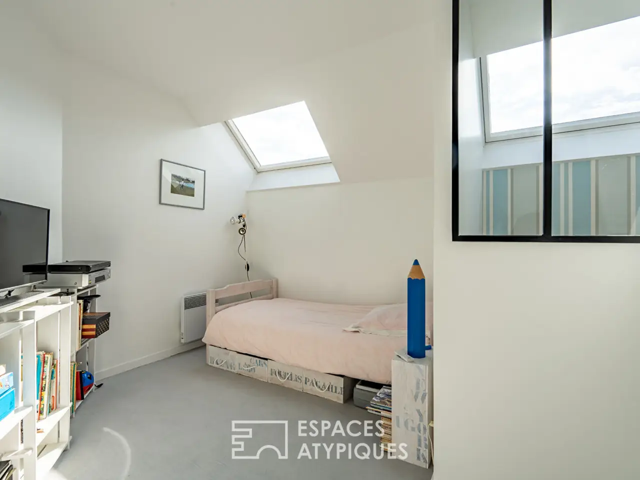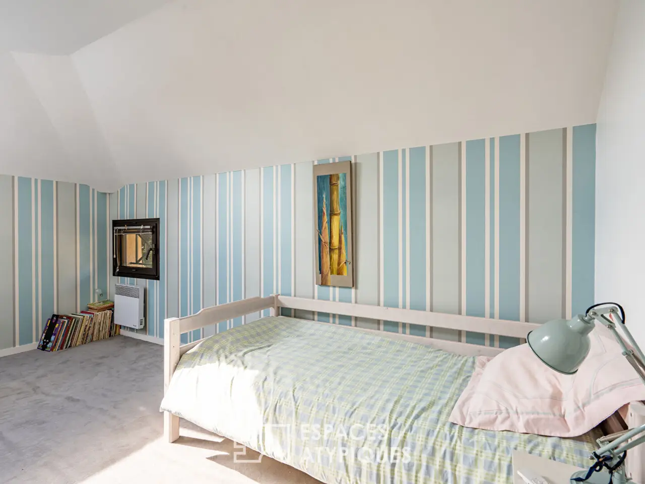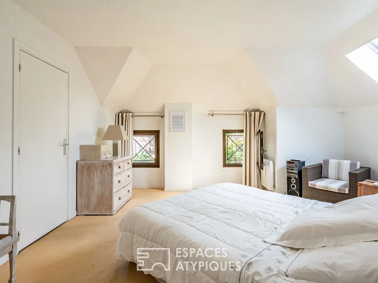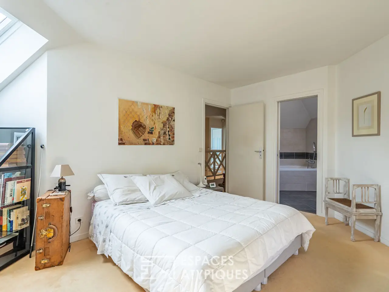 This superb architect-designed house, with a floor area of ??196 m2 and a living space of 170.5 m2, tastefully designed and built to a high standard, is located on the heights of Villennes-sur-Seine, nestled in a large, enclosed, landscaped garden with no overlooked views.The entrance leads to the bright kitchen overlooking its beautiful green spaces, or, after a flight of stairs, to the dining room and its superb 57 m2 living room with its beautiful Boley fireplace, surrounded by greenery and opening onto the pleasant south-facing terrace.The wooden staircase leads to the sleeping area, which consists of a master suite with a dressing room and private bathroom, a second bedroom with its own shower room, and two lovely bedrooms sharing a shower room.The approximately 25 m2 double garage offers the possibility of converting it into a bedroom with its own bathroom or a studio, as the water inlets and outlets were already installed during its construction. A beautiful layout is possible in this third module of this beautiful building.This family home, with its high-quality construction, much needed in this town with its particularly clayey soil, offers beautiful features, sheltered from view, in a superb 2,532 m2 garden adorned with numerous tree species (cedar, willow, magnolia, sweet gum, etc.). It will be able to evolve further according to the wishes of the family who will have chosen to settle there to take full advantage of this peaceful and privileged environment, with a plot of land suitable for a swimming pool, taking into account local planning regulations.The daycare, nursery, and elementary schools are a 5-minute drive away. Middle and high schools: Verneuil, Poissy, Saint-Germain-en-Laye, and the Saint-Germain-en-Laye International High School with school shuttles.Sports hall, stadium, horse riding, tennis, and golf course are a 5-minute drive away.The property is a 20-minute walk or 10-minute bus ride from the city center and Villennes-sur-Seine train station (line J). 25 minutes from Paris Saint-Lazare.Bus (line 26) to Poissy and Saint-Germain-en-Laye.RER: Poissy line AClose access from the A13 and A14 motorways. Paris is 19 km away via the A14.Direct bus to La Defense is a 5-minute drive away.The RER EOLE will open in 2026 and will serve Paris Saint-Lazare, La Defense, and Paris Porte Maillot in 20 minutes from Villennes train station.ENERGY CLASS: E / CLIMATE CLASS: B. Estimated average annual energy expenditure for standard use, based on 2021 energy prices: between €3,100 and €4,240REF. 11250Additional information* 6 rooms* 4 bedrooms* 1 bathroom* 2 shower rooms* Outdoor space : 2532 SQM* Property tax : 3 287 €Energy Performance CertificatePrimary energy consumptione : 273 kWh/m2.yearHigh performance housing*A*B*C*D*273kWh/m2.year9*kg CO2/m2.yearE*F*GExtremely poor housing performance* Of which greenhouse gas emissionsb : 9 kg CO2/m2.yearLow CO2 emissions*A*9kg CO2/m2.yearB*C*D*E*F*GVery high CO2 emissionsEstimated average amount of annual energy expenditure for standard use, established from energy prices for the year 2021 : between 3100 € and 4240 €Agency feesThe fees include VAT and are payable by the vendorMediatorMediation Franchise-Consommateurswww.mediation-franchise.com29 Boulevard de Courcelles 75008 ParisInformation on the risks to which this property is exposed is available on the Geohazards website : www.