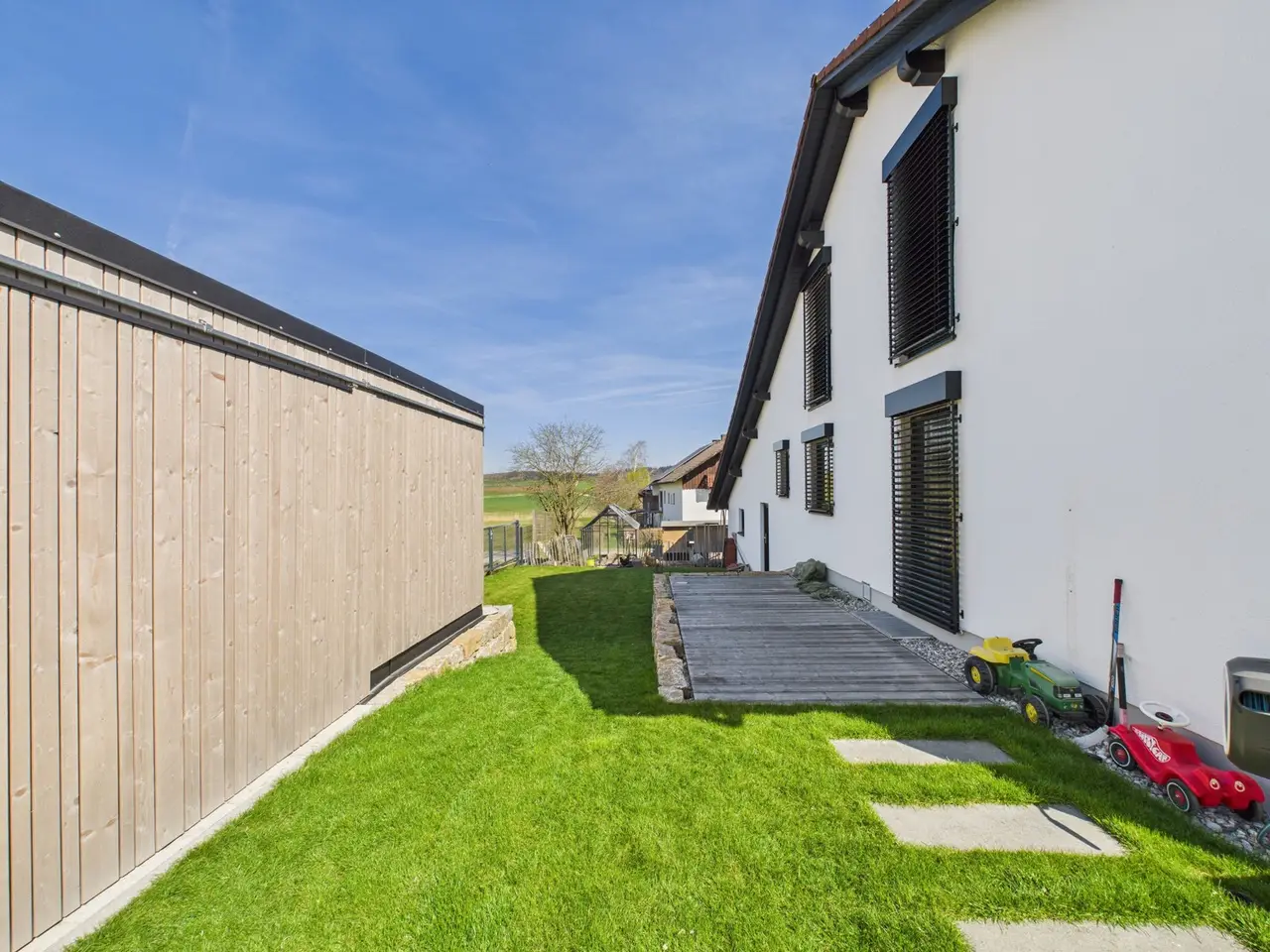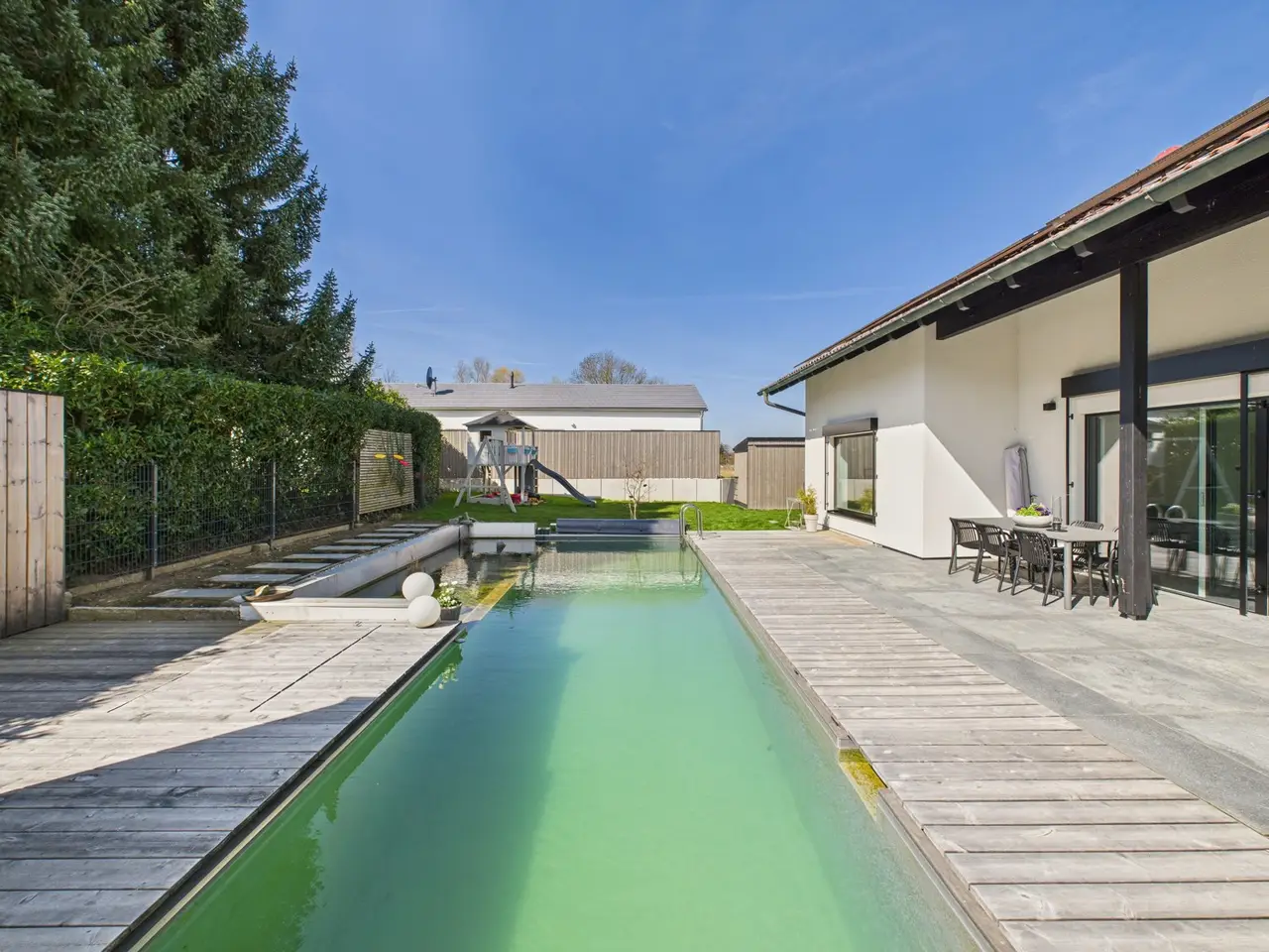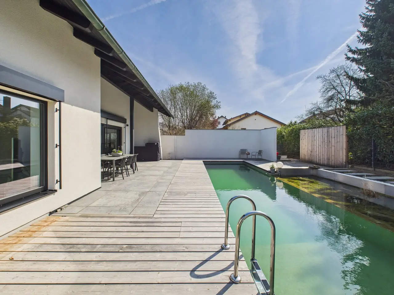 A place that provides a sense of security, radiates clarity and offers space for new stories: This high-quality renovated detached house in Vilsheim / Langenvils combines rural idyll with modern living culture. Nestled in the tranquil natural surroundings of the Vils valley, yet close to the city, this home has a very special aura - harmonious, stylish and authentic. The property was extensively and sensitively renovated in 2021/22. The approx. 209 m² living space comprises six spacious rooms that impress with their open floor plans, natural lighting and clear design language. Fine materials and harmonious color schemes create a warm, inviting atmosphere. The custom-made kitchen by a carpenter with modern appliances and high-quality surfaces is not only a functional focal point, but also a meeting place. Floor-to-ceiling windows seamlessly connect the interior with the exterior - here, life opens up to the garden, to nature, to light. The plot of around 839 m² has been lovingly landscaped: A spacious terrace with fine natural stone, a near-natural swimming pond with wooden deck, outdoor shower and an automatic irrigation system make the outdoor area an oasis of relaxation. The house is also technically impressive with a modern, energy-efficient concept - including photovoltaics, solar support and intelligent control. High-quality windows, smart shading and harmonious fixtures underline the high standards. A well thought-out floor plan, a stylish bathroom with laundry chute, custom-made wardrobes, exposed screed and many other lovely details round off the overall picture. Three outdoor parking spaces and a garage offer ample space for vehicles. The quiet location on the outskirts promises privacy! This house is more than just four walls. It is a way of life. A home that radiates warmth, gives freedom and leaves room for the essentials.