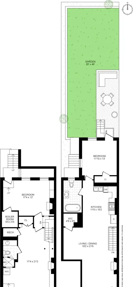 Welcome to historic Vinegar Hill. This one-of-a-kind, spacious two-family brick townhouse is located in a quaint neighborhood with tree-lined cobblestone streets in one of Brooklyn's most distinctive neighborhoods. Currently configured as two duplexes, each with its own private entrance, the home blends historic character along with an excellent income-generating opportunity. The owner's upper duplex is light-filled and includes a private roof deck which has sweeping views of the Manhattan skyline, East River, iconic bridges and more. Apartment also features three working wood-burning fireplaces, two full bathrooms, washer/dryer, storage and an adaptable upper floor plan. The lower custom duplex - with its own private garden - offers a strong rental opportunity or can be used as additional living or workspace. This home includes three working wood-burning fireplaces, two full bathrooms, washer/dryer and plenty of storage. Features in both duplexes include: Radiant heated floors throughout, central air conditioning with heating back-up, and each unit is separately metered with its own boiler & hot water heater. Additionally both have gourmet-monogrammed vented kitchens with custom cabinets & trim, antique wood floors & doors and pine & zebra wood staircases. This is a once-in-a lifetime chance to own a home that offers both lifestyle and investment benefits. Vinegar Hill is one of Brooklyn's most quiet, historic and unique neighborhoods. Perfectly located next to vibrant Dumbo with easy access to eclectic stores, cafes, art galleries and the awe-inspiring Brooklyn Bridge Park. Also nearby are Wegmans, the F-train, The Brooklyn Navy Yard, and a growing selection of restaurants and businesses. Shown by Appointment. Schedule your visit today and experience 301 Water Street for yourself!