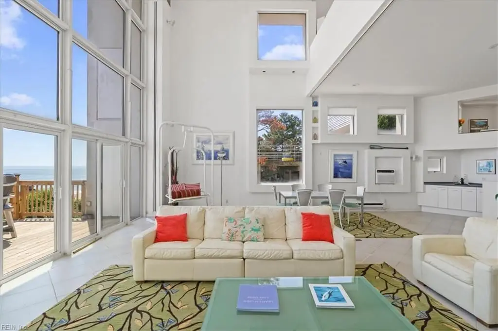Croatan - right on the Ocean! Contemporary Design, solid with concrete and steel construction - elevator, roof top deck with 360 degree views! highest in the area - spectacular sunrises over the Atlantic Ocean -new decking with direct walkway over the dune to enjoy the beach and ocean - hot tub, great outdoor living spaces on all levels - unique glass elevator for easy access - currently doing short term rentals - furniture can be negotiable - windows are two stories high - dramatic design - modern style, views from everywhere - no shortage of spots to listen to the waves, see wildlife in and over the ocean, enjoy surfers, and all the water sports - this is a great opportunity to live in Croatan and enjoy all this beach community has to offer!