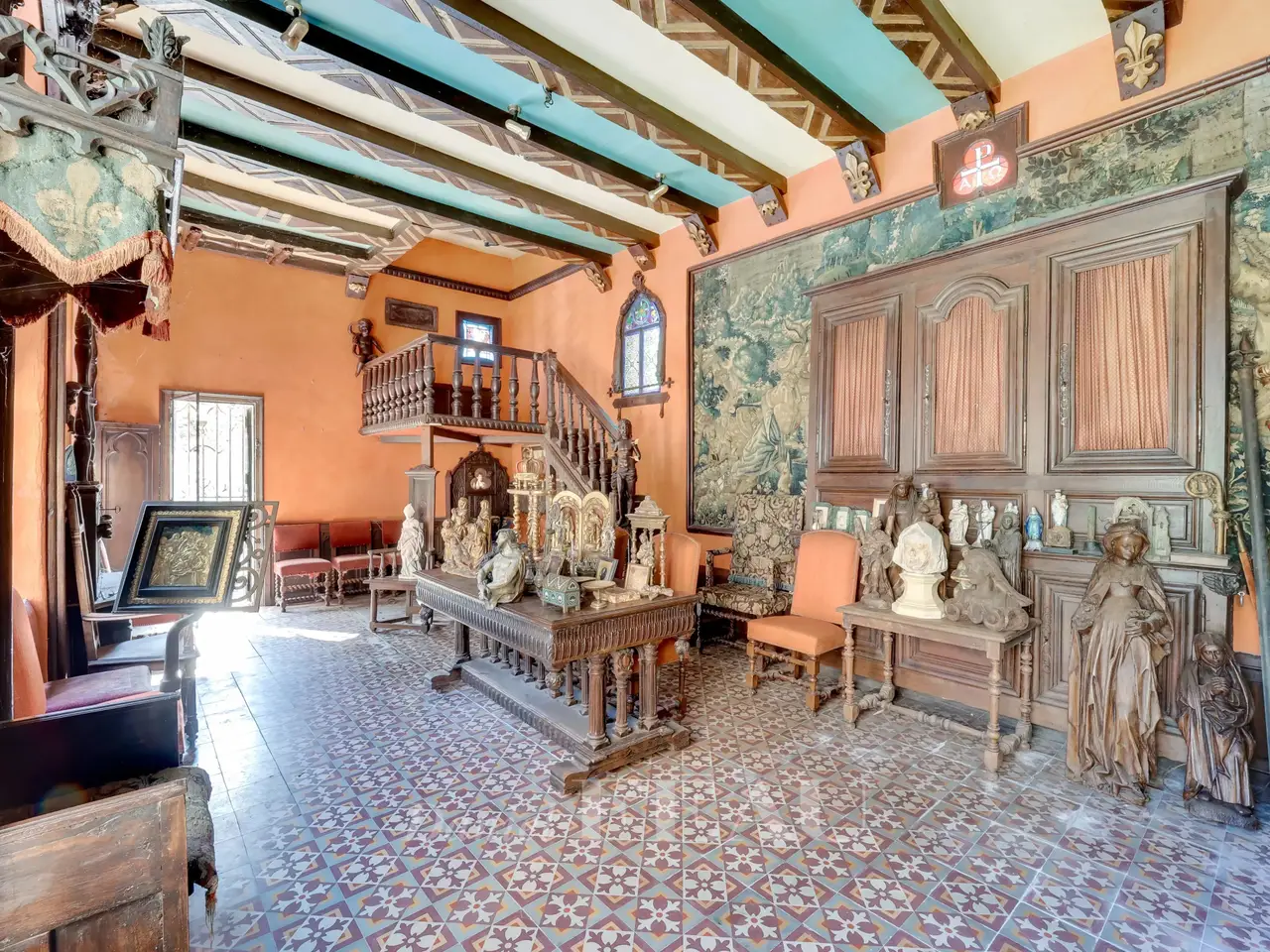 • Gothic-style chapel with stained glass