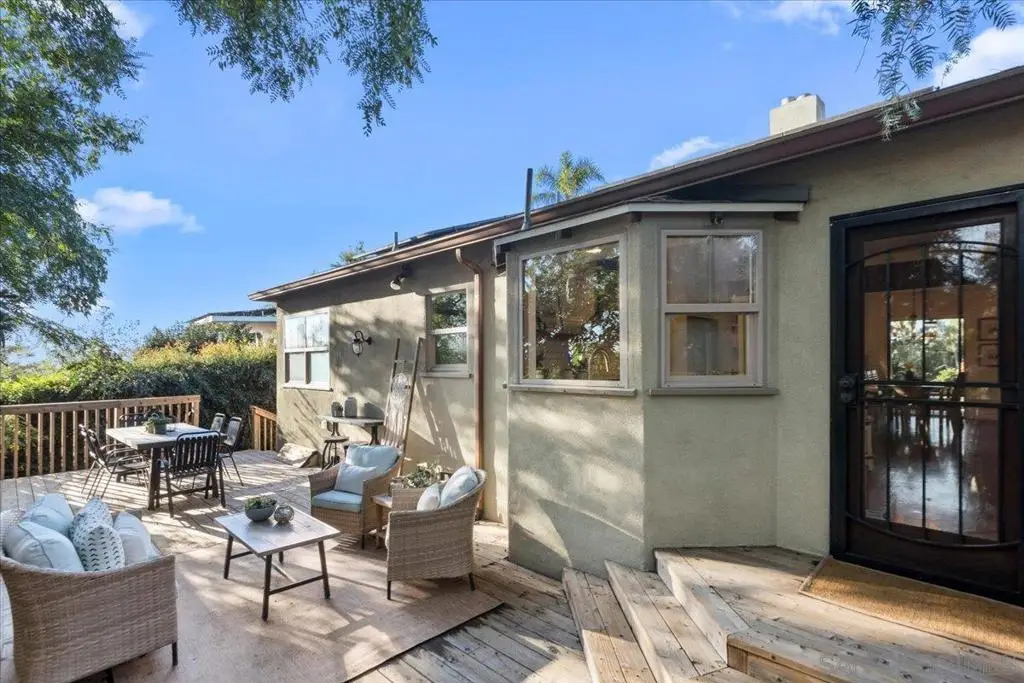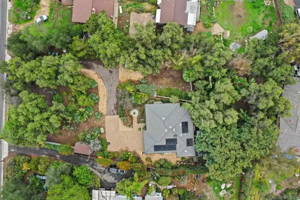 Seller will entertain offers between $993,900 - $1,043,900. Private sanctuary behind a gated, fully enclosed .55 acre property with a mature, abundant & diverse landscape; set on an elevated lot, with serene & lush views surrounding the home, bathed in natural light. Thoughtfully crafted, charming modern farmhouse with quality, designer updates: including a fully remodeled kitchen with high-end, marbled, matte finish quartzite countertops, an oversized dining island, subway tile backsplash & stainless steel appliances. Perfect for indoor/outdoor entertaining as the kitchen opens to a large deck with a tranquil setting. Updated bathrooms with elegant, marble countertop vanities & a marbled tiled shower in the primary suite. Timeless touches with stained, real hardwood floors; exposed wood beams. Other updates include OWNED SOLAR; Central HVAC; and a BONUS finished shed (not included Sq.Ft.) with windows, utility & new laminate wood floors: perfect for an outside office, playroom or yoga/fitness space. A homesteader's dream, perfect for gardening, raising chickens & animals, brimming with fruit trees: lemon, orange, grapefruit, pomegranate, dragon fruit & more! New roof, electrical panel, dual pane vinyl windows, and updated attic insulation & ducting. Multiple, usable areas to expand & build ADUs for additional living or income. This unique beauty is the lifestyle upgrade you've been searching for!