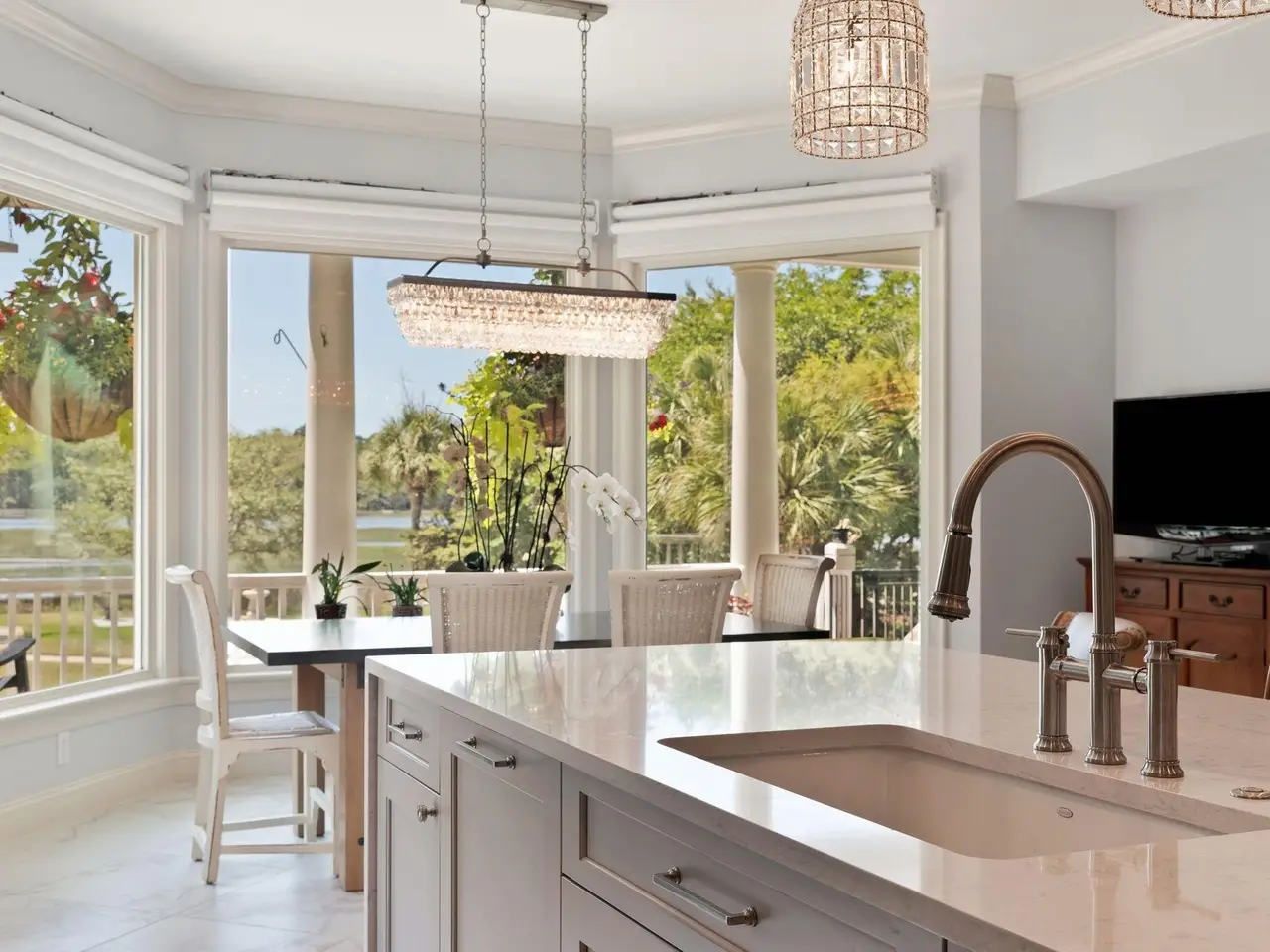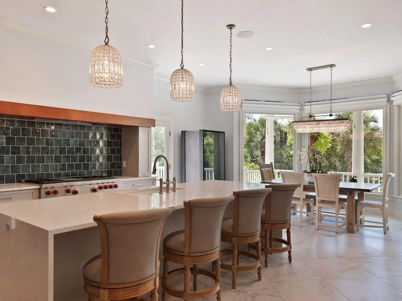Private waterfront 6-acre estate on Wadmalaw Island. Idyllic setting with unsurpassed views on Bohicket Creek. Gourmet renovated kitchen with Viking refrigerator, Wolf gas range, custom cabinetry, two islands (including bar), breakfast room, and office. Dining room located down the Barrel vaulted ceiling hallway. Open fireplace between den and living room. Built-in bookshelves throughout. Combination of wood and carpet floors. Private resurfaced tennis court. Private dock. Pool with new travertine tile and Cabana to enjoy outdoor living! Pristine landscaped yard with Koi pond, fountain, new brick walkways, and numerous fruit bearing trees/plants. 3 ponds (1 saltwater pond, 2 natural). Irrigation system. Elevator to all 3 levels. Central vacuum system.Room on ground level and underneath parking. Low tide approximately 2 feet. Flood Insurance $455.00 per year. Gated community. Neighborhood boat ramp. M-F 6pm-6am, Saturday and Sunday 24 hours.