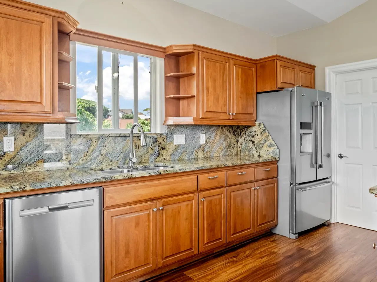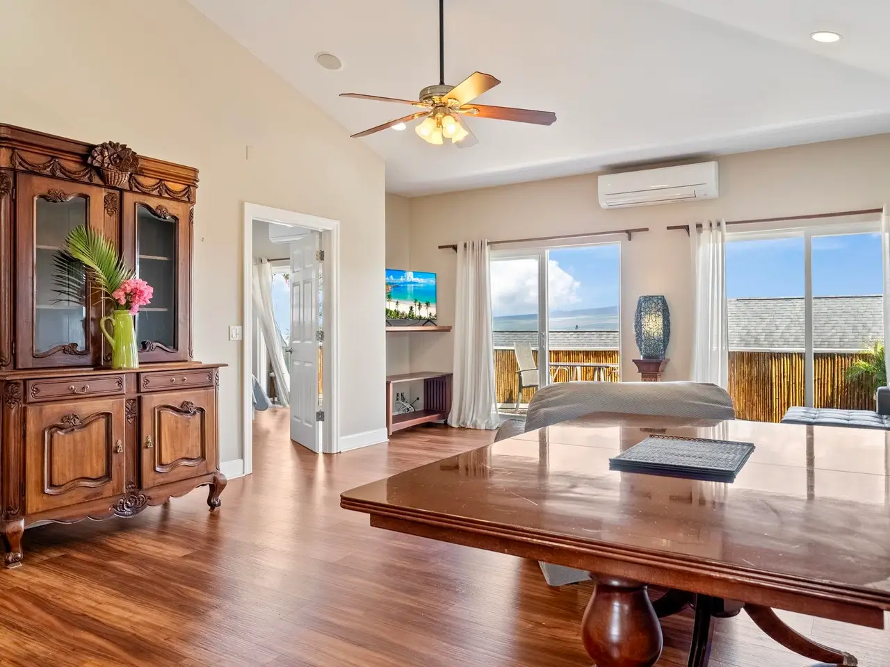 Tucked away in Old Sandhills, you’ll find this amazing gem of a home: beautiful views, updated kitchen and bath, gorgeous luxury vinyl plank floors upstairs, and a spacious downstairs with large bedrooms and a big family room. This home also features a wonderful attached Ohana. Incredibly private, tucked at the end of a flag lot. There’s a beautiful covered, enclosed screen porch with a Koi pond, a three-car garage and a work shed, plus 16 owned photovoltaic panels. Close to great surf and kiteboarding spots on the North Shore, This truly is a wonderful home in Wailuku.