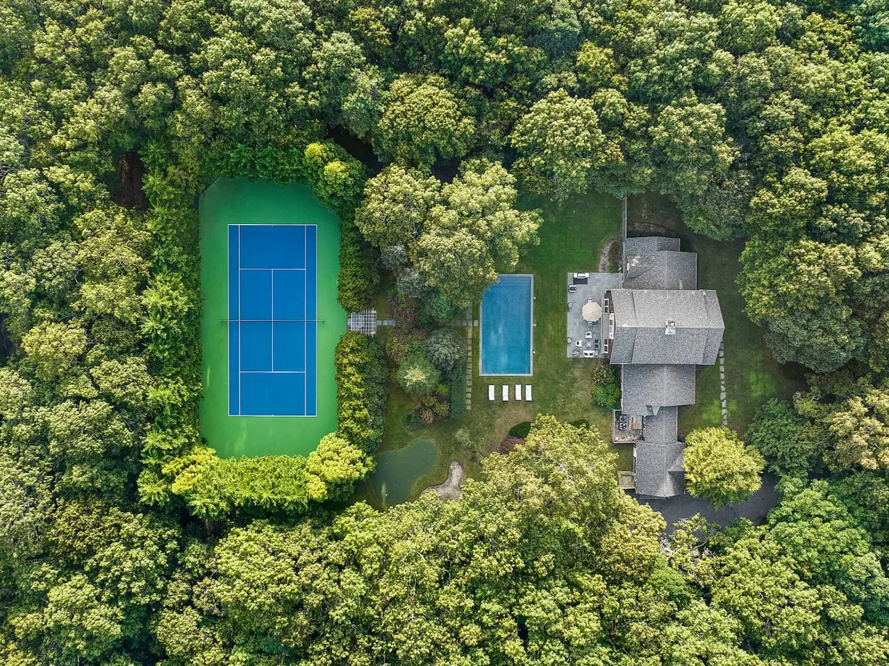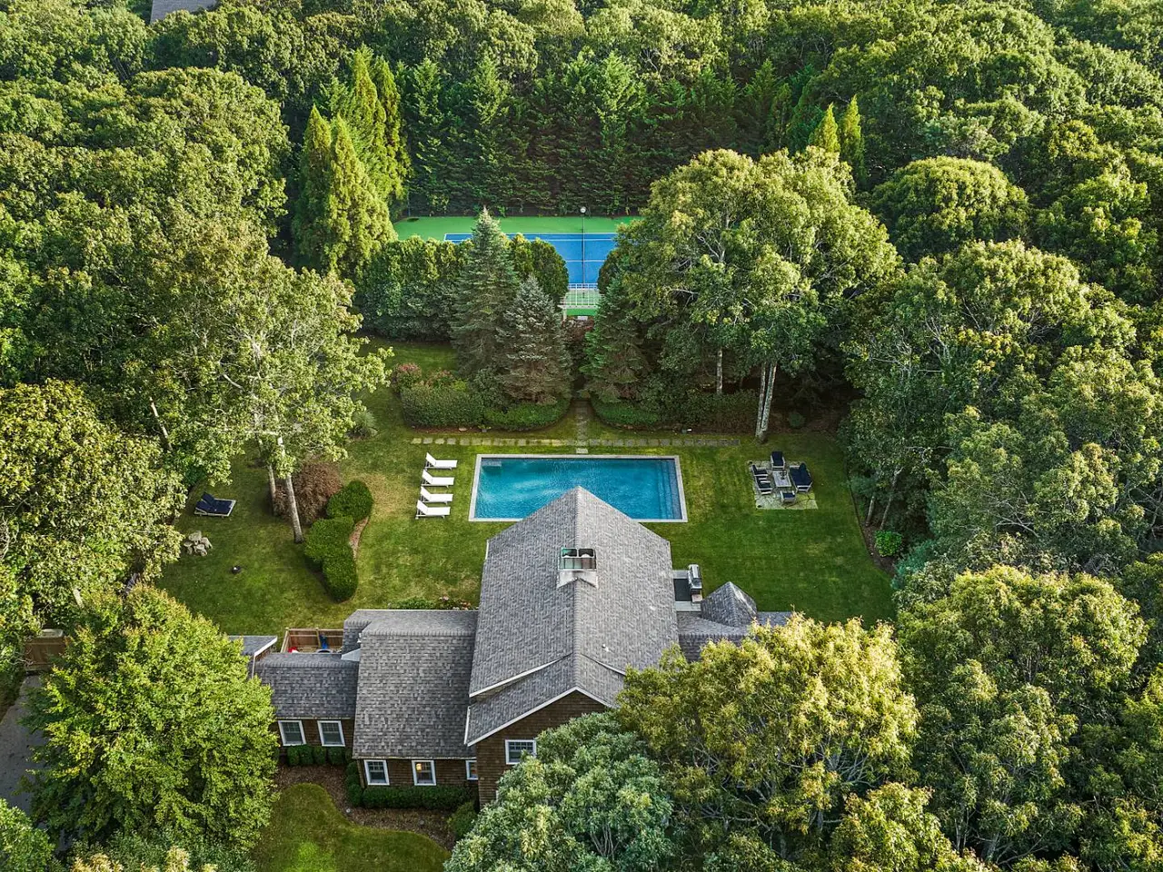 Rental Reg. # 22-399. Wainscott hidden gem - tranquility at its finest! Five bedrooms, four baths with pool, tennis, and putting green on 2.4 acres. This is a stunning meticulous light and bright five bedroom (two up, three down), four bathroom home. Features three en suite bedrooms, including two master suites. The open concept living room is sun-filled with open gourmet kitchen dining area with French doors leading outside to beautiful grounds featuring a heated 20x40 gunite pool, a secluded tennis court with basketball and putting green and sand trap. Conveniently located, only a five-minute drive to Sag Harbor's Main Street and bay and ocean beaches and seven-minute drive to East Hampton and Bridgehampton. This beautifully landscaped property offers colorful gardens. A private serene retreat, perfect property for entertaining as well as relaxation. Features six smart TVs, surround sound music, Sonos zones inside and out, and high speed Internet.