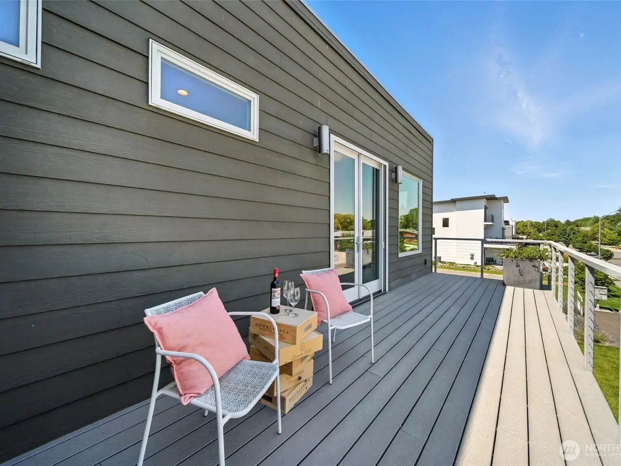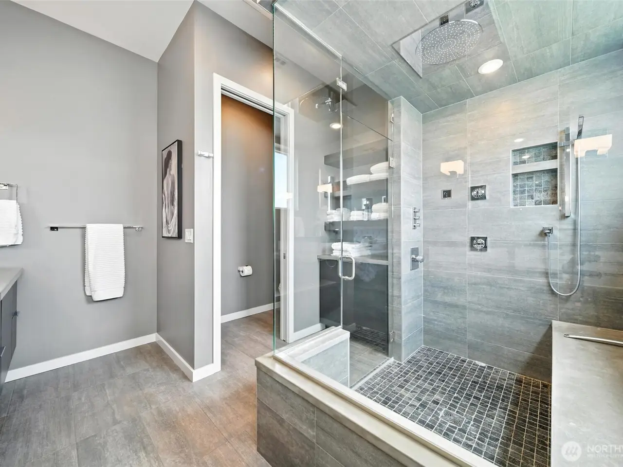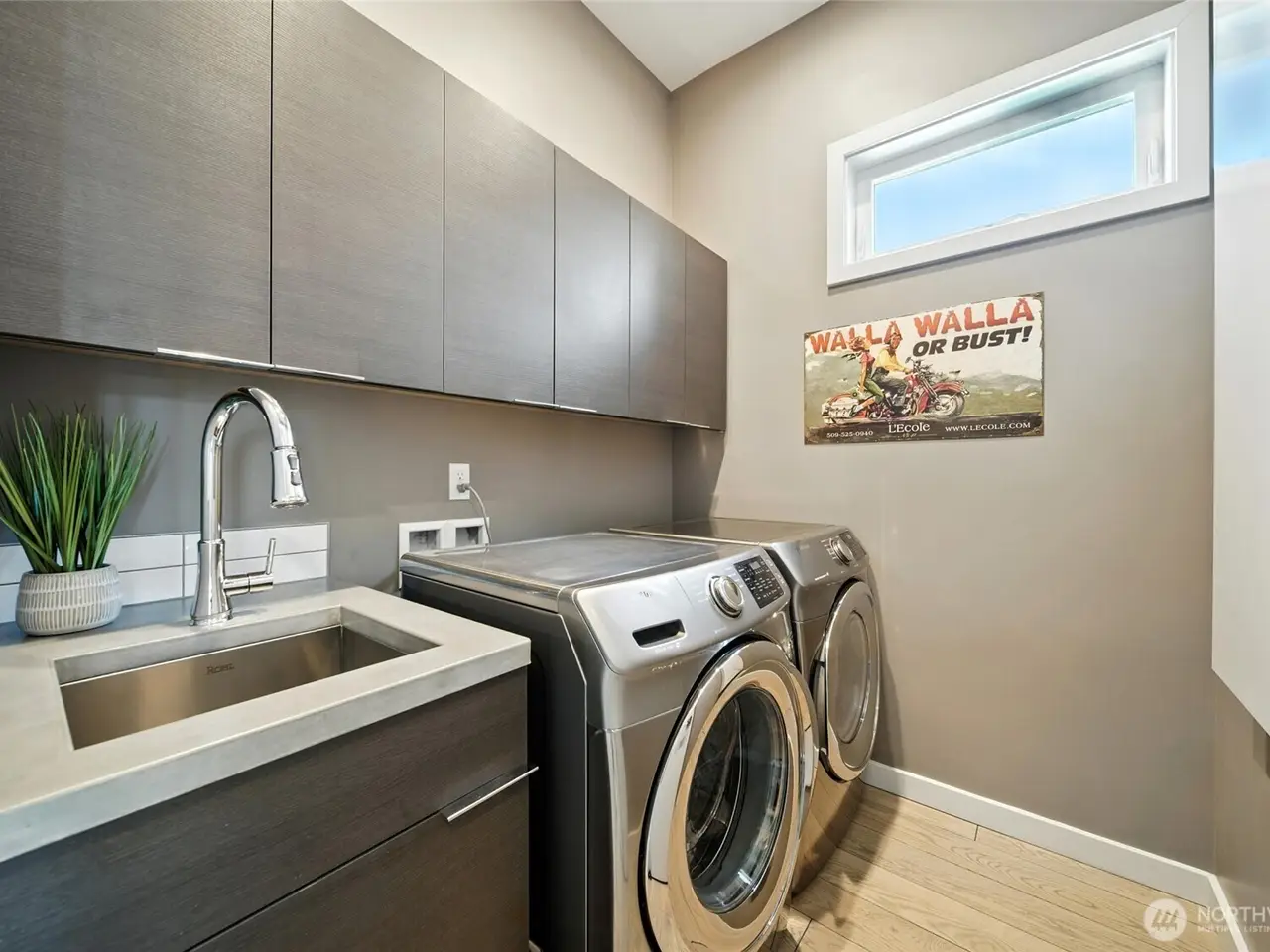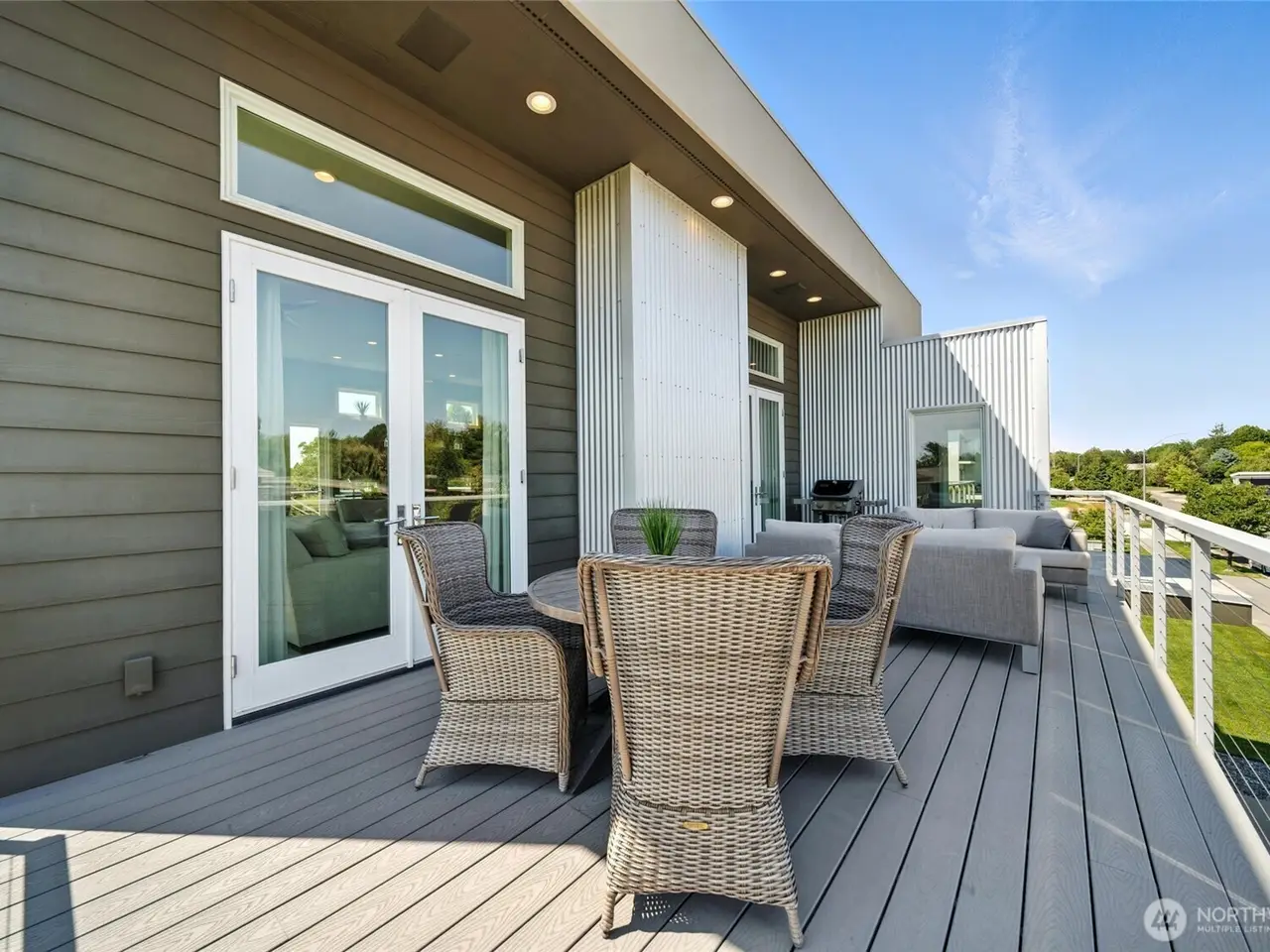 Sleek, modern design and sweeping Blue Mountain views define this stunning home. The open floor plan features a floating staircase and glass-enclosed wine room as a striking focal point. A chef's kitchen impresses with an oversized island, premium appliances, and butler's pantry with wet bar. The great room is filled with light and opens to expansive balconies perfect for entertaining. The luxurious primary suite offers a spa-like bath, walk-through closet, and private balcony. Downstairs, enjoy two ensuite bedrooms, office, den, and patios each floor has its own full laundry room. Set on a quiet street of distinctive contemporary homes.