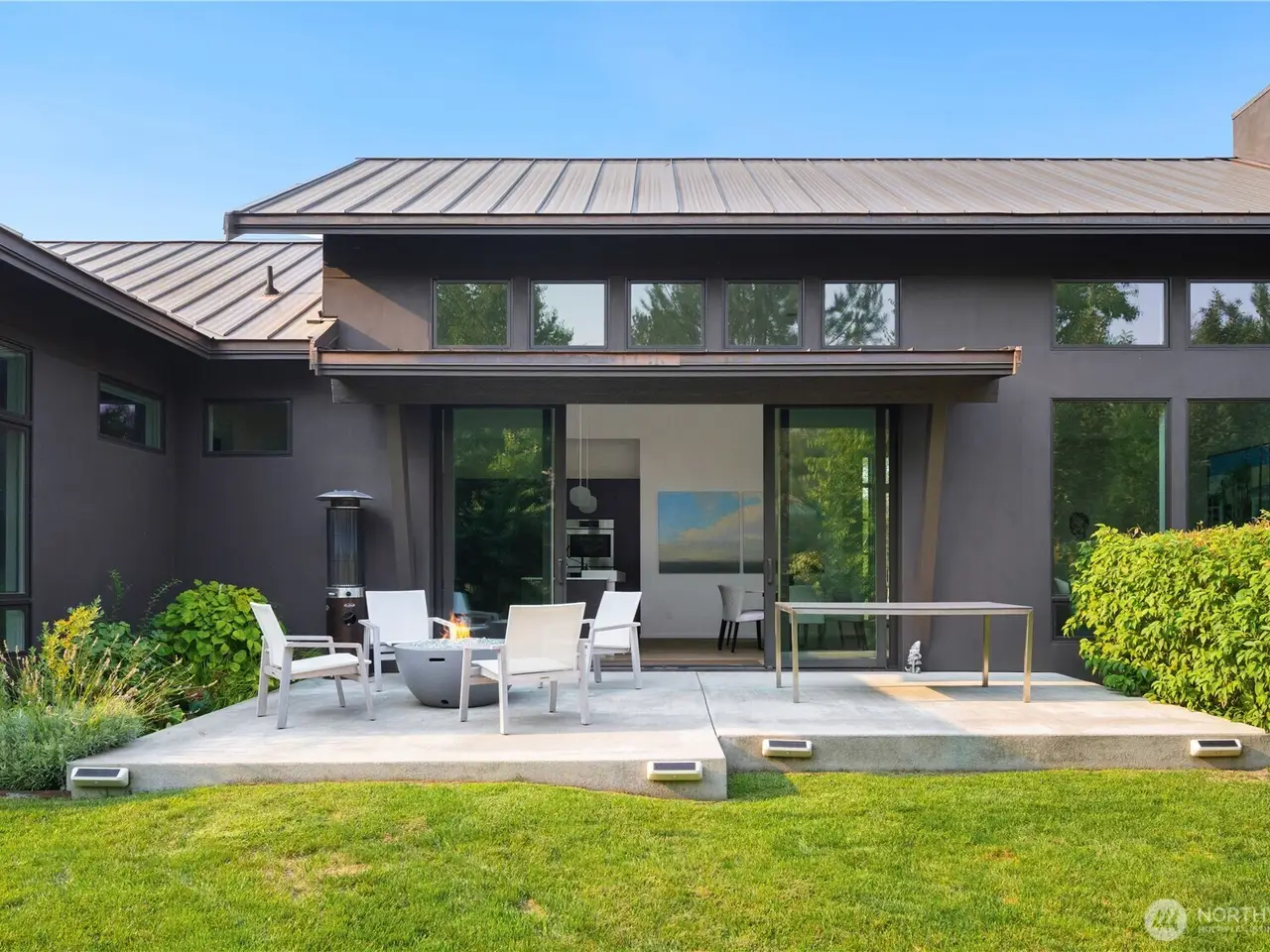 Discover refined modern living in Crosshaven, steps from the WW Golf & Country Club. Designed by architect Richard Bruskrud, interiors by Poe Perry and built by Botimer Construction in 2019, this custom home features soaring 12-14 ft ceilings, walls of glass, and a sun-oriented design. Everything was designed with intention- the copper roof and and paint colors integrate with surrounding trees, two ensuite BDRs include heated floors, soaking tubs and private patios. 3rd BDR/Office provides flexibility. The kitchen is sleek and streamlined. Set on a large corner lot along Stone Creek, combining privacy, nature, recreation and close proximity to world class wineries - it's a rare and timeless retreat in the heart of Walla Walla.