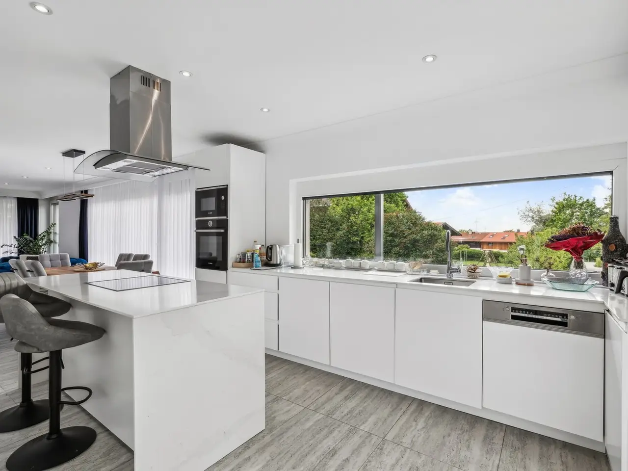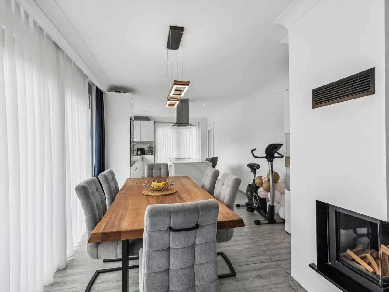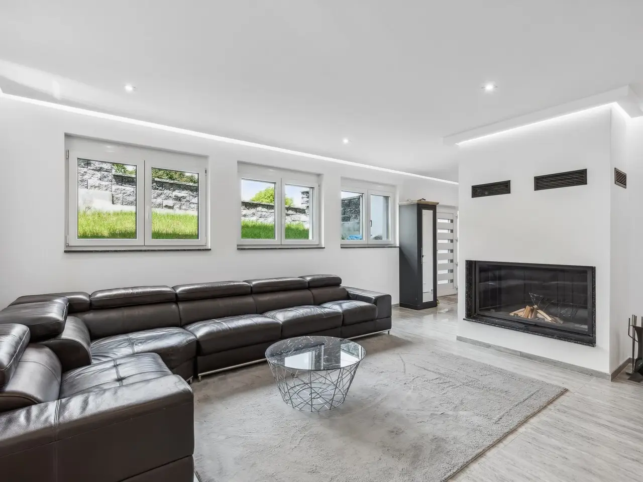 This modern residential building, which was just in 2021, is located in an absolutely quiet and sunny location, not far from Holzkirchen and Lake Tegernsee, on a dead end street. In many ways, it is an ideal place to live for families with children. A good infrastructure enables comfortable living in a rural environment with ideal transport links to Munich and Holzkirchen. The approx. 92 m² granny flat can also be used separately thanks to a separate entrance, making the house a two-family house. The home office theme can be ideally implemented here. A solid brick construction (36.5 cm) in combination with triple glazing and geothermal heating make the house a modern residential building in terms of energy too. The high-quality equipment offers, for example, an open fireplace in both the family house and the granny flat for cozy warmth in cozy hours at home. A pleasant comfort feature is the access to the house through the garage, not only in winter, but also when it rains. The owner family has to move for professional reasons and, with a heavy heart, is parting with the location and the house.