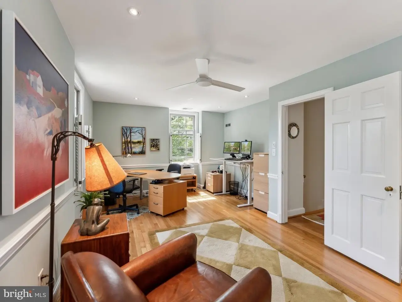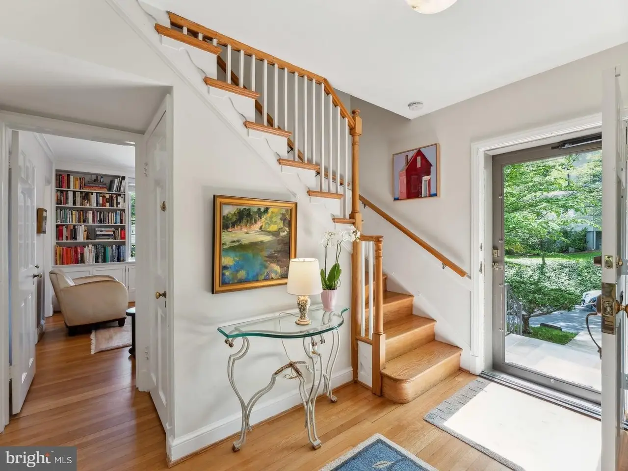 Nestled in the heart of picturesque Barnaby Woods, just steps from a tranquil Rock Creek Park tributary, this gorgeous 1939 Dutch Colonial perfectly blends timeless charm with modern comfort. Set on a quiet, tree-lined street, the home welcomes you with classic curb appeal and thoughtful updates throughout. Step inside the inviting entry foyer with coat closet and discover a spacious living room featuring a wood-burning fireplace and access to a serene rear screened porch, an ideal spot for morning coffee or evening relaxation. The dining area opens seamlessly to a chef's kitchen boasting custom walnut cabinetry, Brazilian quartzite countertops, a suite of stainless steel KitchenAid appliances, and a casual counter for two. A den or home office with powder room complete the main level. Upstairs, find three generous bedrooms and two full baths, including a renovated primary bath en suite with modern finishes. Pull-down attic stairs provide easy access to additional storage. The walk-out lower level offers a recreation room with a second fireplace, laundry area, storage/utilities, a fourth bedroom, and an additional powder room, perfect for guests or flexible living. Outside, the private rear yard is an oasis of calm with a deck, stone patio, lush lawn, and terraced stone walls. Adding to the home's appeal is the garage-turned-artist studio, featuring cathedral ceilings, abundant natural light, barn doors, and its own heating and cooling system; a dream space for creatives, remote work, or hobbies. A rare find in one of Northwest DC's most sought-after neighborhoods, 6670 32nd Street NW offers timeless architecture, versatile living, and a peaceful setting just moments from parks, shops, and city conveniences.