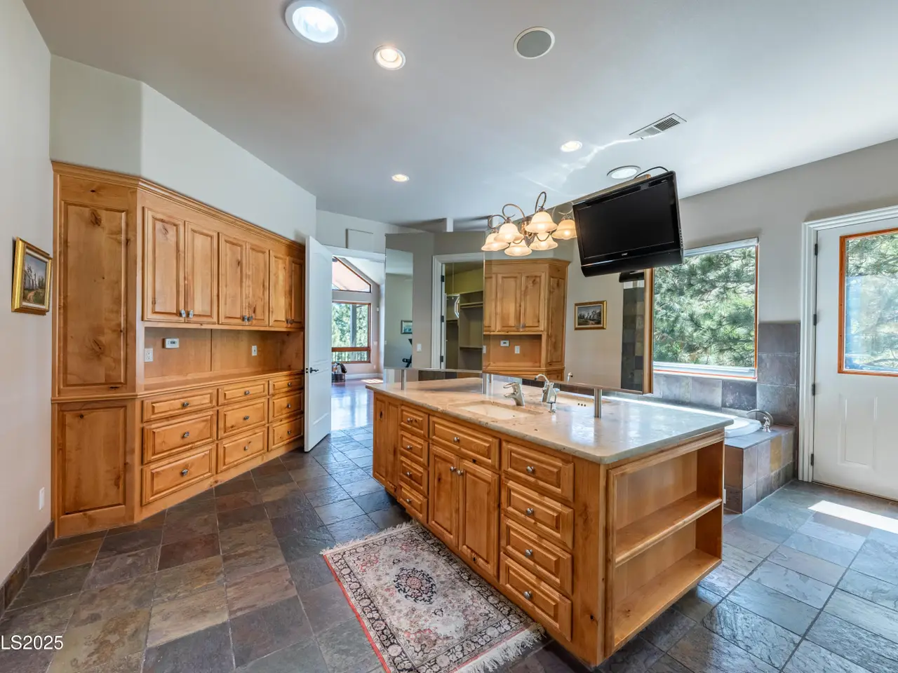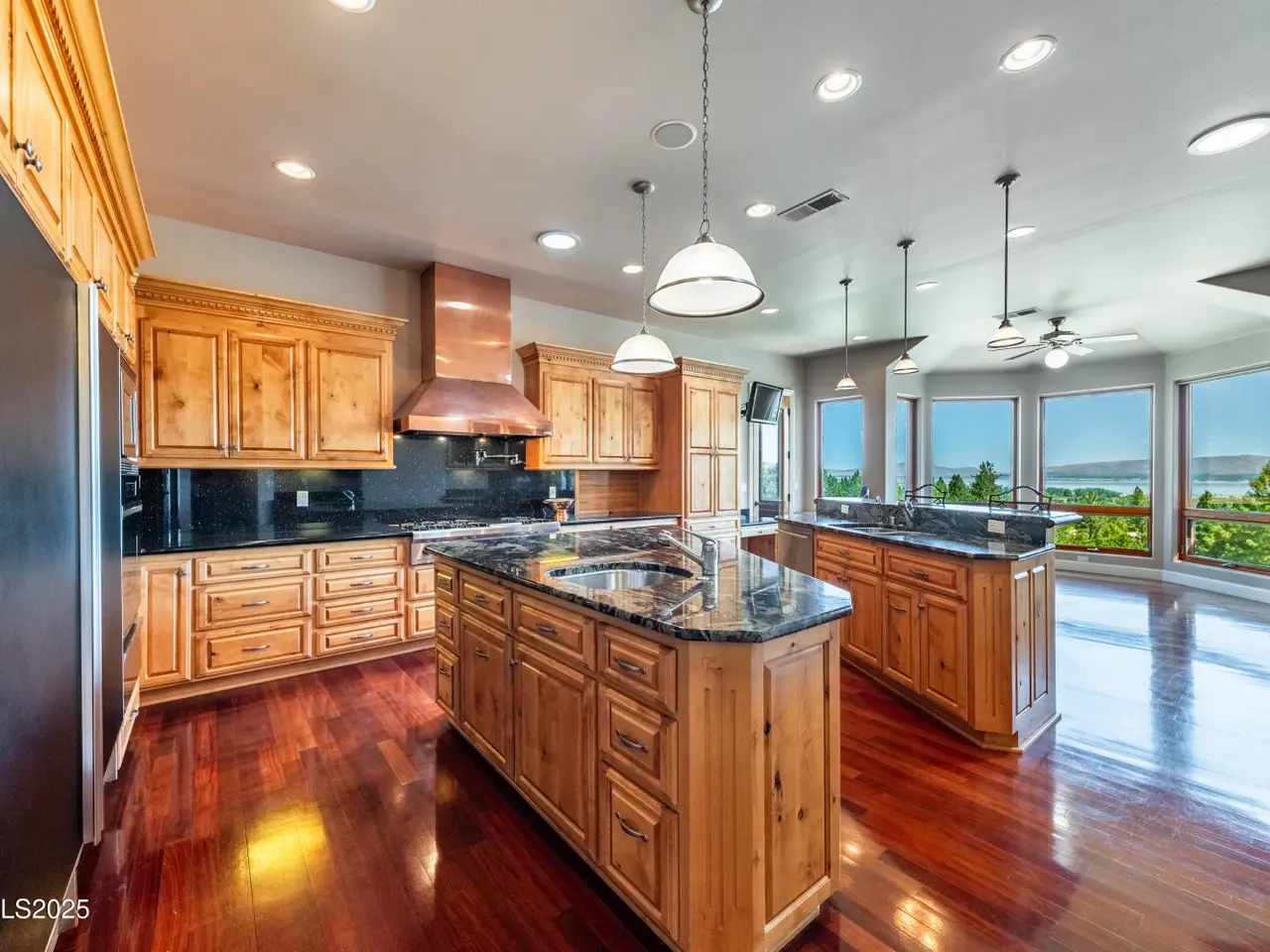 This beautifully situated custom home with views from every room is tucked into the mountain overlooking the majestic Washoe Valley and lake. The eastern property border is a stand of old growth Aspens and a small creek. Easy access to shopping in Carson City and just minutes from Toiyabe Golf Club. A second 5 acre parcel to the north can be sold with home for a total of 10 acres. Knotty Alder cabinets with Brazilian cherry hardwood flooring mixed with travertine and slate set the theme of mountain modern. The kitchen is an entertainers dream with 2 islands, beautiful Knotty Alder cabinets allowing for tons of storage, 3 dishwashers, 2 disposals, a Subzero refrigerator, full freezer, and six burner range with pot filler. The lower level has an in-law quarters with kitchen. The stunning home features a gas fireplaces, back up generator, elevator, central vacuum, 2-75 gallon water heaters, 3 furnaces with electronic air cleaners, and 2 air conditioners upstairs. The laundry room is also a wonderful sewing and craft room. 2 car garage attached to house and a second detached heated garage features a living space with bath, workshop, a pass through RV garage and room for 5 to 6 more cars.