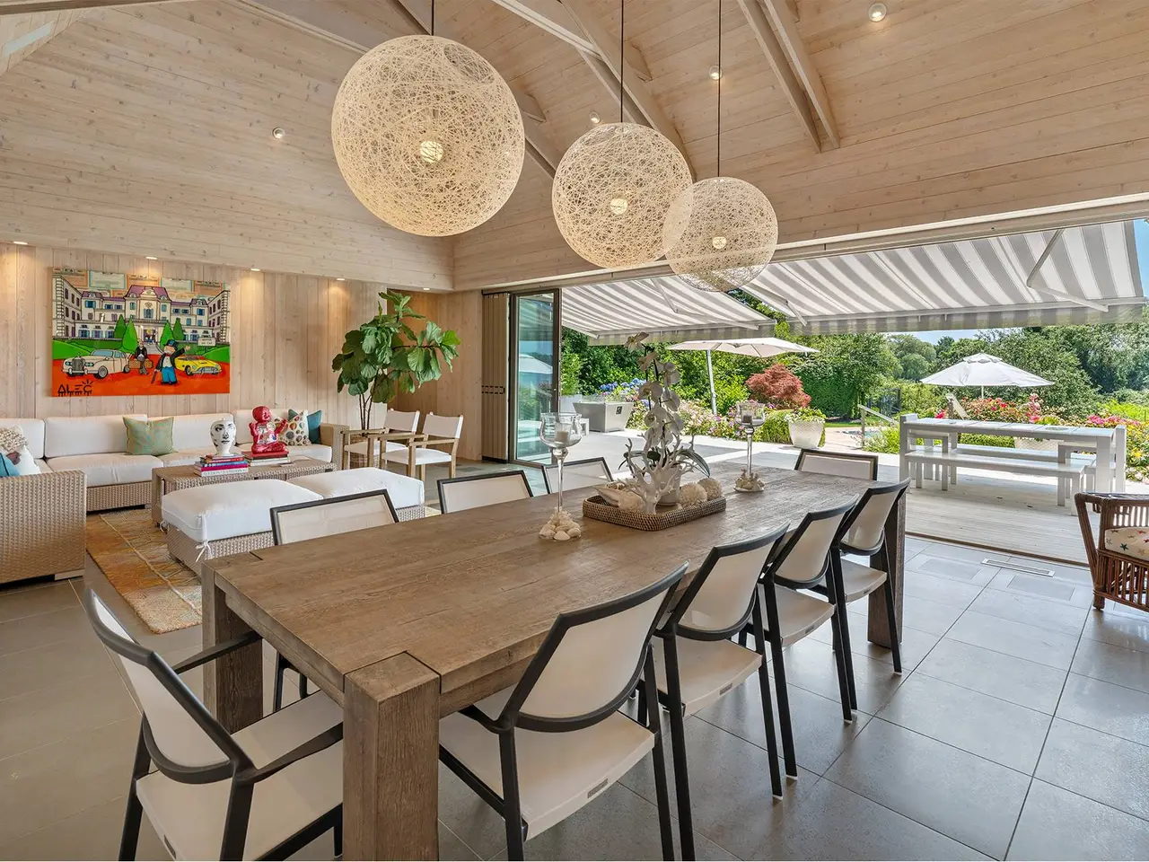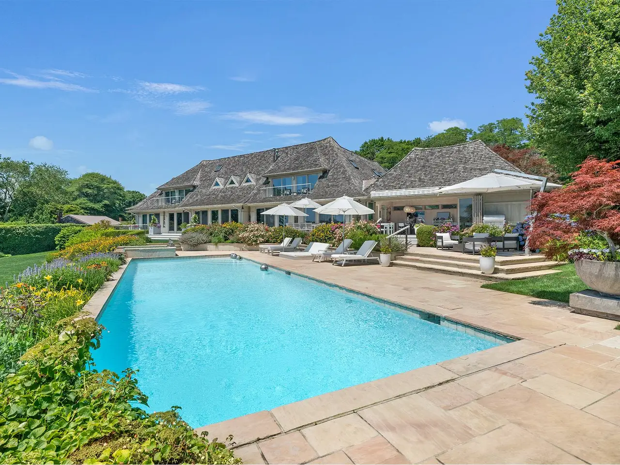 This custom-built estate offers striking panoramic water views across Mill Pond with 700 feet of waterfront on two plus bucolic acres. The 8000 +/- square feet modern beauty consists of six bedrooms, eight bathrooms, custom crafted and light flooded with 30 foot ceilings, and full access overlooking the pond, The indoor/outdoor pavilion completely opens with folding glass walls to the heated Gunite pool and spa. The family room with bar and fireplace are adjacent to the paneled study. A top-of-the-line chef's kitchen and large prep kitchen add to the unique quality of this extraordinary house. The spacious first floor master suite offers dual baths, giant custom closets and a sliding glass door providing private access to the grounds. Additionally, a second master suite and three more en-suite bedrooms with terraces are separated by a gallery on the upper level. The lower level includes a light-filled gym, billiards room, ping pong and gaming room, extensive wine refrigeration and media room with kitchenette, another bedroom and bath for overflow as well. Access all three levels with the elevator. Magnificent grounds offer a mahogany deck and fire pit, all perfect for entertaining while enjoying the spectacular water views. Mature flowering gardens lead to the water's edge and private dock. Additional features include an elevator servicing all three levels, and a two-car garage. From this extraordinary estate, enjoy the year-round Hamptons sunsets. Listing ID: 736995