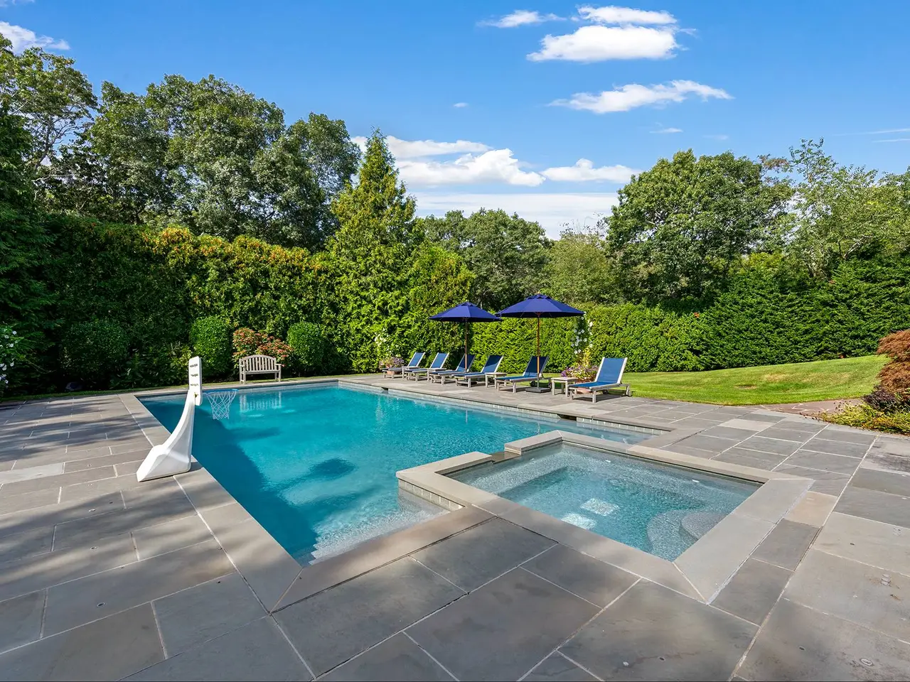 Gated beautiful traditional in Water Mill, with six bedrooms and 6.5 baths. The primary bedroom is huge, all other bedrooms ensuite. All amenities are top of the line, with an outstanding kitchen, formal dining room, finished lower level and two-car garage. The 20x40 pool and spa are surrounded by a massive blue stone patio. The finishing touch is the professional landscaping surrounding the entire property. This is an elegant package.