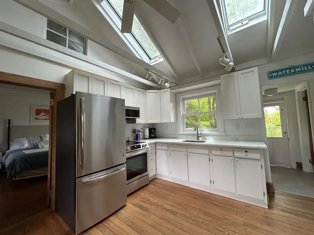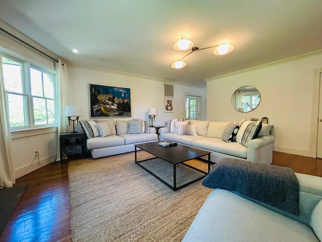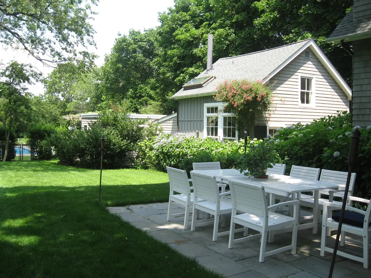 Enjoy your summer in this fabulous Water Mill compound close to the village and beaches. The two-story main house features a spacious eat-in kitchen, separate dining room, cozy living room with fireplace and separate sitting area. There is a junior master bedroom suite on the first floor for convenience. In addition to a master bedroom suite on the second floor, there are three more generous bedrooms and two baths upstairs. The country cottage on the property boasts a comfortable living room, full kitchen with breakfast area, full bath, and bedroom with a king bed. The cottage has its own private yard with patio. The compound also includes a separate studio/pool house with a living room, half bath, kitchenette, and sun room. The property sits amidst lush landscaping with ponds and heated pool.