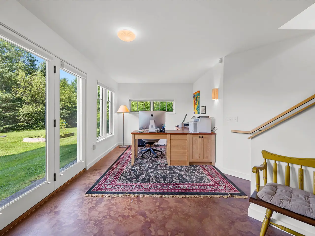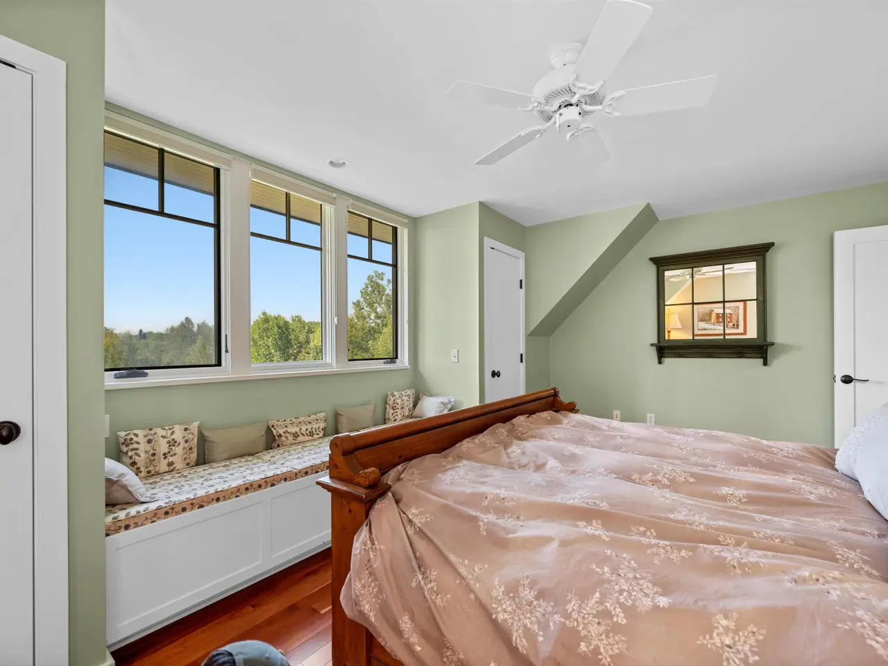 This architecturally designed contemporary farmhouse sits on 13.4± acres and combines beautiful craftsmanship with attention to detail, including beautiful views from every window. Situated convenient to Burlington, Stowe and The Mad River Valley, and minutes from Waterbury Village (which in 2024 was featured by The Boston Globe as “the best little foodie town in New England”), this home is located on a secluded private road with mountain views, and a serene environment. The 1st floor has an elegant entry foyer, living room, dining room, primary bedroom suite, office/bedroom, mudroom replete with a dog shower, powder room, and gourmet kitchen with Sub Zero, Wolf, and Cove appliances, custom made cherry cabinets, Vermont Verde marble countertops and a separate breakfast nook and den. The 2nd floor includes three bedrooms, two full baths, and spectacular views of both the Mansfield and Worcester mountain ranges. The finished basement has a custom-built office, full bath, and a workout room. Both the basement and 1st floors have radiant heated floors. Outdoor features include extensive landscaping with perennial gardens, stone patios, a hot tub, firepit, swimming pond and a post and beam constructed, standalone tree/playhouse. Energy and heating features include solar panels and heat pumps that provide warmth in the winter and air conditioning during the summer months. This home has it all.