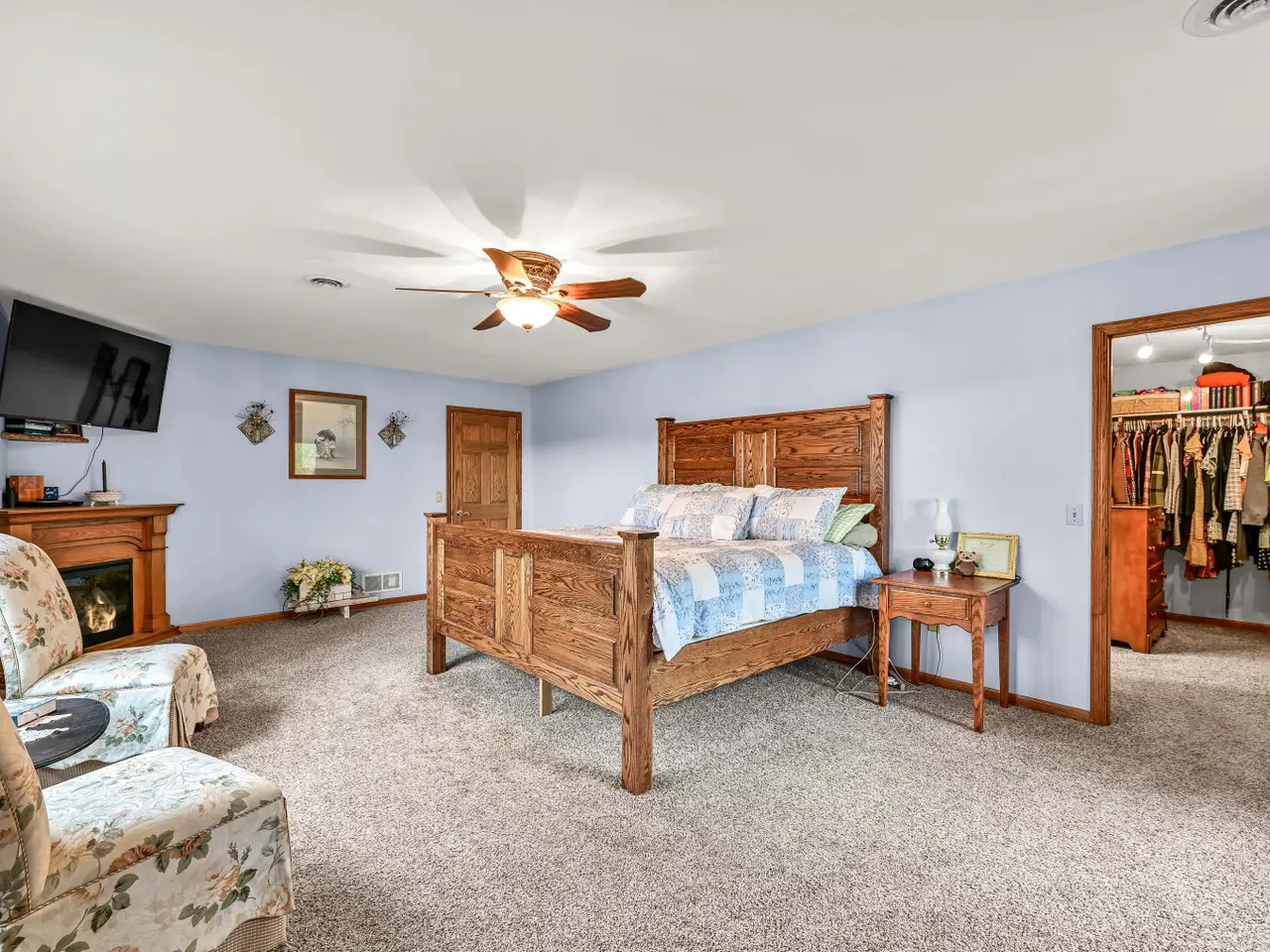 Experience breathtaking sunsets from this stunning, west-facing triple lot boasting 150 feet of prime Fox River frontage. With direct access to Tichigan Lake and over 1,100 acres of interconnected waterways, this property offers the ultimate waterfront lifestyle. This spacious 4 bedroom, 3.5 bath lake home features spectacular river views, two garages, and a rare boathouse. Enjoy fishing or boating from one of your two private piers! Inside, you'll find generous living spaces including a large kitchen with granite countertops and a center island, a great room with a corner gas fireplace, and a main-floor office and bedroom. Upstairs, discover three well-sized bedrooms plus a versatile loft area. The lower level provides a huge recreation room, additional bathroom, and a charming 3-season room - perfect for relaxing or entertaining year-round.