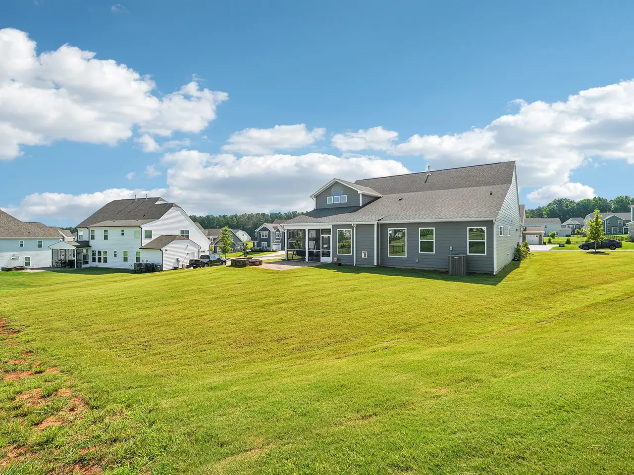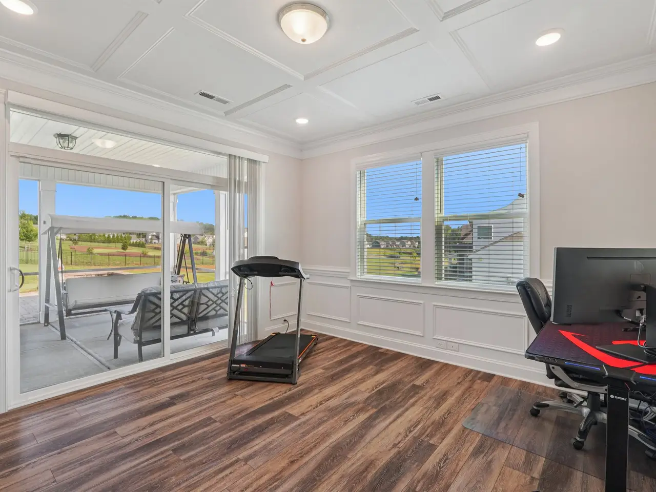 Freshly Priced! Beautiful east-facing, ranch-style home with over 2,600 SF on the main floor plus 500+ SF upstairs. The main level showcases a luxurious primary suite with spa-like shower, tray ceiling, custom closets, and quartz countertops (featured throughout the kitchen and all baths). Two additional bedrooms and full baths, a formal dining room, and a chef's kitchen with large quartz island, walk-in pantry, and drop zone complete the main level.Enjoy casual dining and gatherings in the spacious family room with gas fireplace. A private office offers built-in cabinetry, French doors to the family room, and sliding doors to the screened porch. Abundant natural light fills every space.Upstairs, a versatile loft with built-in cabinets, plus a 4th bedroom and full bath, create the perfect flex space. Outdoor living is ideal with a screened porch, paved patio, firepit, and a large, flat backyard just waiting to make this your own.Immaculately maintained and move-in ready?this home easily accommodates multi-generational living!