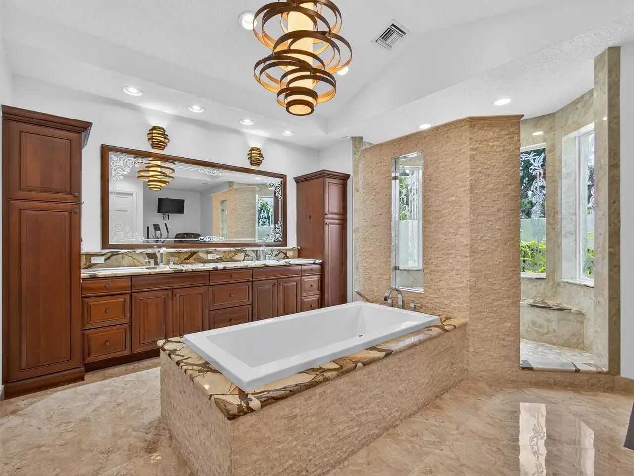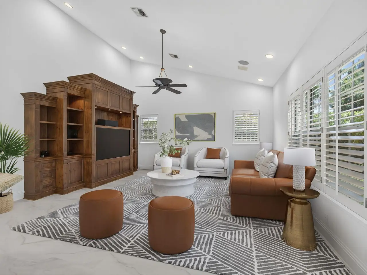 Welcome to this beautifully upgraded and impeccably maintained home in the heart of Wellington, with low HOA fees, and top-tier features throughout. Just a few miles from WEF and Global Dressage, this meticulously maintained home boasts a durable metal roof (installed in 2016), a brand-new 2024 AC unit, vent system, and air handler for the master suite & office, plus a second AC unit with a 2024 air handler and 2019 outside unit. Enjoy peace of mind with full hurricane protection including impact windows on the front & accordion shutters on the back, 2 hurricane break-out panels on the screen-enclosed pool patio, and a whole-house automatic Generac generator powered by a 500-gallon underground propane tank,