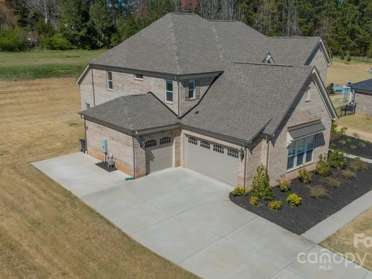 Looking for a magnificent 5 BR, 3.5 Bath modern home on over an acre surrounded by woods? Well look no further! This stunning & virtually brand new 2 story brick home w./ 3 car garage is situated on one of the largest lots in Cavesson (1.3 acres!) & is exactly what youre looking for! The beautifully appointed chefs dream kitchen features high-end appliances, quartz counters, designer tile backsplash, gas range, custom cabinets, butlers/walk-in pantry, oversized island & flows seamlessly into an open floor plan ideal for entertaining. Main level primary suite offers a luxurious shower & garden tub w./ spacious walk-in closet & exquisite finishes. Covered back terrace & beautifully prefinished oak HWs in living areas. Coffered ceiling in LR w/ fireplace sets a cozy tone. Spacious upstairs: 4 BRs w/ 2 full baths, game/bonus, loft & media room! Located in the sought-after Weddington HS district. Close to shopping/dining & easy access to Providence Rd, 485 & Hwy 74. A rare gem!