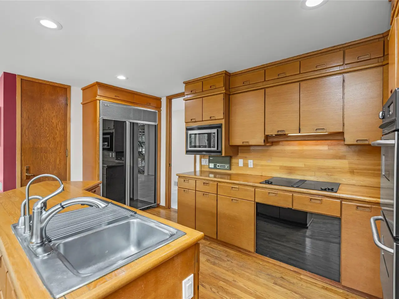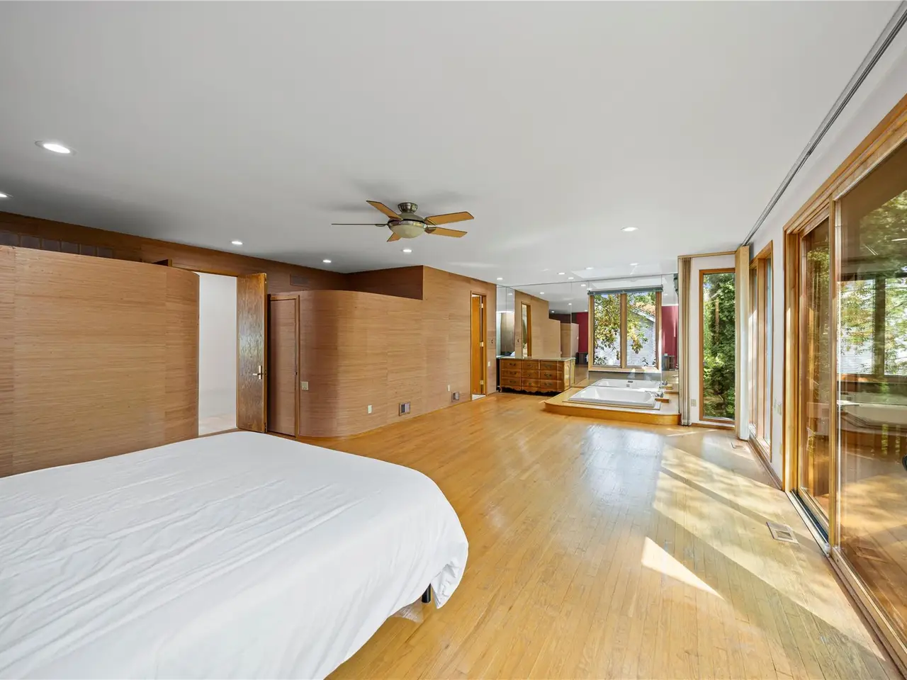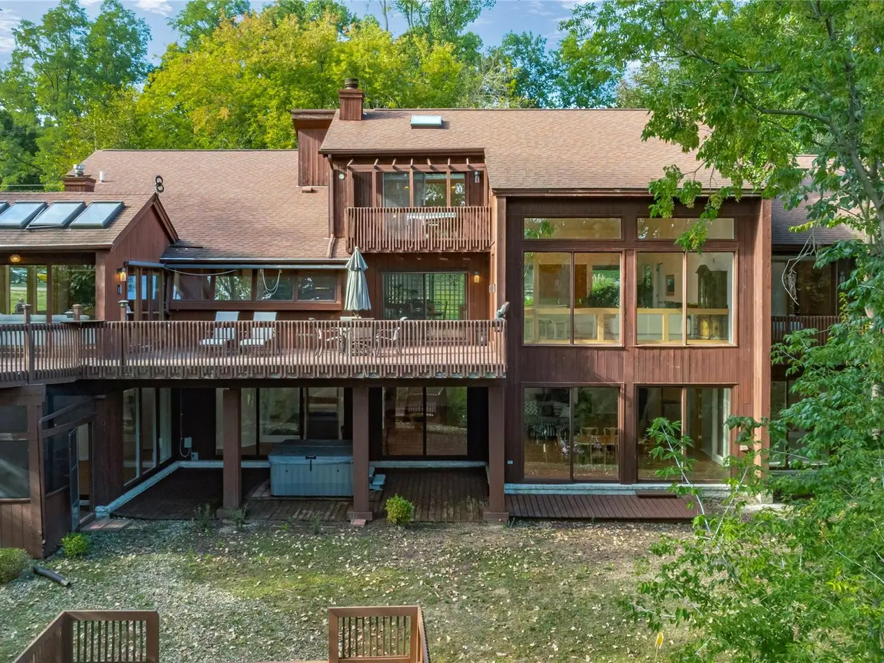 Welcome to this exquisite ranch estate nestled in the heart of West Bloomfield, meticulously designed and crafted by renowned architect David Lubin and being offered by its original owners. This stunning residence seamlessly blends sophisticated architectural elements with luxurious water-front living. Step inside to soaring ceilings in the expansive great room, adorned with floor-to-ceiling windows that showcase breathtaking water vistas. The gas fireplace and elegant travertine flooring create a warm, inviting ambiance perfect for entertaining or relaxing. The gourmet kitchen is a chef’s dream, featuring high-end appliances, abundant cabinet and counter space, a generous walk-in pantry, and an oversized nook/ living room overlooking the tranquil water—ideal for casual dining or a morning coffee. A striking spiral staircase ascends to a versatile loft area, complete with its own gas fireplace, balcony overlooking the water, and panoramic views of the entire first floor. The primary suite offers a private retreat with natural hardwood floors, soaring ceilings, and a private balcony overlooking the water. His and her walk-in closets lead to a luxurious private ensuite. The second main-level bedroom boasts a large walk-in closet, a private ensuite, and versatile space suitable for an office or lounge area. The finished walk-out lower level adds approximately 3,400 square feet of versatile living space, featuring two additional bedrooms, a full bathroom, and a half bath. A spacious entertaining area with floor-to-ceiling windows offers stunning views of the backyard and water, providing an ideal space for relaxation or entertaining. Located in the vibrant West Bloomfield community, this exceptional home is served by the award-winning Bloomfield Hills Schools. Experience luxurious waterfront living in this architecturally and functionally stunning estate.