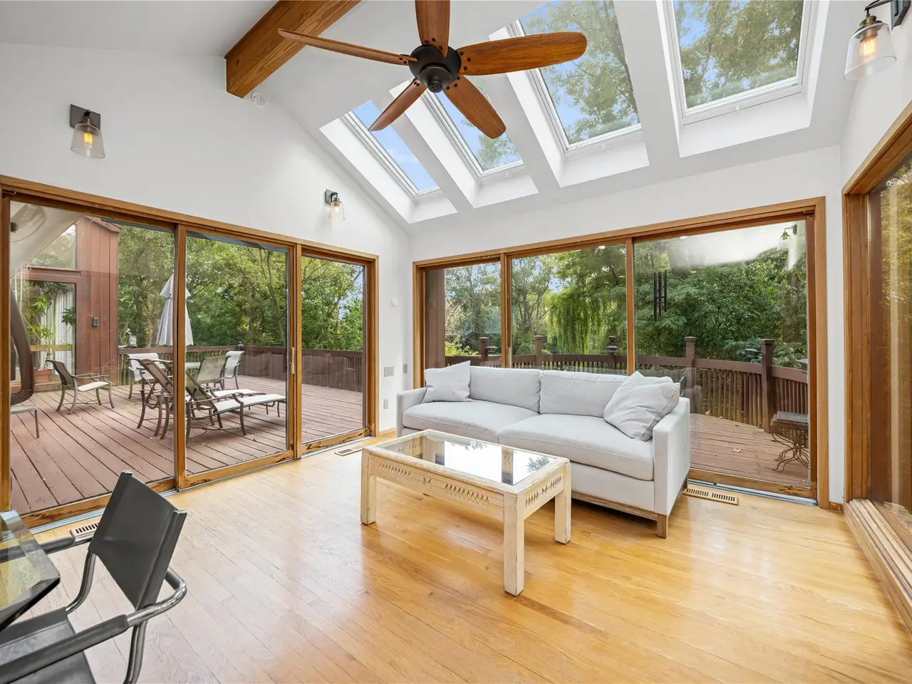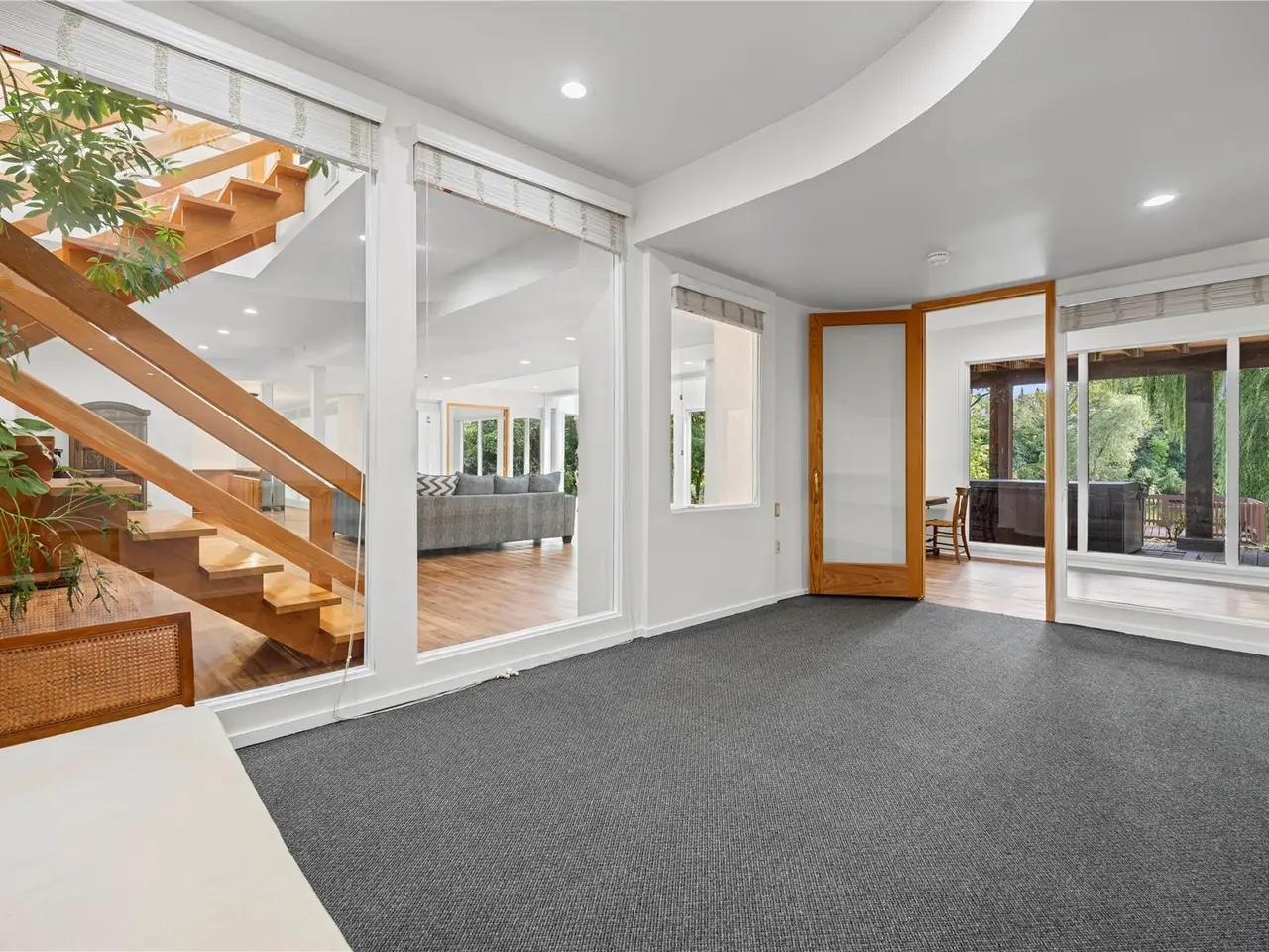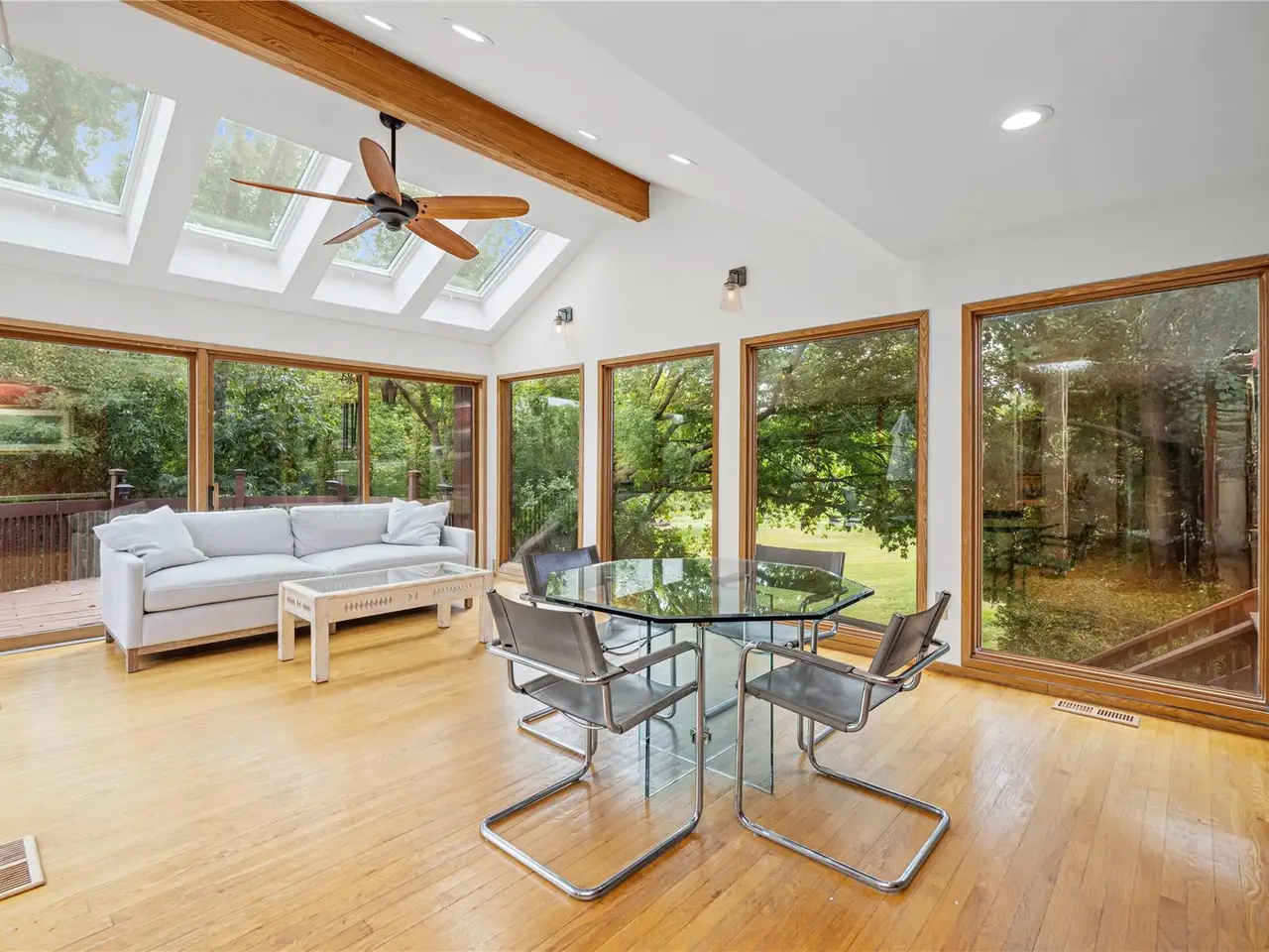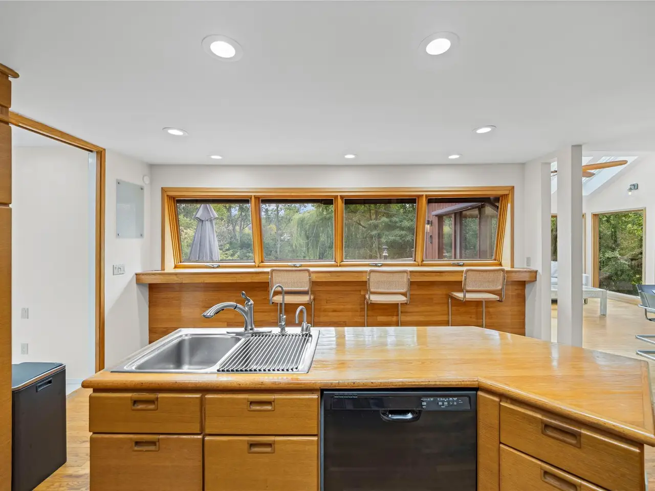 Welcome to this exquisite ranch estate nestled in the heart of West Bloomfield, meticulously designed and crafted by renowned architect David Lubin and being offered by its original owners. This stunning residence seamlessly blends sophisticated architectural elements with luxurious water-front living. Step inside to soaring ceilings in the expansive great room, adorned with floor-to-ceiling windows that showcase breathtaking water vistas. The gas fireplace and elegant travertine flooring create a warm, inviting ambiance perfect for entertaining or relaxing. The gourmet kitchen is a chef’s dream, featuring high-end appliances, abundant cabinet and counter space, a generous walk-in pantry, and an oversized nook/ living room overlooking the tranquil water—ideal for casual dining or a morning coffee. A striking spiral staircase ascends to a versatile loft area, complete with its own gas fireplace, balcony overlooking the water, and panoramic views of the entire first floor. The primary suite offers a private retreat with natural hardwood floors, soaring ceilings, and a private balcony overlooking the water. His and her walk-in closets lead to a luxurious private ensuite. The second main-level bedroom boasts a large walk-in closet, a private ensuite, and versatile space suitable for an office or lounge area. The finished walk-out lower level adds approximately 3,400 square feet of versatile living space, featuring two additional bedrooms, a full bathroom, and a half bath. A spacious entertaining area with floor-to-ceiling windows offers stunning views of the backyard and water, providing an ideal space for relaxation or entertaining. Located in the vibrant West Bloomfield community, this exceptional home is served by the award-winning Bloomfield Hills Schools. Experience luxurious waterfront living in this architecturally and functionally stunning estate.