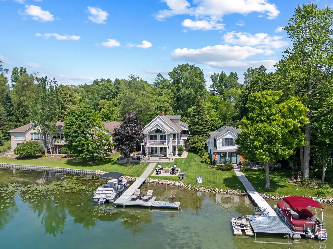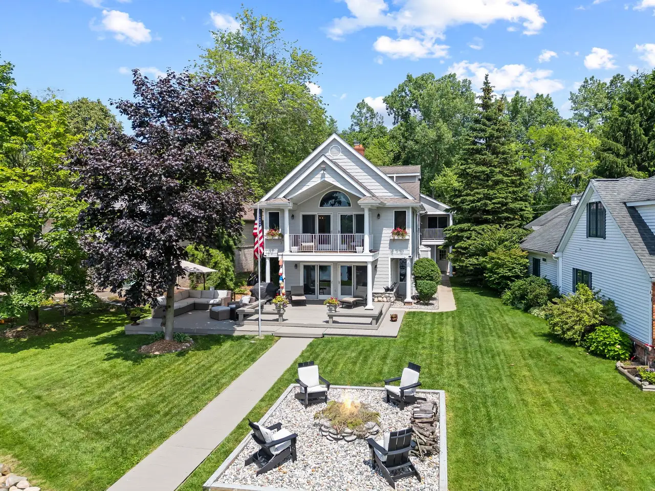 Lakefront living with 65’ of frontage on Green Lake. Take your pontoon out for relaxing, sunset cruises on the electric motor-only lake. A welcoming entry opens to bright living spaces that flow effortlessly outdoors. Glass front door flanked by transom windows. White marble kitchen, stacked stone backsplash, Shaw’s farmhouse sink, six-burner Wolf gas cooktop, hood fan, Kitchen-Aid double oven, GE refrigerator, Whirlpool dishwasher & beverage refrigerator. The open-concept floor plan connects the kitchen to the great room. Natural fireplace. Side-by-side Anderson doorwalls open to the deck for seamless indoor-outdoor entertaining. Hardwood floors throughout the entire home. Flexible floor plan offering an entry-level library/den, which can double as a guest suite as it is adjacent to a full bathroom with a rain shower & glass door. Wake up each morning to panoramic lake views from your primary suite balcony, a perfect setting for your morning coffee! Vaulted ceiling, walk-in closet & built-ins. Two additional bedrooms, one with a loft kids will love! En-suite bedroom with private balcony overlooking the lake. Second-floor bonus room could be used as a secondary primary, family room, exercise room or office, with a full bathroom. Anderson windows capture water views from nearly every room. Epoxy garage floor, additional space for workshop & storage. Extra-wide concrete driveway for guest parking. Surrounded by lush landscaping. Arborvitae lined side walkway to the backyard. Stunning western sunset views. Large lakeside deck, with built-in benches, is the perfect setting for evening cocktails with friends & family. Enjoy conversation & s'mores around the stone fire pit. Rock seawall. L-shaped dock with room for sun loungers, wonderful sandy shoreline. Green Lake Association offers year-round activities for the entire family, with 4th of July fireworks. Very quiet & peaceful setting, Willow Pond Nature Preserve across the street. This home delivers on the lake lifestyle!
