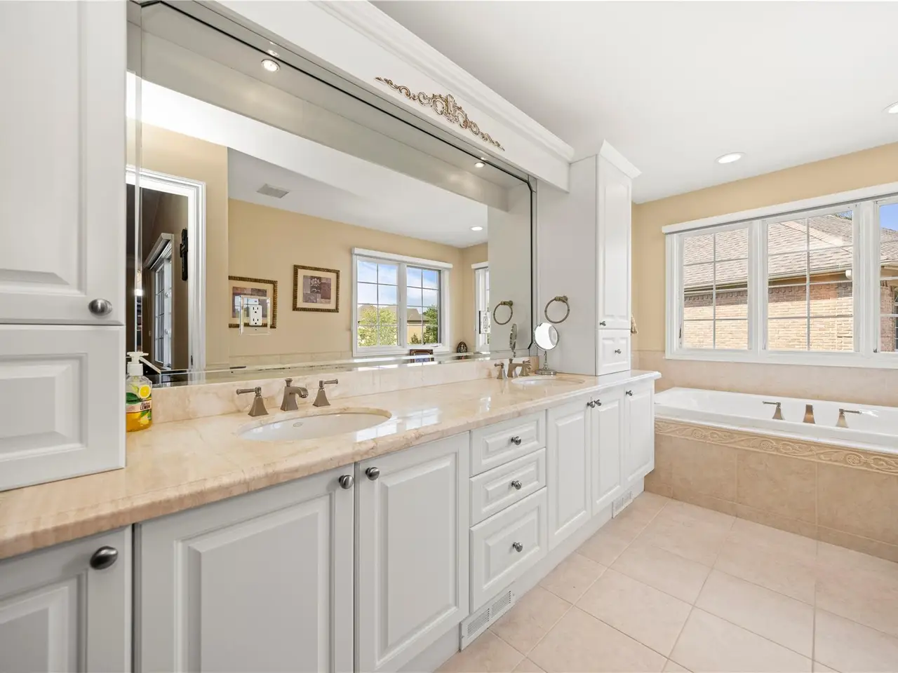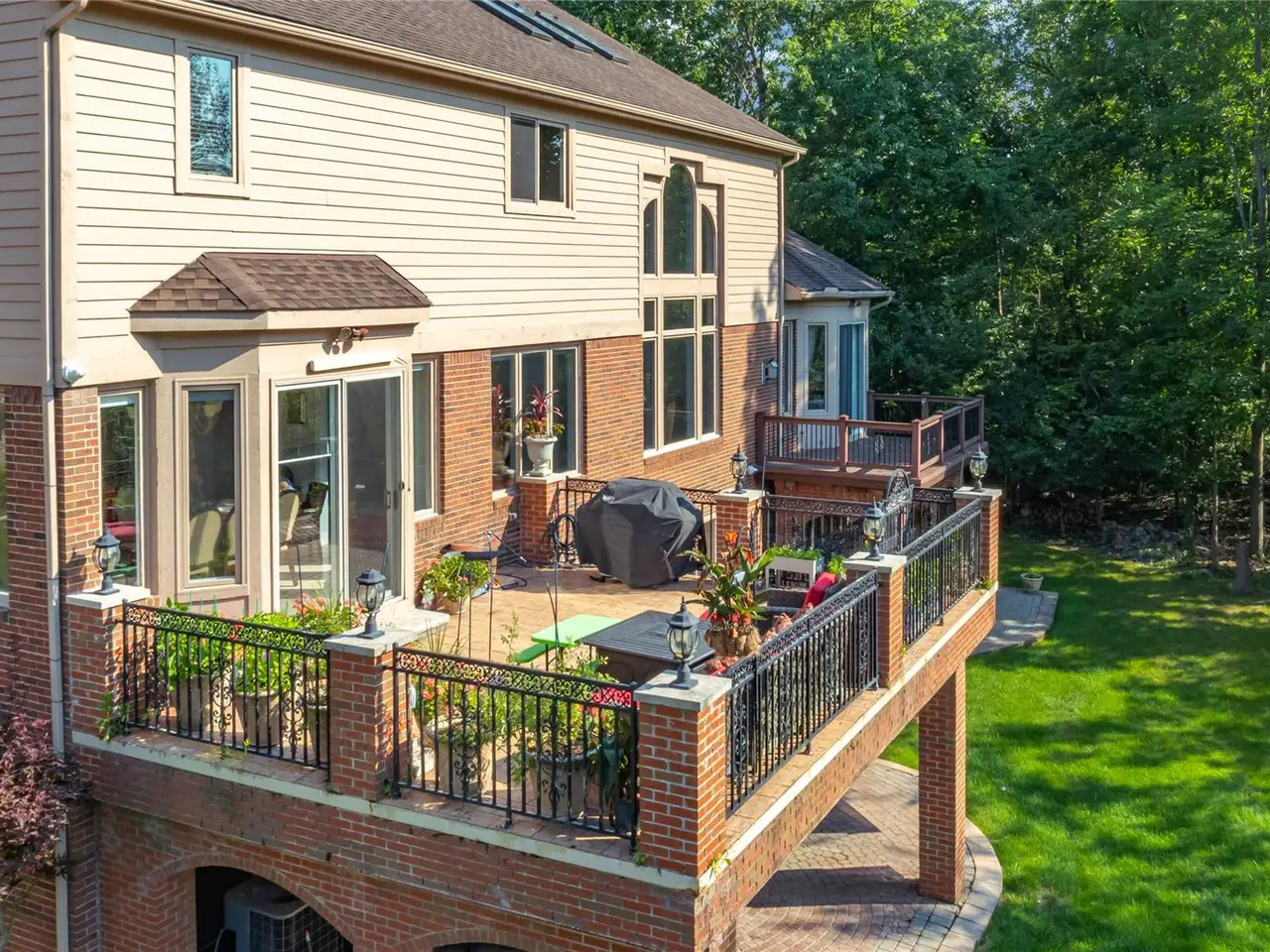 Welcome to this exquisite 4-bedroom, 3.2-bath estate featuring a coveted first-floor primary suite with a private deck overlooking beautiful woodlands. Nestled in a quiet cul-de-sac with minimal traffic, this home offers a 3-car heated side-entry garage, circular driveway, and a spacious unfinished walk-out basement with 10-foot ceilings, already plumbed for a bathroom. The gourmet kitchen is a chef’s delight with granite countertops, custom cabinetry, and premium finishes. Elegant crown molding, soaring ceilings, and generously sized rooms add a touch of grandeur, while a large bonus room with skylights above the garage provides the perfect space for a gym, office, playroom, or more. Enjoy peace of mind with a full-house generator and surveillance cameras surrounding the property. The beautifully landscaped grounds create an ideal setting for outdoor entertaining or peaceful relaxation. Conveniently located near expressways, fine dining, shopping, and more this home blends luxury, comfort, and convenience in one remarkable package.
