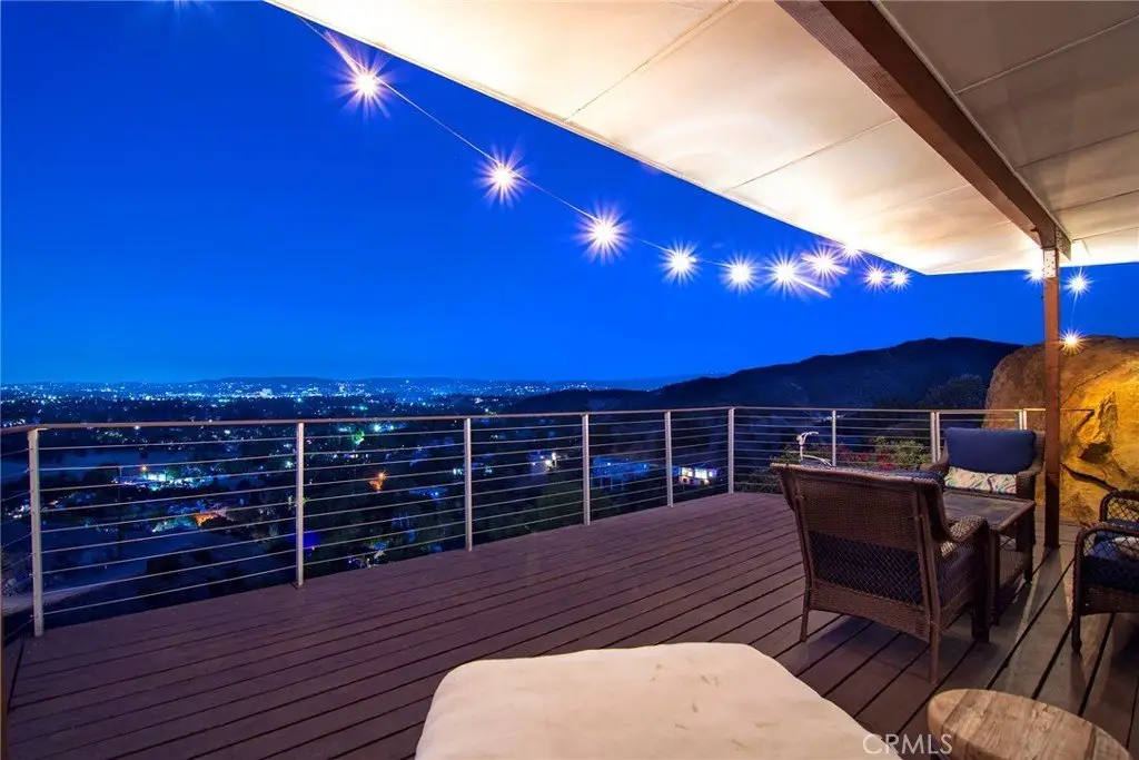 Hollywood Hills charm meets tranquil canyon living in West Hills. This one-of-a-kind Spanish adobe home is perched atop a sandstone ridge, offering unobstructed 360-degree views of the entire San Fernando Valley. Inside, you’ll find 3 bedrooms and 3 full baths across an open-concept floor plan featuring vaulted ceilings with exposed wood beams, creating a warm and airy ambiance. Enjoy seamless indoor-outdoor living with expansive sliding glass doors that open to a wraparound deck, sun deck, and a stylishly integrated above-ground pool with custom wood decking—perfect for relaxing, entertaining, or cooling off beneath the trees. The charming yard and sitting areas offer peaceful spaces to unwind while soaking in canyon and valley views. Modern upgrades include solar panels, a 200-amp electrical panel, landscape lighting, and a dedicated electrical panel by the pool. The property is fully fenced with dense Mangaris wood, and includes two sheds for extra storage, a one-car detached garage with carport, and ample parking. Smart home features include five Ring security cameras, a remote-controlled thermostat, and a WiFi-enabled deadbolt at the front gate, all easily managed from anywhere. Set at the end of a quiet, no-through street, this home offers ultimate privacy, European character, and direct access to incredible hiking trails. Other highlights include a mesh Wi-Fi system indoors and out, majestic oak trees, and the convenience of a main sewer connection (no septic). This rare architectural retreat seamlessly blends character, nature, and modern amenities.