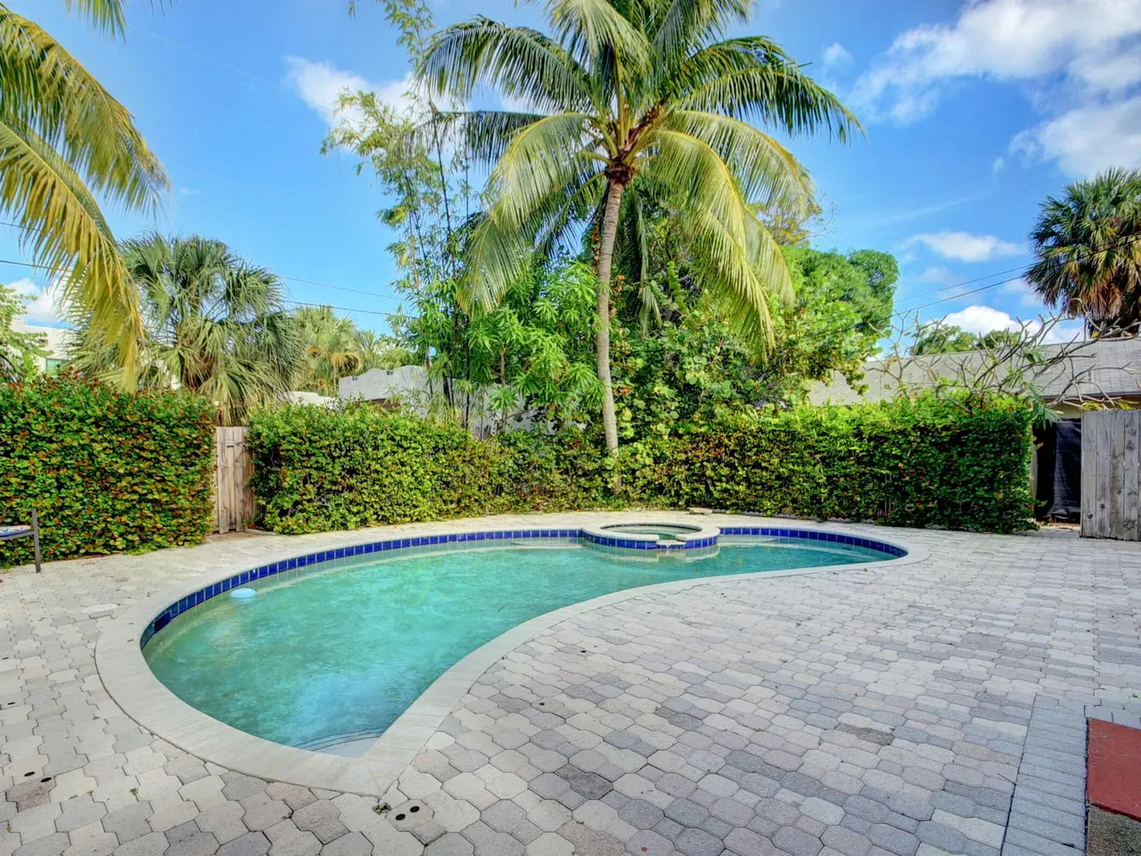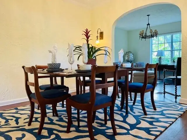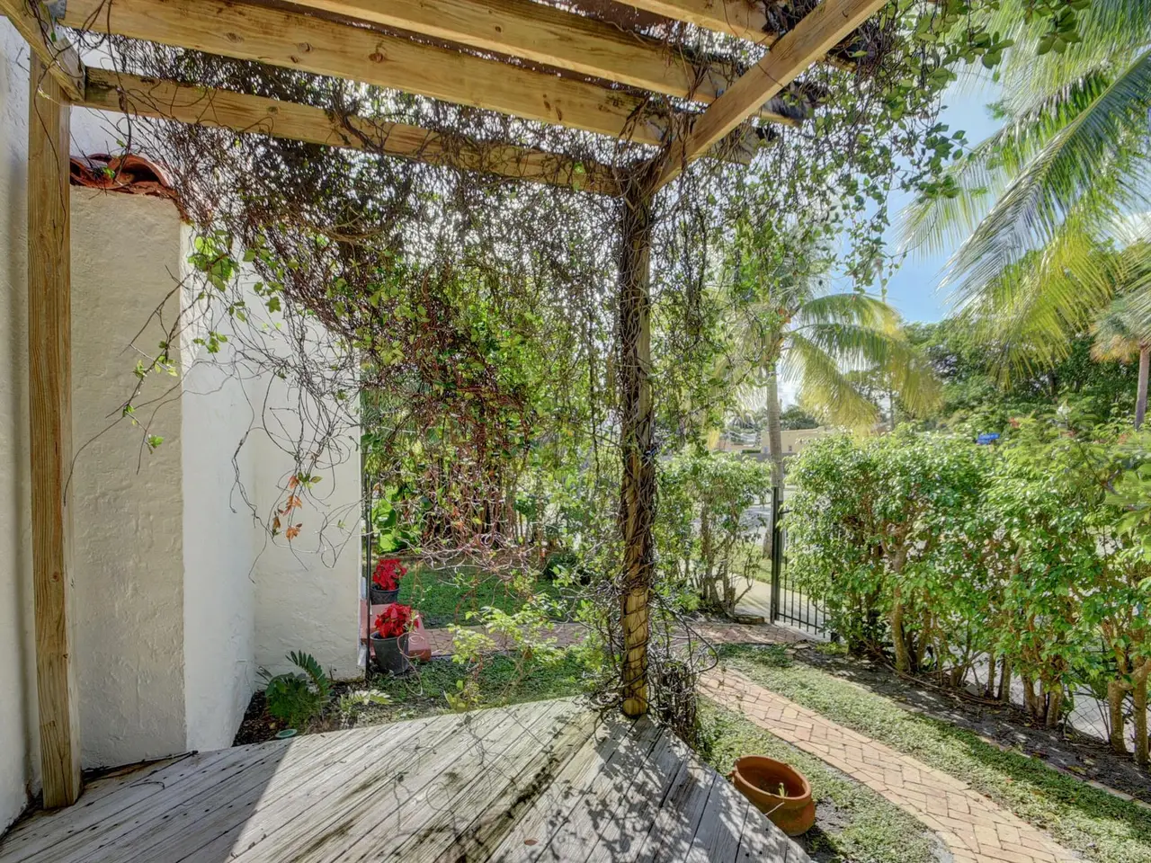 1925 Spanish Mission, hollow tile home built by Hansell Hall, Flamingo Park's premiere builder. Three bedrooms and one bath with SUNROOM & detached 1 car garage. Picture frame hardwood floors in the living/dining/bedrooms & tile in the kitchen/sunroom,/bathroom & laundry room. Kitchen cabinetry w/ seeded glass doors & tile counter tops. Just outside the kitchen is an elevated deck and pergola for private outdoor dining. This home has a wood burning fireplace, many period light fixtures & architectural details throughout. In the backyard there is a large pool and built in spa w/ fenced yard & outside shower. New roof & central air-conditioning in 2022. The detached hollow tile garage, measures 18x10 & is perfect for future expansion & possibilities. COME SEE IT TODAY!