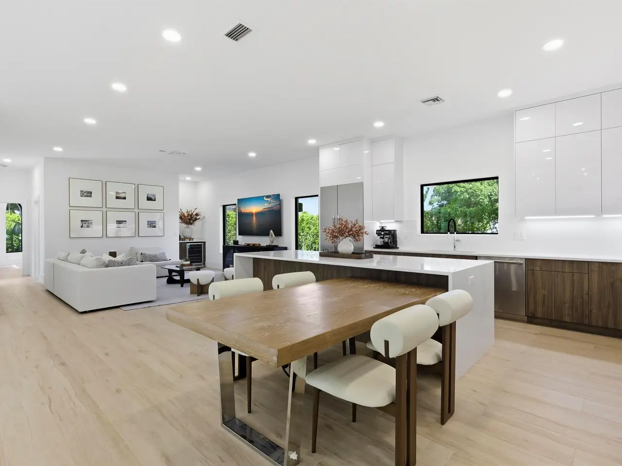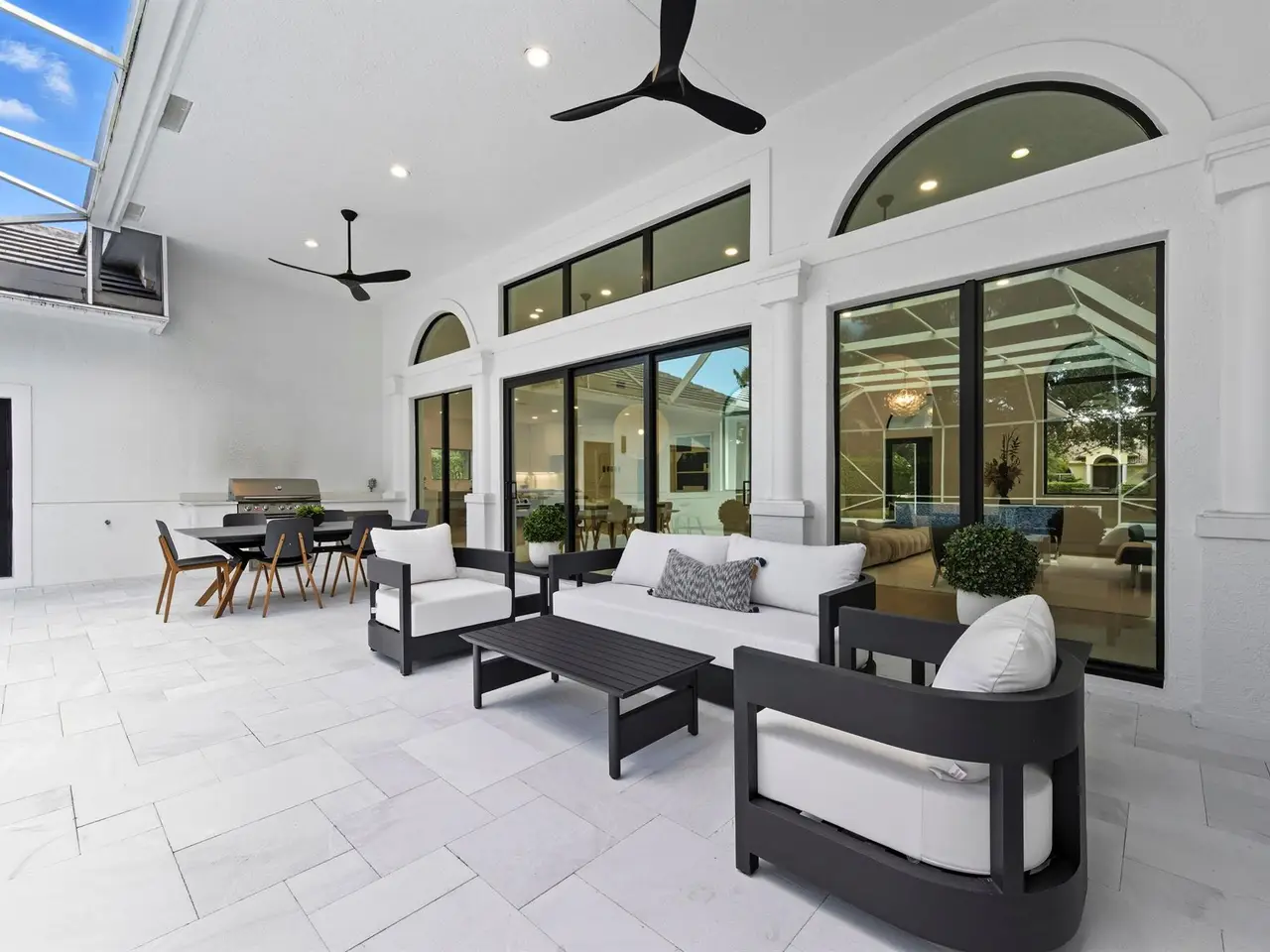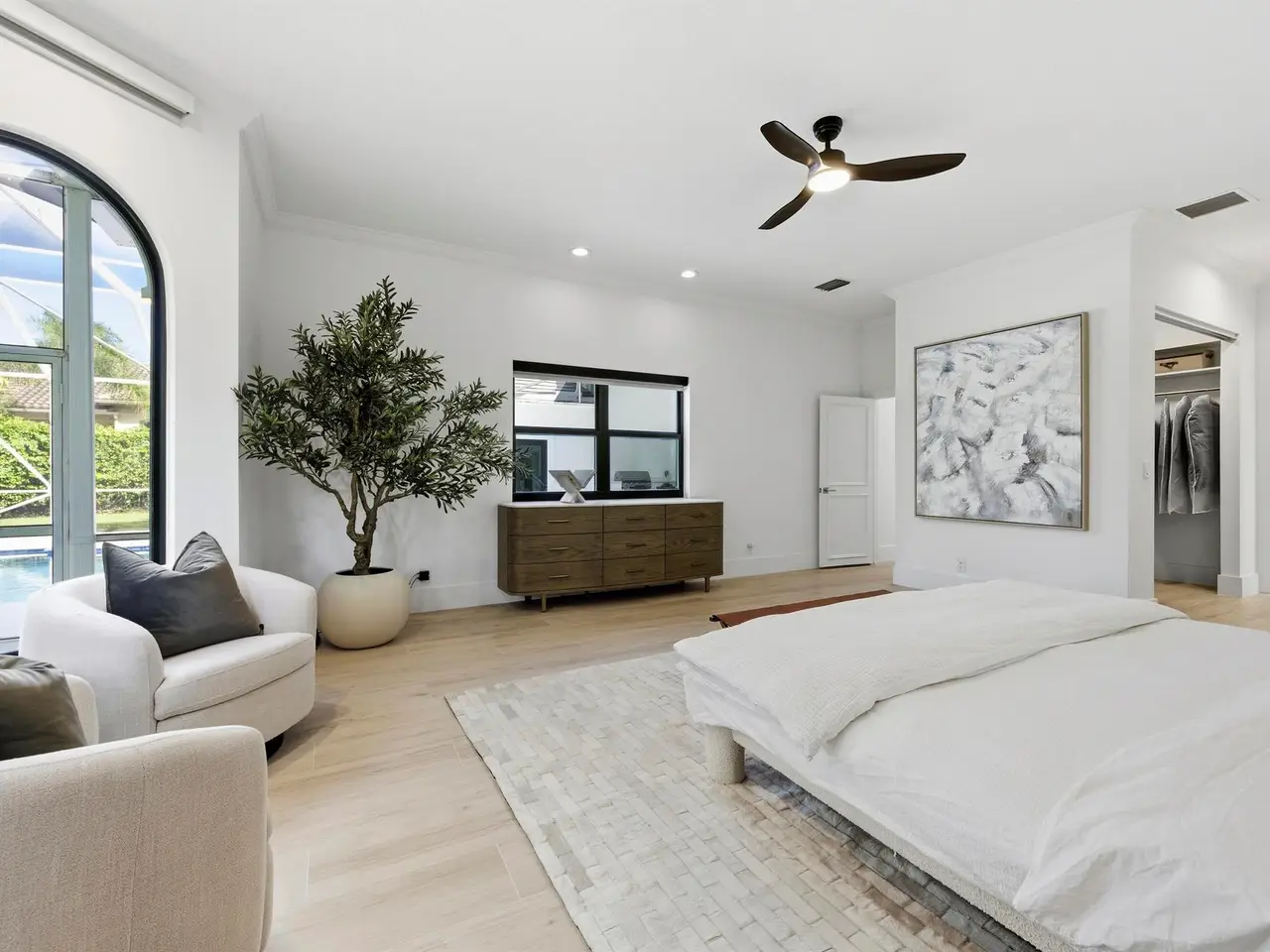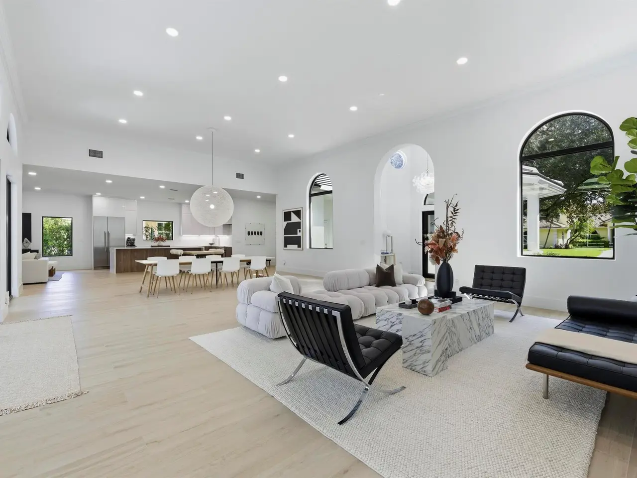 Effortless Modern Luxury in Bear Lakes. Experience the pinnacle of modern design and South Florida living in this fully reimagined one-story residence, nestled on a quiet cul-de-sac within the prestigious gated community of Bear Lakes on Seminole Circle. Meticulously renovated and curated for those who value minimalism, refined comfort, and open-concept living, this 4-bedroom plus flex room (optional 5th bedroom), 4.5-bath home offers 4,505 square feet of luxurious living space designed for both everyday ease and grand entertaining.Step inside through a 15-foot foyer illuminated by a designer chandelier, leading into an expansive great room with 13-foot ceilings and sliders that open to a serene marble courtyard--creating a seamless indoor-outdoor connection.