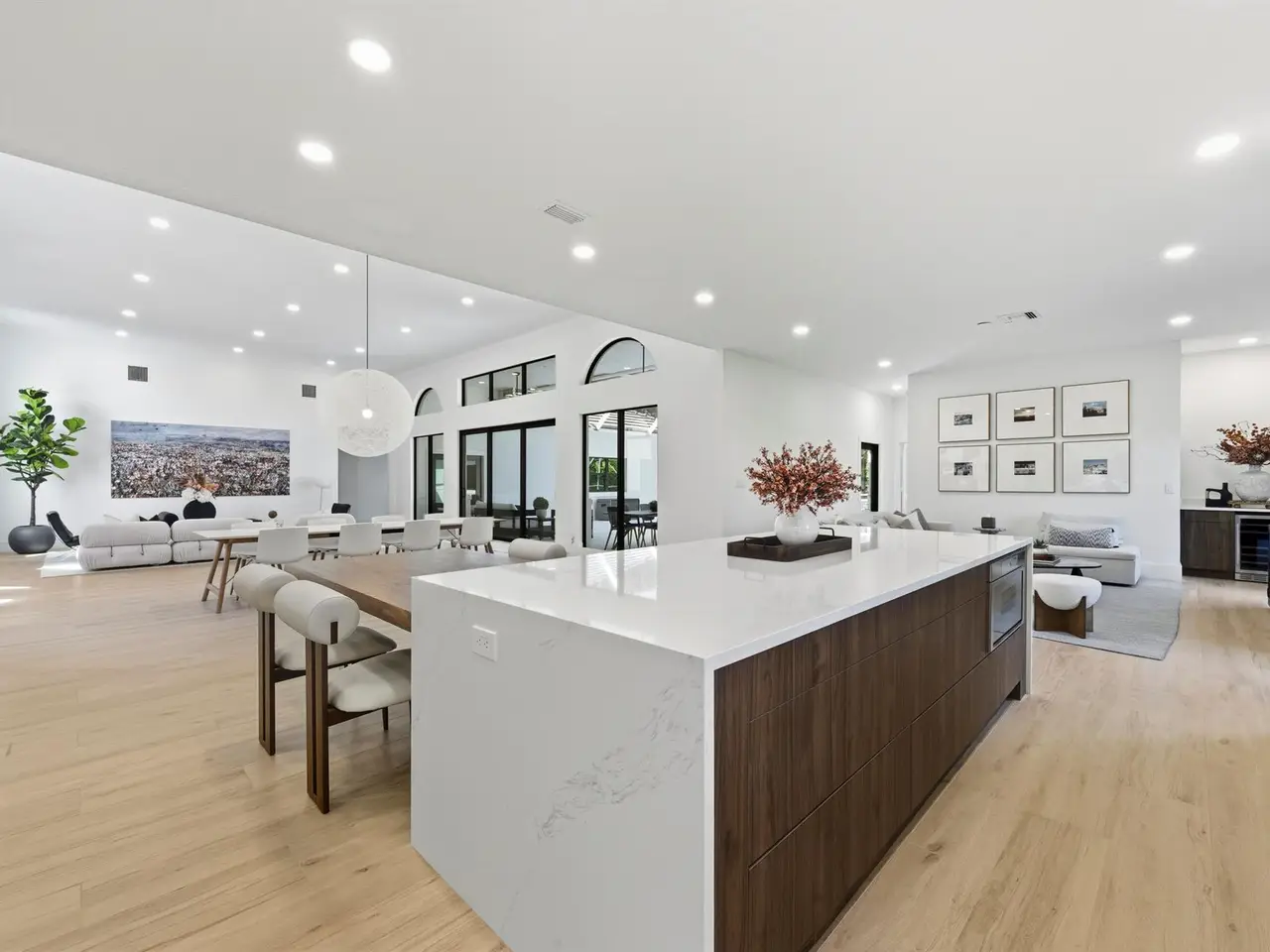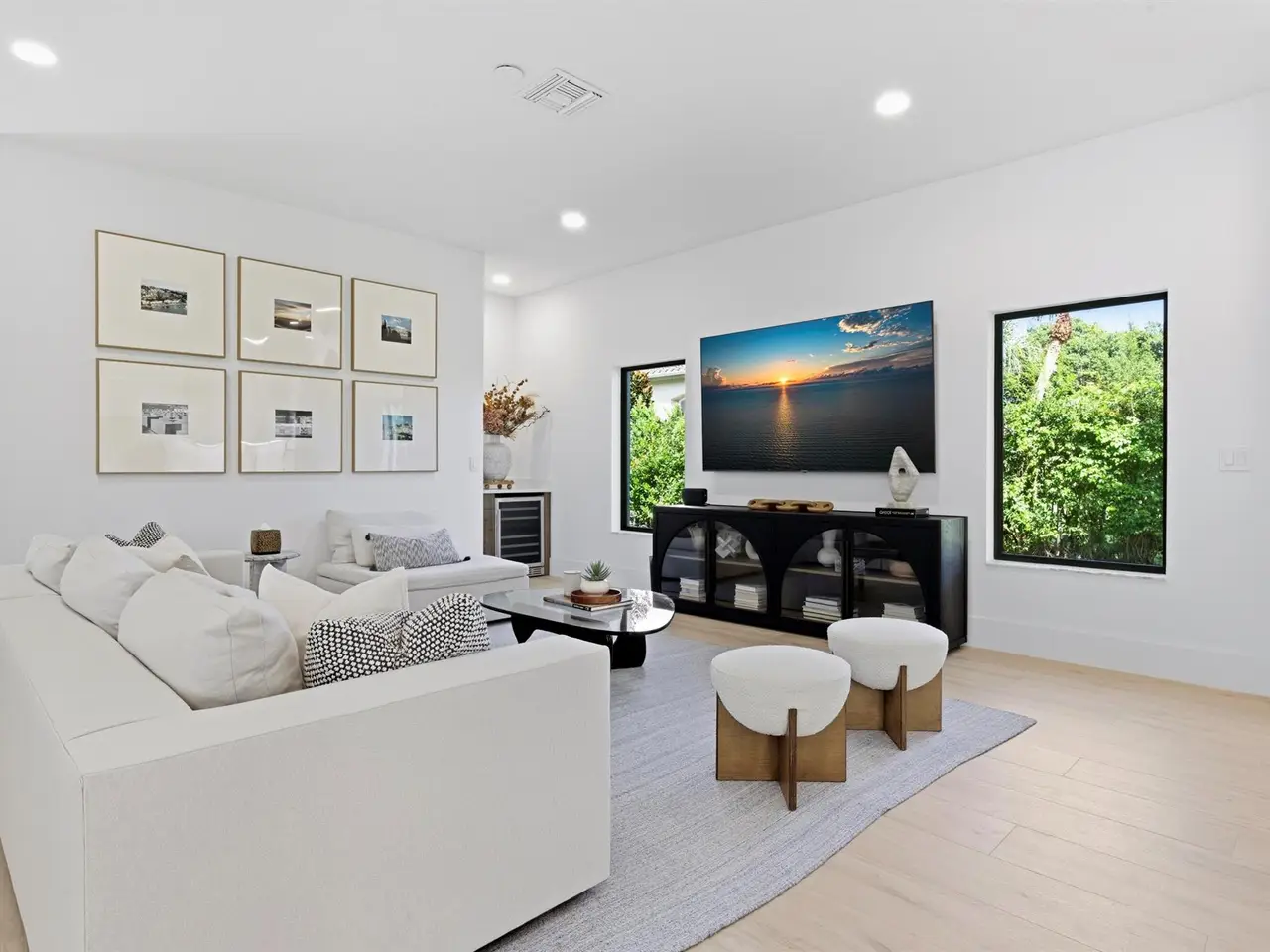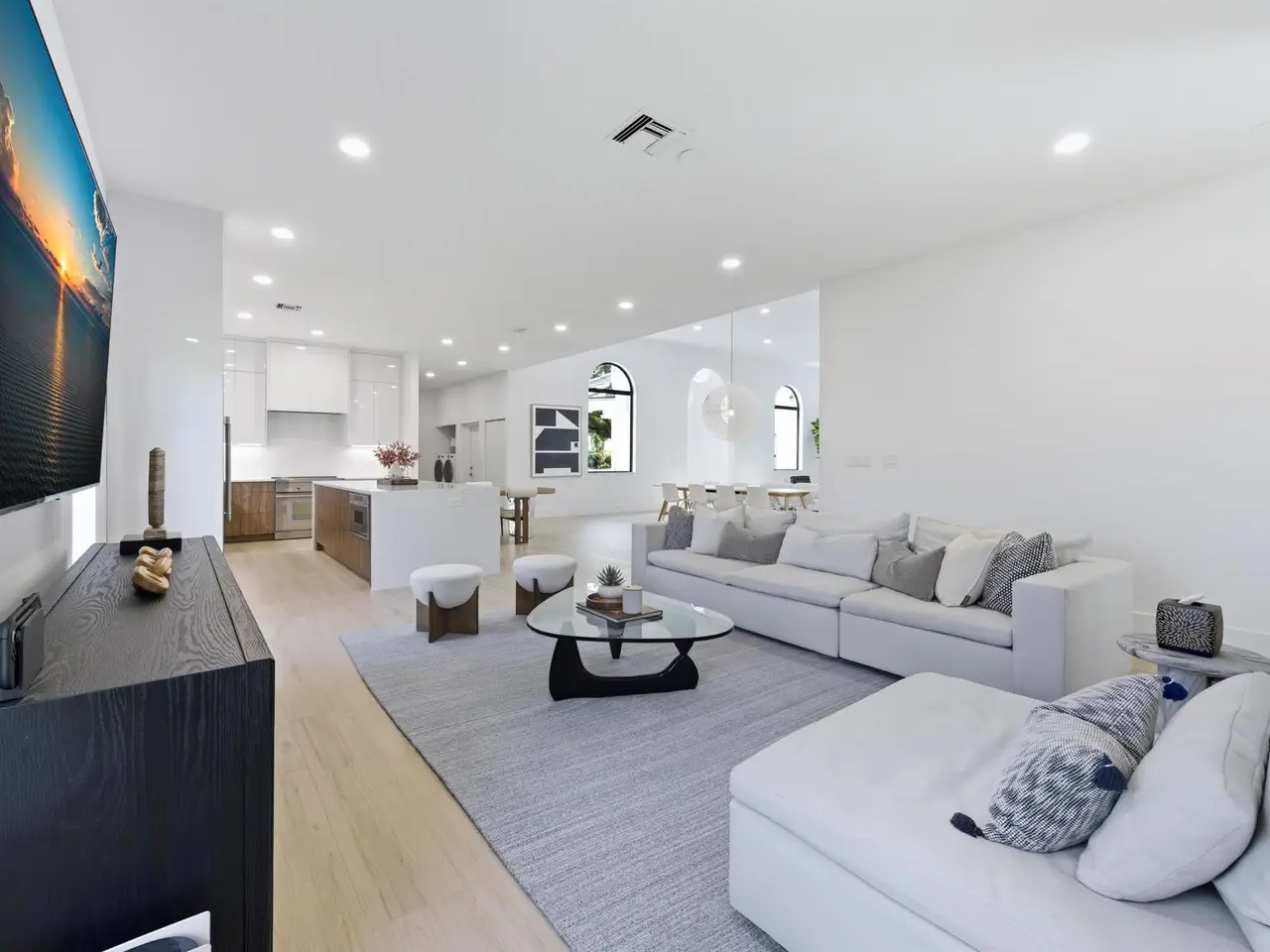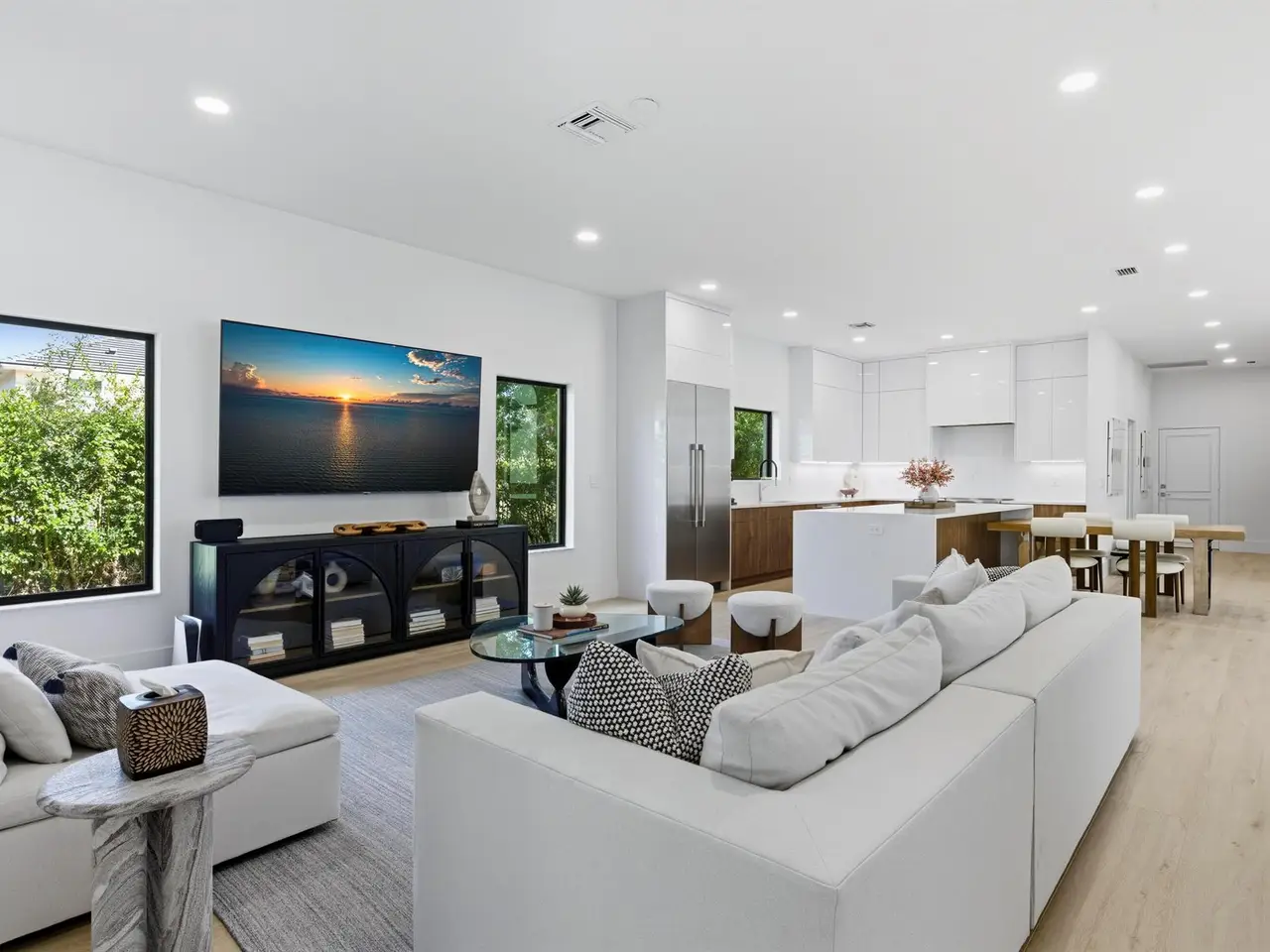 Effortless Modern Luxury in Bear Lakes. Experience the pinnacle of modern design and South Florida living in this fully reimagined one-story residence, nestled on a quiet cul-de-sac within the prestigious gated community of Bear Lakes on Seminole Circle. Meticulously renovated and curated for those who value minimalism, refined comfort, and open-concept living, this 4-bedroom plus flex room (optional 5th bedroom), 4.5-bath home offers 4,505 square feet of luxurious living space designed for both everyday ease and grand entertaining.Step inside through a 15-foot foyer illuminated by a designer chandelier, leading into an expansive great room with 13-foot ceilings and sliders that open to a serene marble courtyard--creating a seamless indoor-outdoor connection.
