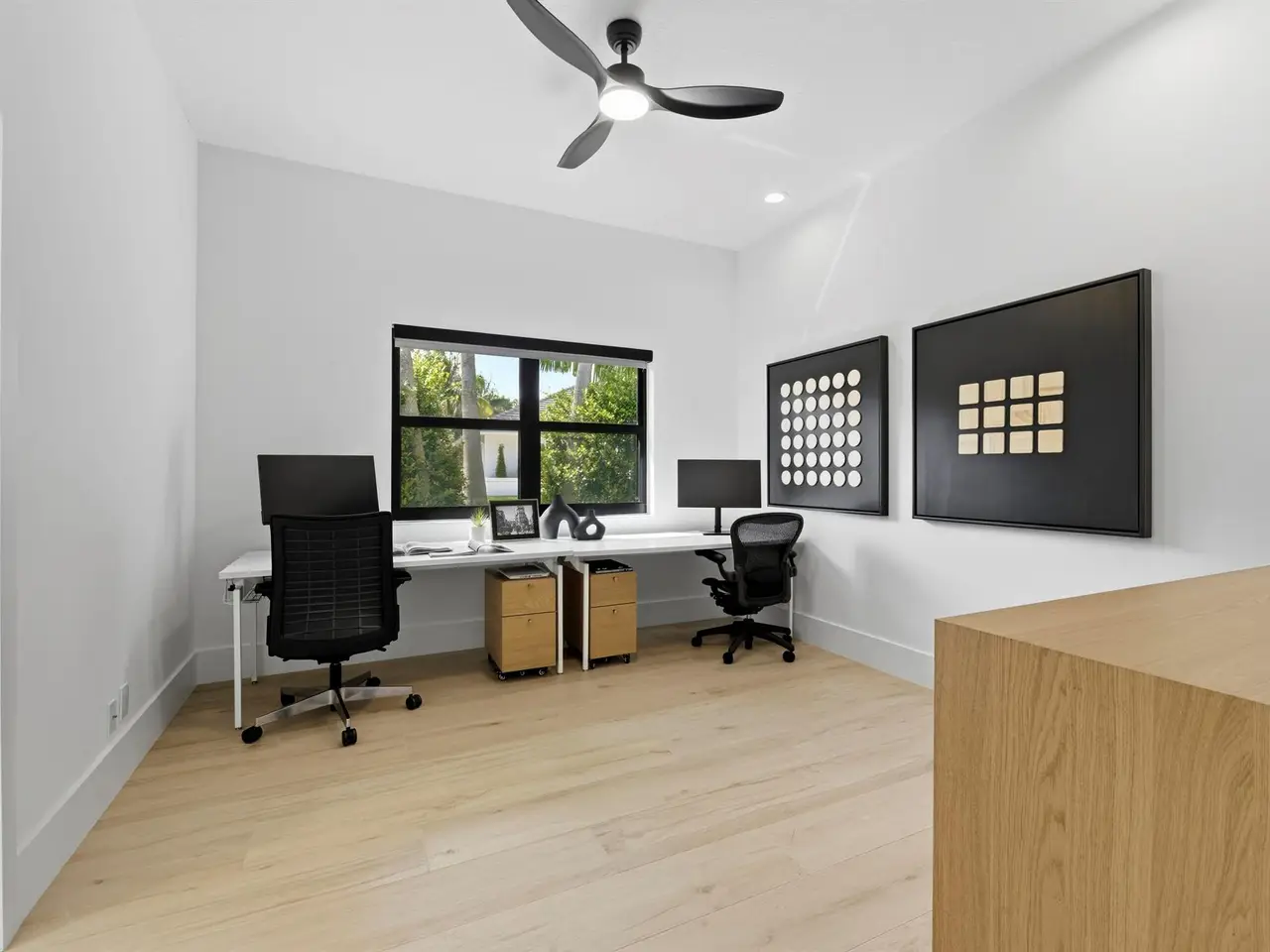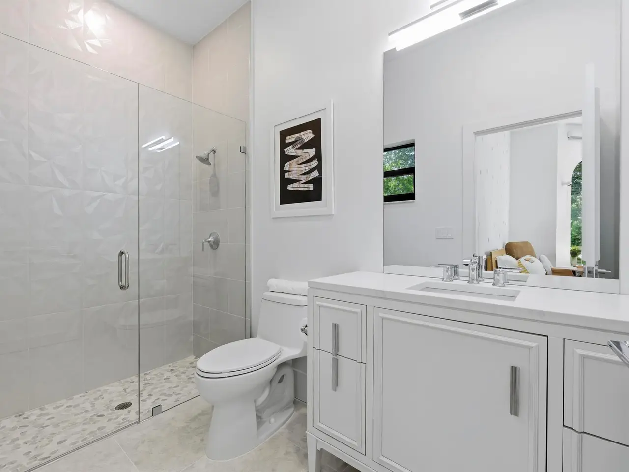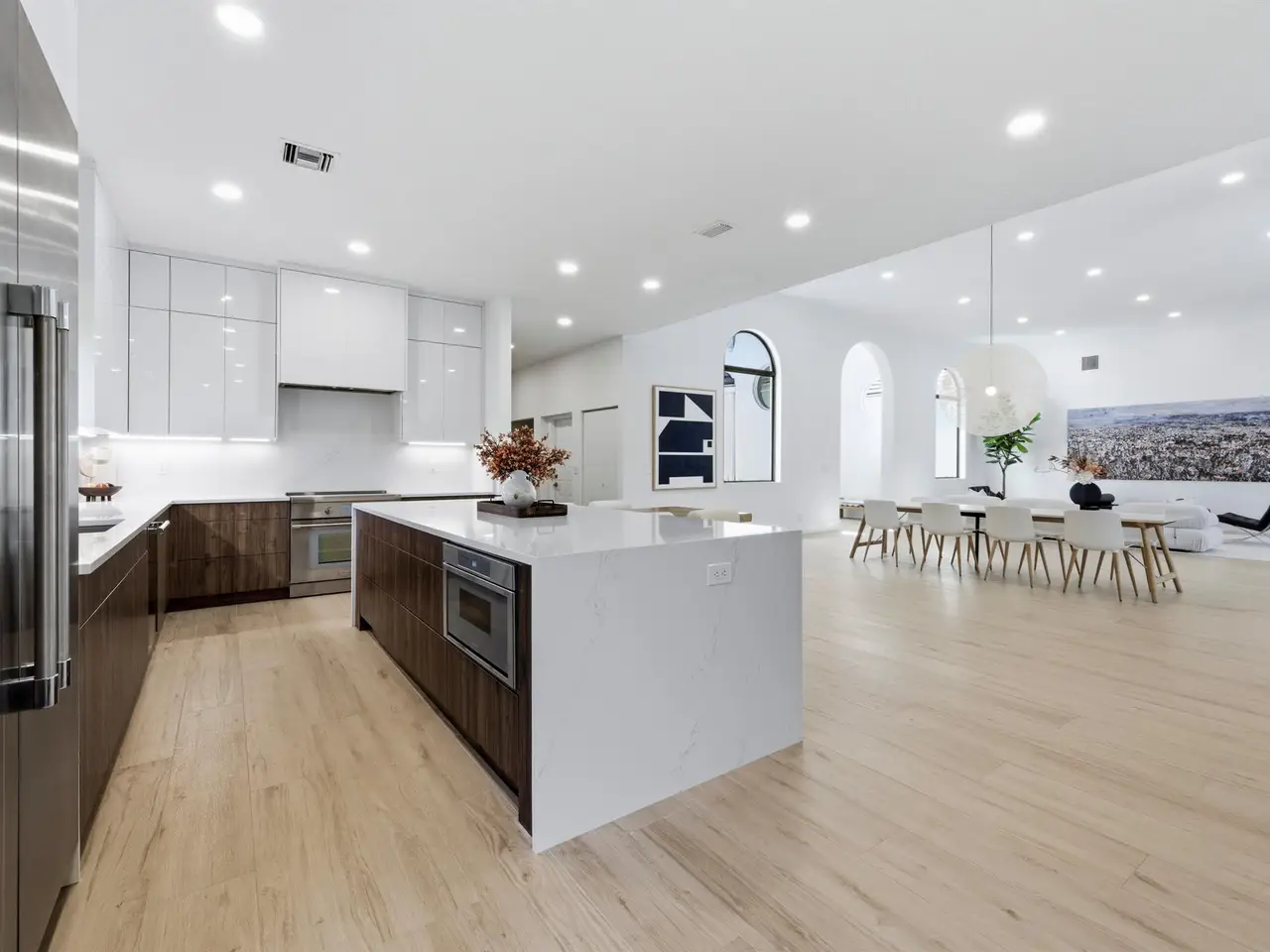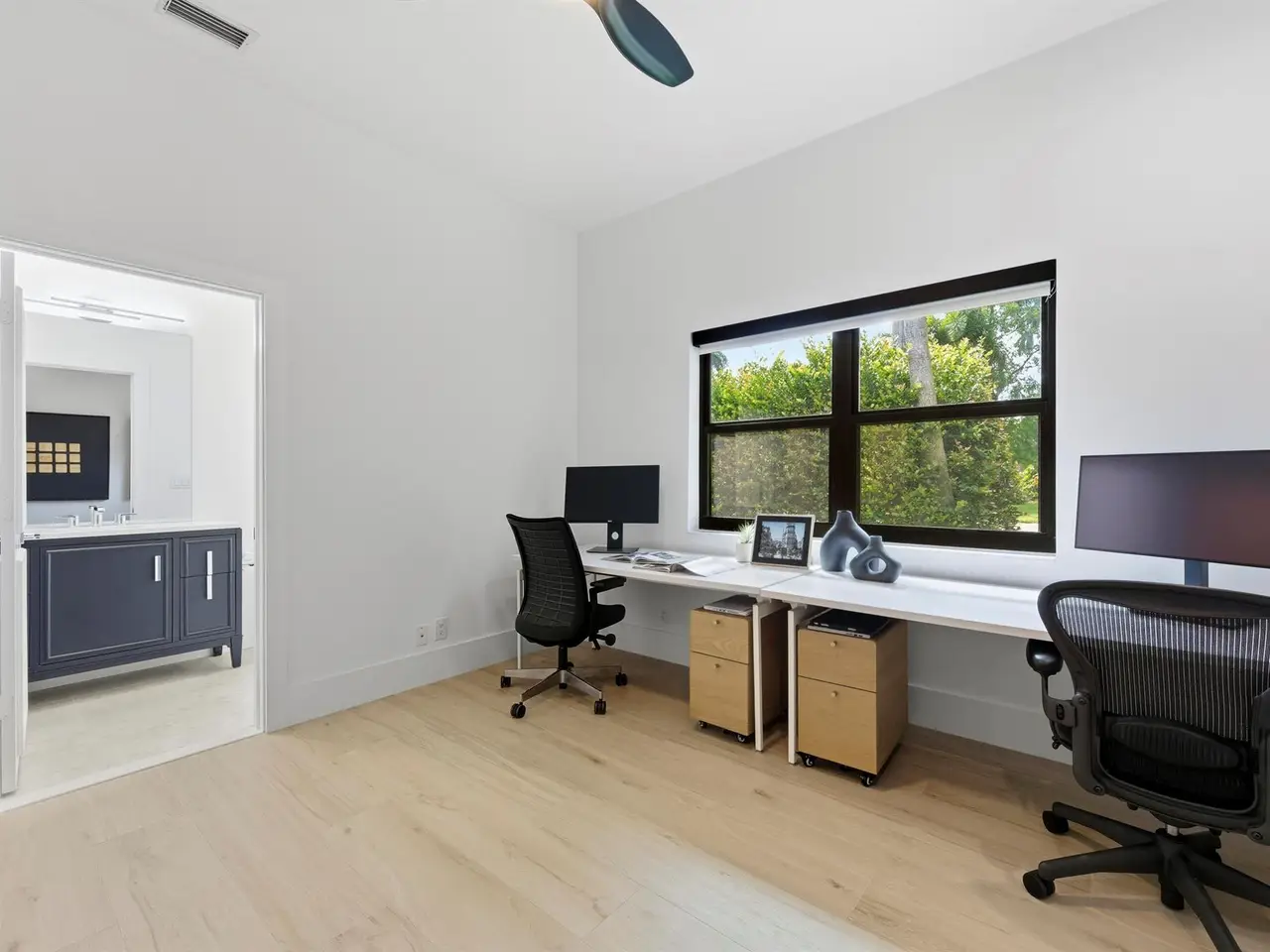 Effortless Modern Luxury in Bear Lakes. Experience the pinnacle of modern design and South Florida living in this fully reimagined one-story residence, nestled on a quiet cul-de-sac within the prestigious gated community of Bear Lakes on Seminole Circle. Meticulously renovated and curated for those who value minimalism, refined comfort, and open-concept living, this 4-bedroom plus flex room (optional 5th bedroom), 4.5-bath home offers 4,505 square feet of luxurious living space designed for both everyday ease and grand entertaining.Step inside through a 15-foot foyer illuminated by a designer chandelier, leading into an expansive great room with 13-foot ceilings and sliders that open to a serene marble courtyard--creating a seamless indoor-outdoor connection.