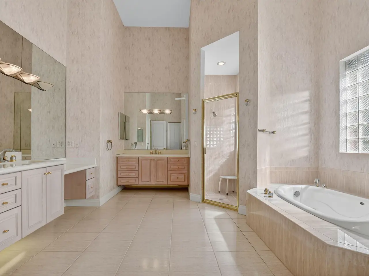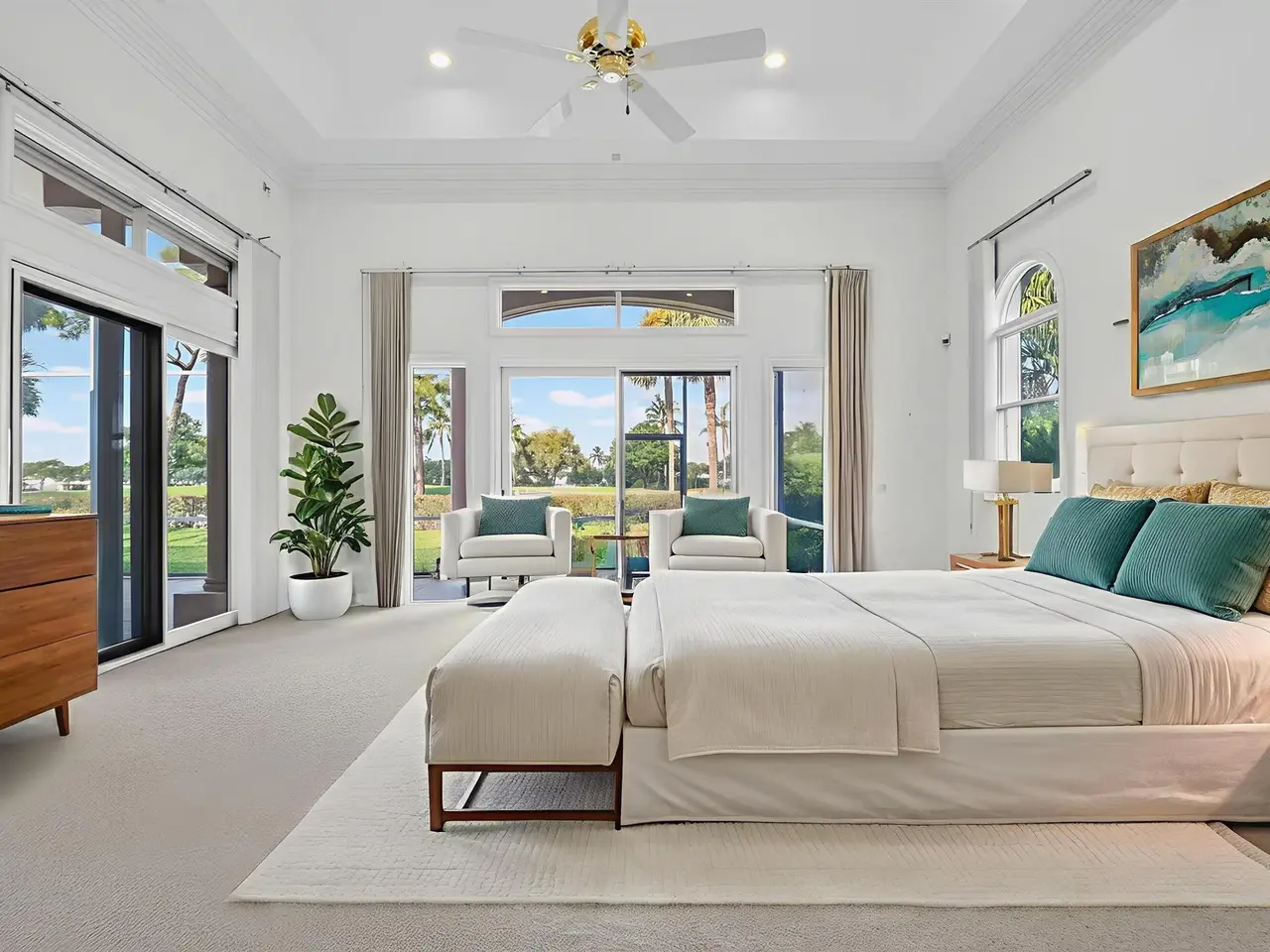 Your opportunity to own in the highly sought-after Bear Lakes Estates is here! This sprawling custom ranch, a spacious 5019 SF, 4 bedrooms plus 5th bed/den, 3 full bathrooms and 1 half bath sits overlooking the 6th hole of the renowned Lakes Course at the prestigious Bear Lakes Country Club. Walk in through the front double doors to a spacious open floor plan and expansive ceilings. The entire living room and great room wall is lined with sliding glass doors looking directly onto the golf course. Split floor plan, the primary suite has 2 huge walk-in closets and a lineup of closets in the entry to the suite. The home boasts a spacious outdoor covered and screened patio accessed from the living room, great room and primary suite. Large 3 car garage, electric and accordion storm shutter protection on windows and sliding doors and a whole house generator. The community has a 24/7 manned gate and tennis and basketball courts on premises. Use of Stamford Park and Perini Park on Saratoga are included as a property owner. Features include: pool, kiddie pool, pickleball, tennis, volleyball, bocce ball, picnic area. Palm Beach and PBI airport at your fingertips. Don't miss the opportunity to own this extraordinary estate home in one of West Palm Beaches most coveted neighborhoods.