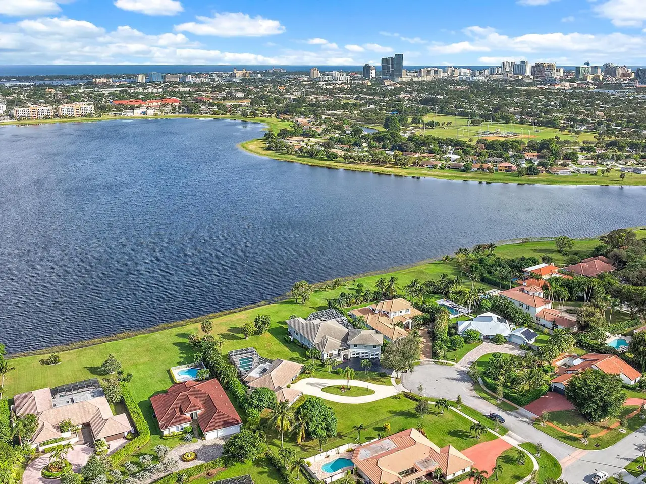 Largest Lot of Land Real Estate on a quiet cul de sac overlooking Lake Mangonia. The lake is protected as a water source, light boating and sailing is allowed. This community is very desired for its prime location close to all points of interest. West Palm Beach has become the place to live and to enjoy the Florida Palm Beach Life Style adjacent to Belgrove Marriott Autograph Hotel & Dutchman's Pipe Golf Club. The location is only minutes from beaches, PBI airport, Palm Beach Island with its top dining and shopping and WPB cultural happenings with Kravis Ctr and Norton Museum, convention Ctr ++. The home has been totally renovated and features an open concept living area with lots of windows allowing gorgeous views on the lake and the pool area. Split bedrooms with bathrooms. Come to see.