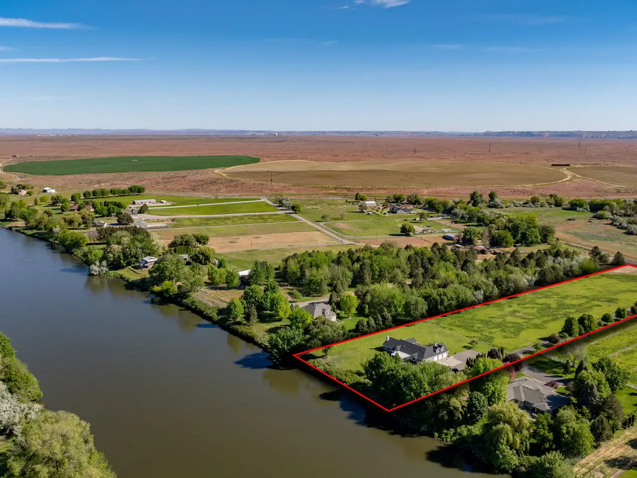 Your private riverfront retreat just minutes from the city! Discover unparalleled tranquility on this one-of-a-kind 5.3-acre riverfront treasure. Perfectly positioned for privacy and peace, the property offers sweeping panoramic views—sunrises over open pasture to the east and vibrant sunsets along the river to the west. A tree-lined private drive welcomes you home, where beautifully landscaped, irrigated grounds and mature trees create a serene, park-like setting. Inside, natural light fills the spacious home, where Swedish-finished oak hardwood floors, vaulted ceilings, and views from each room elevate everyday living. The open-concept kitchen flows seamlessly into casual and formal living areas, making it ideal for both quiet mornings and vibrant entertaining. A large picture window frames the river and western sky, bringing the outdoors in. The thoughtful split-bedroom layout ensures comfort and privacy, with a primary suite that opens to a secluded western-facing deck—perfect for unwinding while taking in the beauty and changing light. An oversized bonus loft/flex space above the garage offers views of the eastern pasture, while a private east-facing office with double doors is ideal for working remotely or creative pursuits. Designed for year-round outdoor enjoyment, the home features expansive east- and west-facing porches, a stamped concrete patio with custom pergola, and lush gardens with raspberries, grapes, and ornamental landscaping. The smart 12-zone irrigation system keeps everything vibrant with ease. Every season offers something special to look forward to making it a compelling place to gather. Recent upgrades include a new roof (2025), all-new kitchen appliances, energy-efficient geothermal HVAC, custom solar screens, and a side-load three-car garage with extra guest parking. Bordering a 2,000-acre protected ranch and bird sanctuary, this rare property offers unmatched seclusion just five miles from the amenities of West Richland and neighboring Richland - including the future Costco and Red Mountain wine country. With full in-use and operating water rights and direct river access, this is a truly special opportunity to enjoy the best of both worlds: luxurious country living with city conveniences close by.