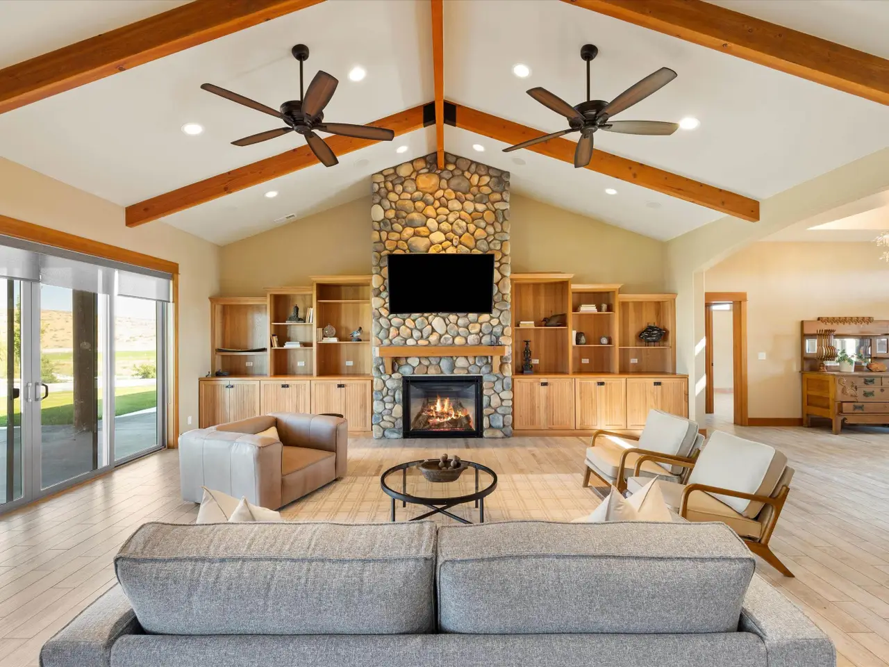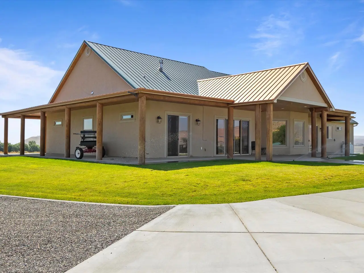 MLS# 286524 This beautiful 2,860 sq ft home sits on 9.22 acres, fully enclosed with classic white vinyl fencing, and offers breathtaking territorial and mountain views. Built in 2016, the home features an open-concept layout with hardwood floors, a cozy fireplace, and large windows that flood the space with natural light. The gourmet kitchen boasts granite countertops, stainless steel appliances, and a spacious island perfect for entertaining. The primary suite includes a luxurious en-suite bath with a soaking tub and walk-in shower. Step outside to enjoy a covered patio, ideal for relaxing or watching the sunset over your acreage. Ample space for horses, livestock, gardens, or additional outbuildings, with room to make it your own. Located in the desirable West Richland area, this property combines country living with easy access to local amenities.