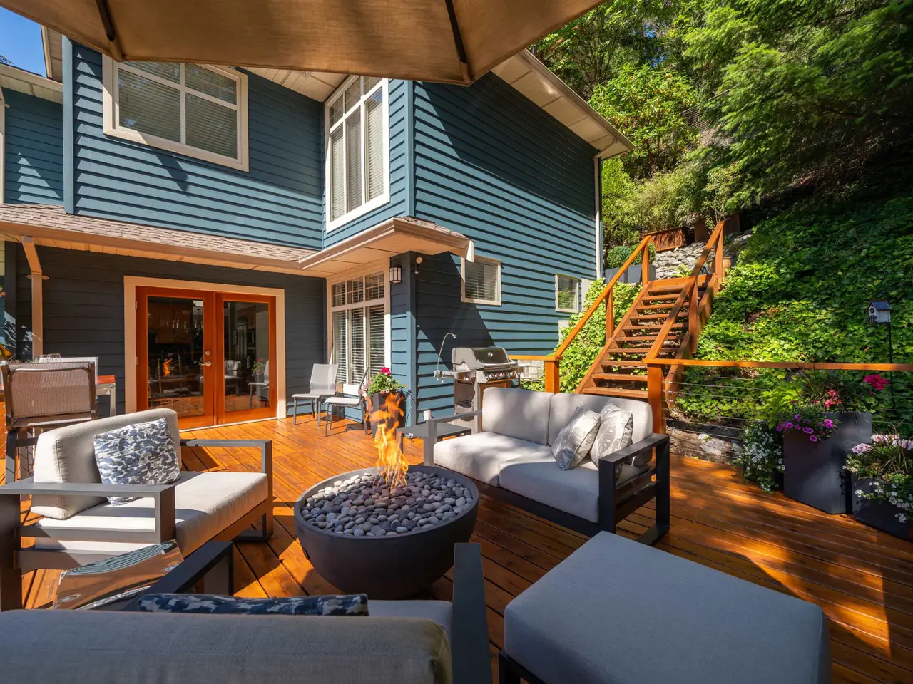 - Sunny 360 sq. ft. deck with fire pit