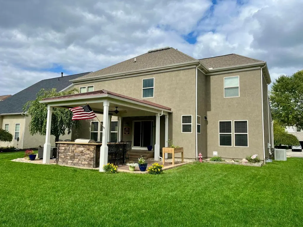 Luxury Living in Harvest Wind - Westerville Schools Built by renowned custom builder Bob Webb, this exquisite 4-bedroom, 4.5-bath home in the Harvest Wind subdivision offers over 4,000 sq ft of finished living space. Combining timeless craftsmanship with modern upgrades, this home delivers the perfect blend of elegance, comfort, and community. Each level features 9-foot ceilings throughout, a 10-foot ceiling in the private office, and a grand 4-foot wide staircase. The remodeled chef's kitchen, equipped with high-end finishes, opens to spacious living and dining areas, perfect for hosting gatherings. The primary suite is a private retreat with a large soaking tub, two walk-in closets, and a spa-inspired bath. Upstairs, a Jack-and-Jill suite connects two bedrooms, while a second suite offers ideal guest accommodations. The finished lower level is designed for entertaining with a full bar, full bath, workshop, home gym, and large storage area. Outside, enjoy a spacious patio with covered dining area, built-in grill, in-ground sprinkler system, and invisible fence. An extended 3-car garage and mudroom add daily convenience, while the 3-zoned HVAC system (gas heat), and recent exterior painting ensure comfort and peace of mind. Living in Harvest Wind means more than just a beautiful home - it's a lifestyle. Residents enjoy pickleball courts, walking trails, two playgrounds, a basketball court, and a scenic park. The neighborhood's tree-lined streets, spacious yards, and friendly atmosphere create a welcoming community you'll love coming home to, all within minutes of Westerville schools.