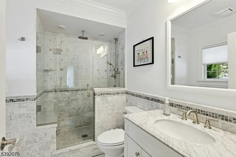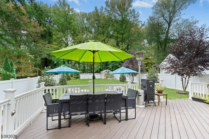 Located on one of Westfield's most desirable streets, this 5 Bedroom, 4.5 Bath Colonial offers nearly 6,000 sq. ft. of luxury living space on a .25acre lot that backs to the bird preserve, just blocks to schools, downtown, and the train station. Exceptional craftsmanship throughout with elegant millwork, hardwood floors, designer lighting, and thoughtful storage. The grand foyer opens to a sunlit living room, formal dining room, and a spacious family room with gas fireplace. The chef's kitchen boasts high-end appliances, a large island, custom white cabinetry, walk-in pantry, and breakfast area. A first-floor in-law suite includes a marble bath, walk-in closet, and laundry. Upstairs, the primary suite is a private retreat with sitting room, double-sided fireplace, spa-like bath, balcony with French doors, and walk-in closet. Three additional bedrooms, a full bath, and laundry complete this level. The finished basement features a rec room, full bath, gym, office, and storage. Outside, enjoy a Trex deck, paver patio with fireplace, and expansive vinyl fenced yard perfect for entertaining. Additional highlights include surround sound systems, central vacuum, sprinkler system, alarm system, Hardie siding, and multi-zone HVAC. Walk-up attic can easily be turned into livable space. A truly stunning home in the perfect Westfield location!
