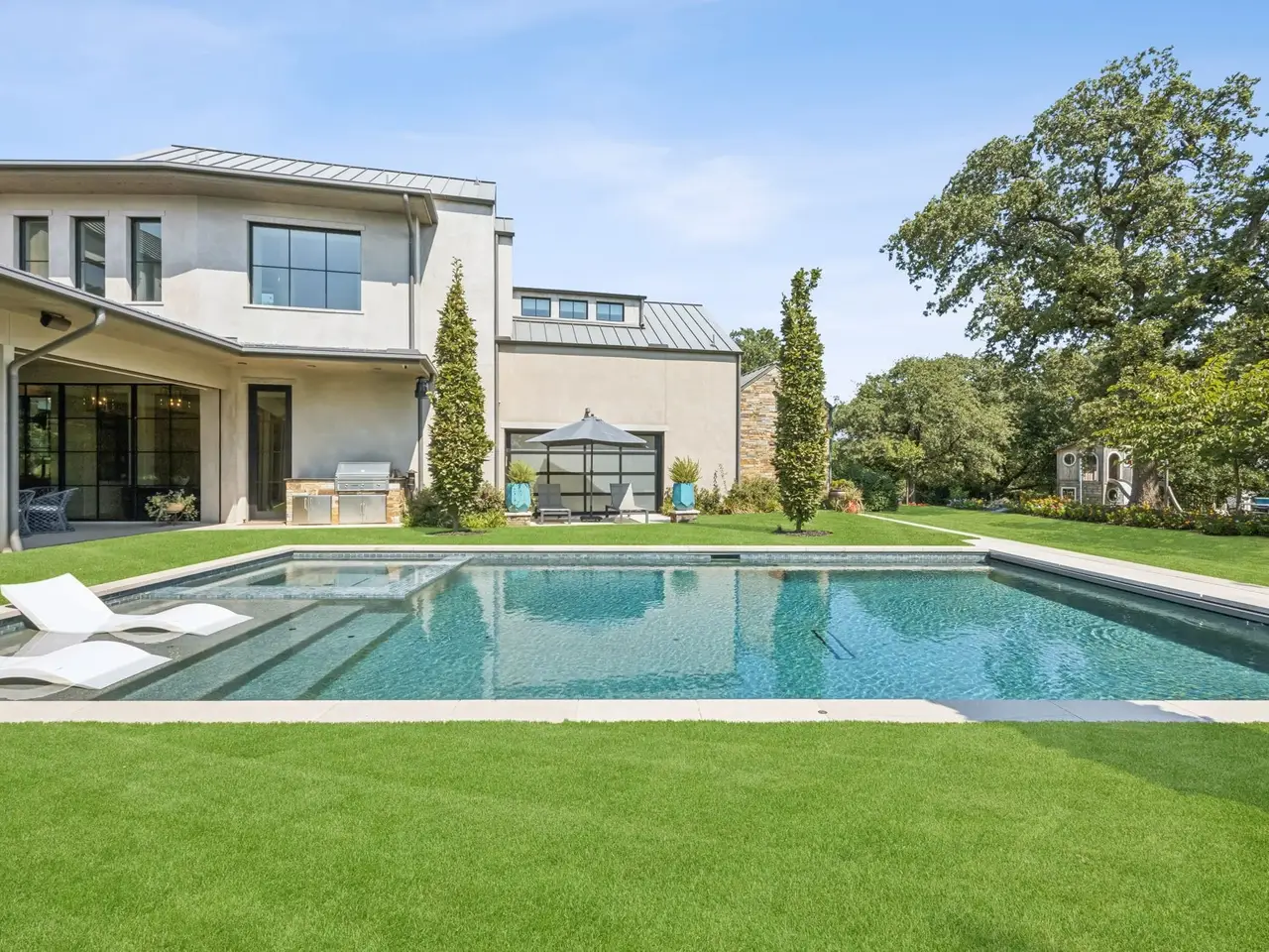 Welcome Home to this stunning contemporary masterpiece in Westlake's prestigious Quail Hollow. Built in 2022 by Cary Hy Custom Homes & designed by SHM Architects & G. Bradley Alford Designs, this modern, luxurious home boasts open-concept living with an abundance of glass-metal windows showcasing the beautiful front grounds and gorgeous backyard. Highest end designer finishes are throughout. Enter to a gorgeous welcoming Foyer to then step into the Great room with tons of natural light and walls of glass. Chefs Dream Kitchen with Dacor appliances, 2 dishwashers, warm & steam oven + built-in seating banquette. The Owners Retreat boasts beautiful backyard views, a private Den, plus a resort style Spa Bath with heated floors, steam shower, coffee bar, luxury tile & wallpaper, plus 2 walk-in closets. A private guest suite with a separate entrance is also down. All 3 upstairs Bedrooms boasts en-suite Bathrooms and walk-in Closets. The Game-Media room has a dedicated sound system + blackout shades. Home features include Lutron Control 4 system, elevator, safe room & generator. Expansive outdoor space includes covered patio with electrics shades, gas grill, landscaped & turf yard, mature trees, ambient lighting, fire pit & heated pool with stunning water features and retractable pool cover.