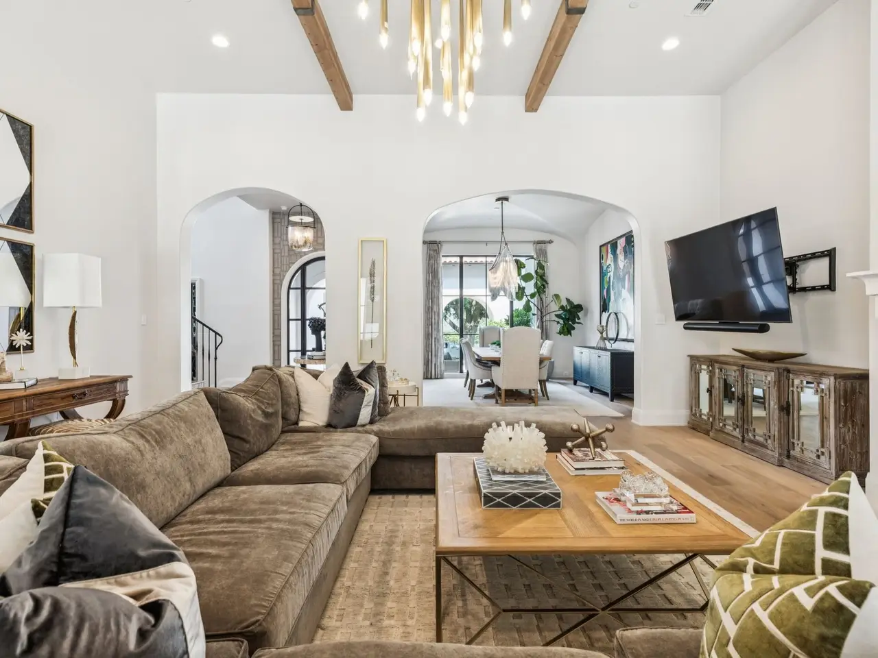 Welcome home to this stunning Santa Barbara inspired home in gated and guarded Vaquero. Exceptional architectural design highlights a clean transitional style, a soft color palate, exquisite character details, exposed beams and sophisticated, highest-end finishes throughout. Enter the impressive Foyer to find a welcoming Dining Room and spacious Family Room with roaring fireplace, high ceiling and walls of windows for abundant natural light. The generous Chef's Kitchen boasts professional stainless appliances, large island, spacious Breakfast room overlooking the pool view and a quaint Keeping area with fireplace to unwind at the end of the day. The Downstairs Media room is ready for everyone to enjoy the game! Retreat to the relaxing Primary suite with soaring beamed ceiling, perfect backyard view, spa-like Master bath with two vanities and soaking tub, plus 2 separate large closets. Guest Suite down with en-suite bath and walk-in closet is currently being use as a Study. Upstairs, find three spacious bedroom suites with private baths and walk-in closets, plus a generous Game room and quiet Bonus room. The backyard is a dream with an expansive outdoor area with outdoor kitchen, dining and living spaces - just perfect for entertaining. Lush landscaping delivers privacy and ambiance. The custom Claffey pool is inviting for Summer fun with spa, water features and tanning ledge. Turfed backyard with fire pit delivers easy living. 3 car garage PLUS additional golf cart garage. 4th fireplace in front courtyard. *SELLER HAS A SOCIAL MEMBERSHIP TO VAQUERO GOLF CLUB THAT CAN BE IMMEDIATELY EARMARKED FOR BUYERS ONCE THEY ARE APPROVED.*