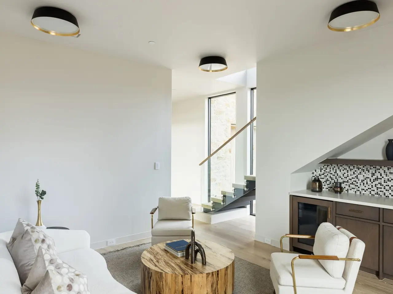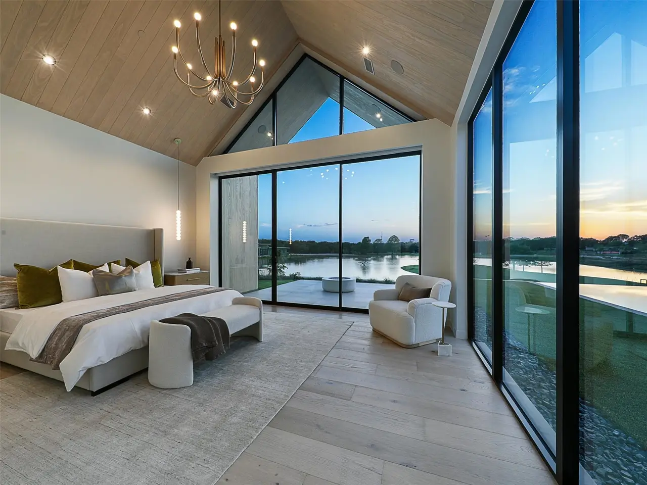 Floor-to-ceiling walls of glass maximizing lakefront views