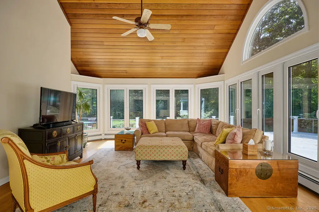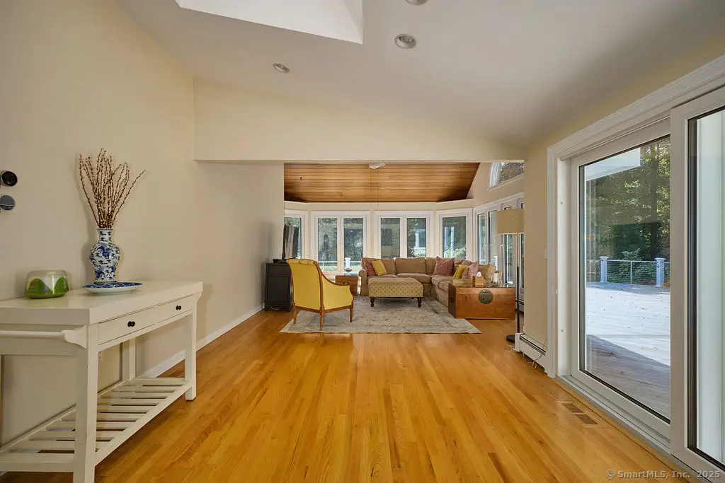 Weston estate on prestigious Norfield Rd. Walk to Weston center, library & schools, while still enjoying TOTAL privacy. 2 acres of lush gardens & specimen plantings with irrigation, landscape lighting & deer fence surround this 6300 -+ sq ft, well maintained, charming, vintage colonial rambler with 6 bedrooms, 4 full & 2 half baths. Sun drenched with high ceilings and many skylights. Recent improvements include: New Roof, New high quality VEKA European Windows & Doors, New enormous multi-level Mahogany Decks with Steel Cable Railing, Fully Painted outside & much of inside, New whole house Reverse Osmosis Water Treatment. First floor: Dramatic two story Foyer. Spacious Living Room with fireplace, built-ins. Den with fireplace. Formal Dining Room with sliders to deck. Huge open plan kitchen with large island and dining area which flows into spacious family room with tongue and groove wood cathedral ceilings and walls of windows and sliders overlooking gardens. Main level primary suite with 2 walk-in closets and en-suite bath, slider to deck & hot tub. Additional full in-law/au-pair suite with bedroom, full bath, living/dining area & kitchen, patio, separate entrance. Oversized 3 car attached garage has a large bonus room/ game room above with wet bar & half bath. 2nd Floor: 1 en-suite bedroom plus 3 additional bedrooms & another full bathroom. Pre-inspected & repaired for your peace of mind.